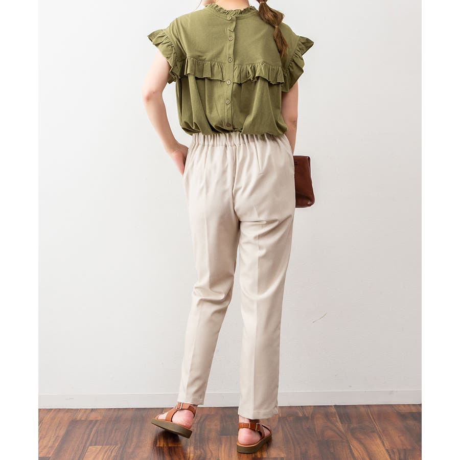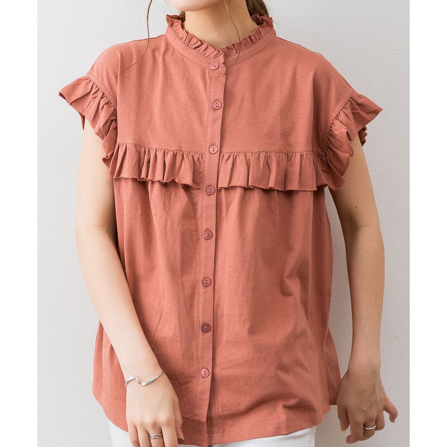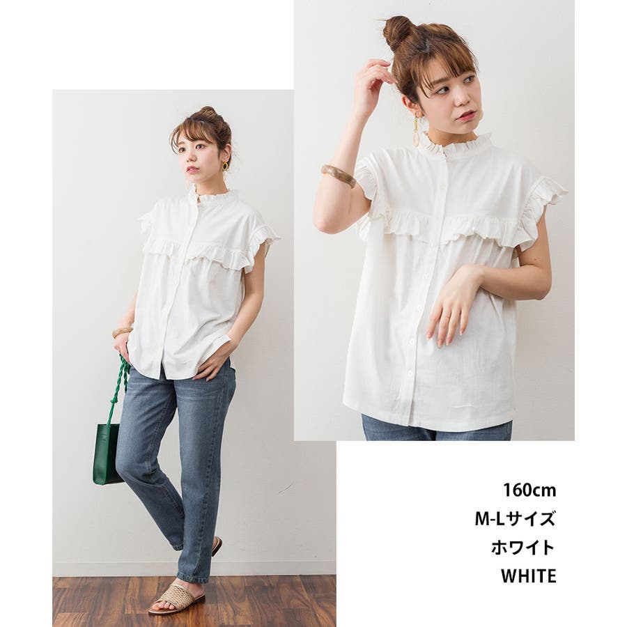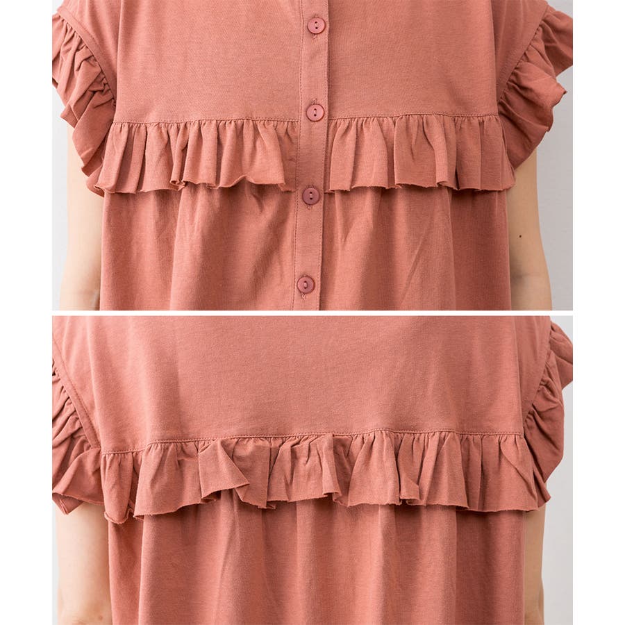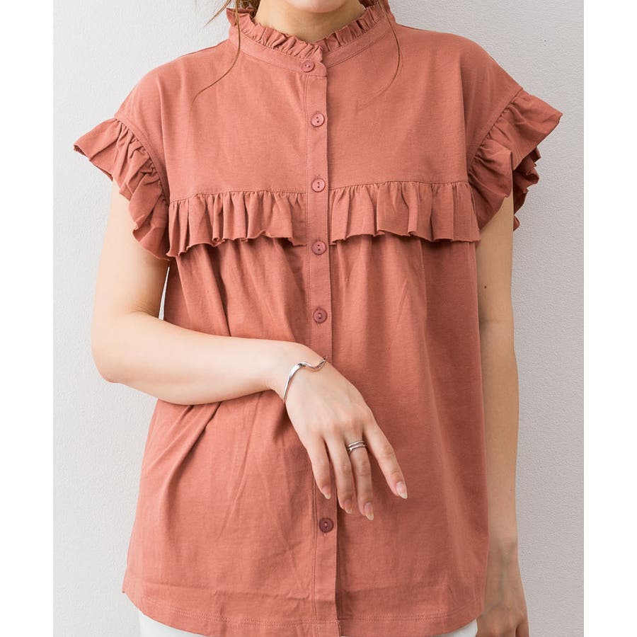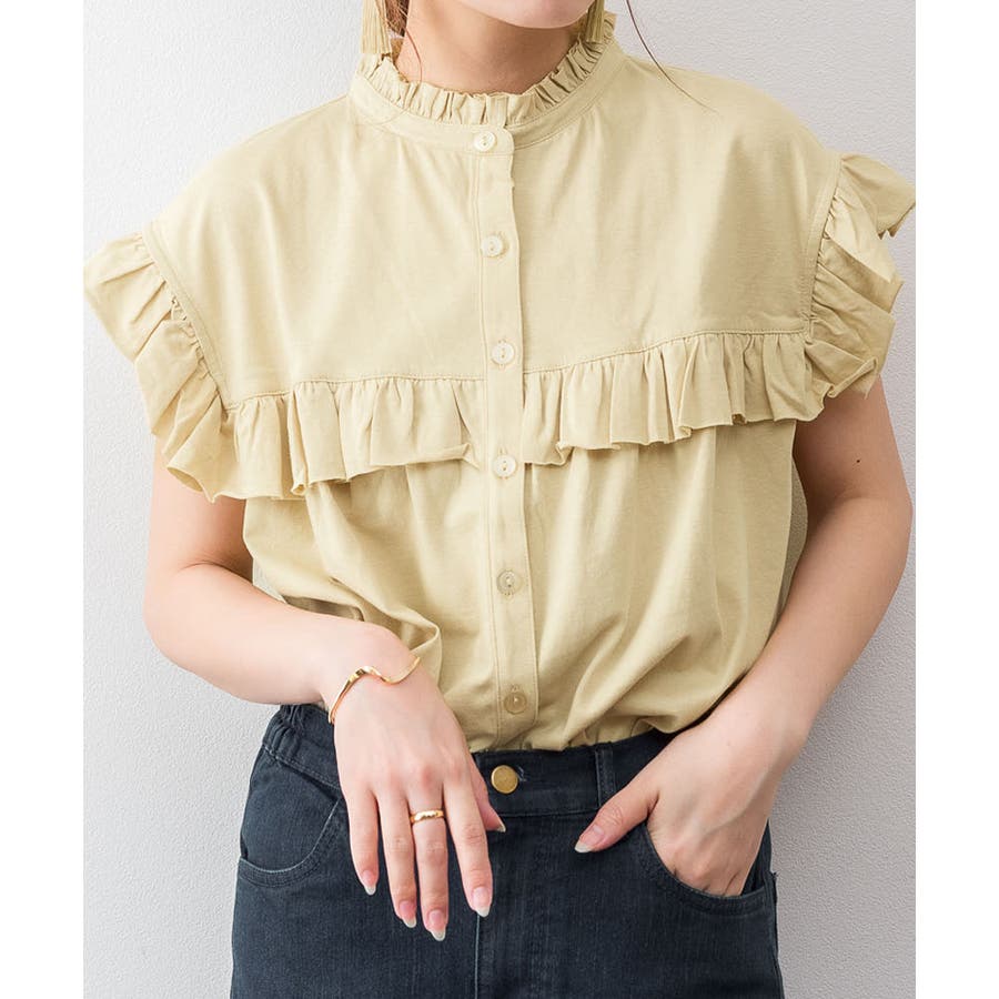 前後2WAY仕様のフリルブラウス風のカットソー。