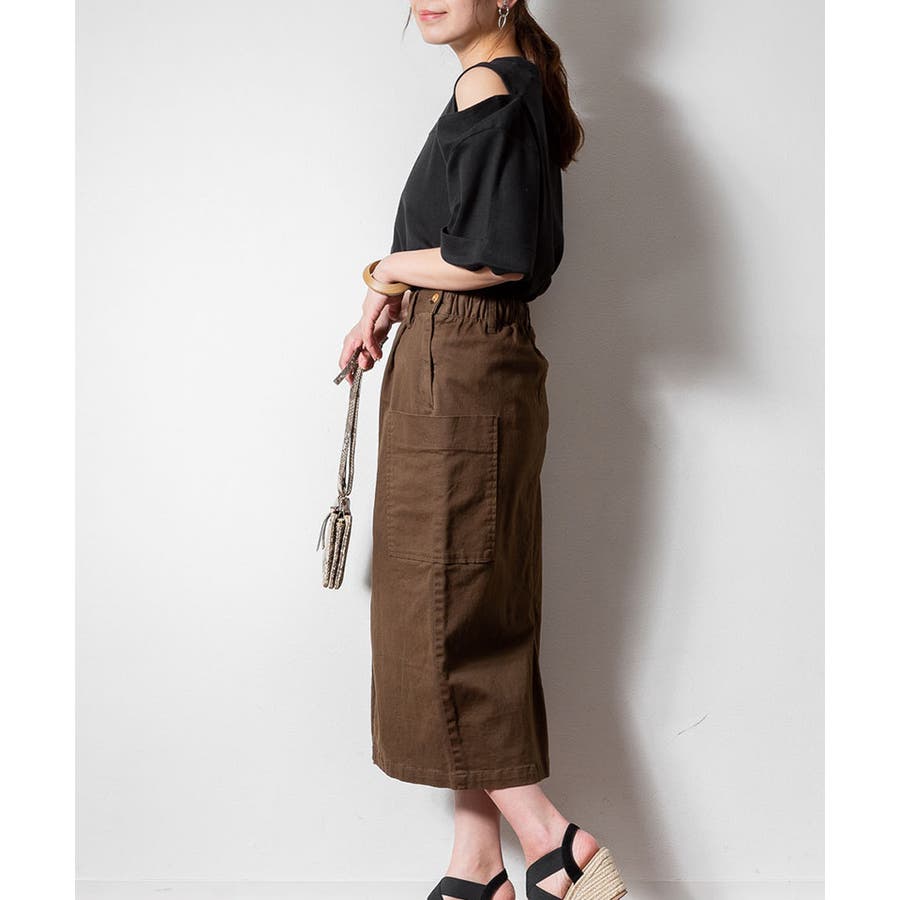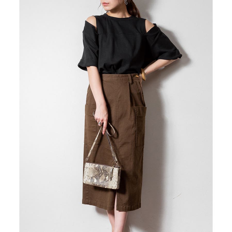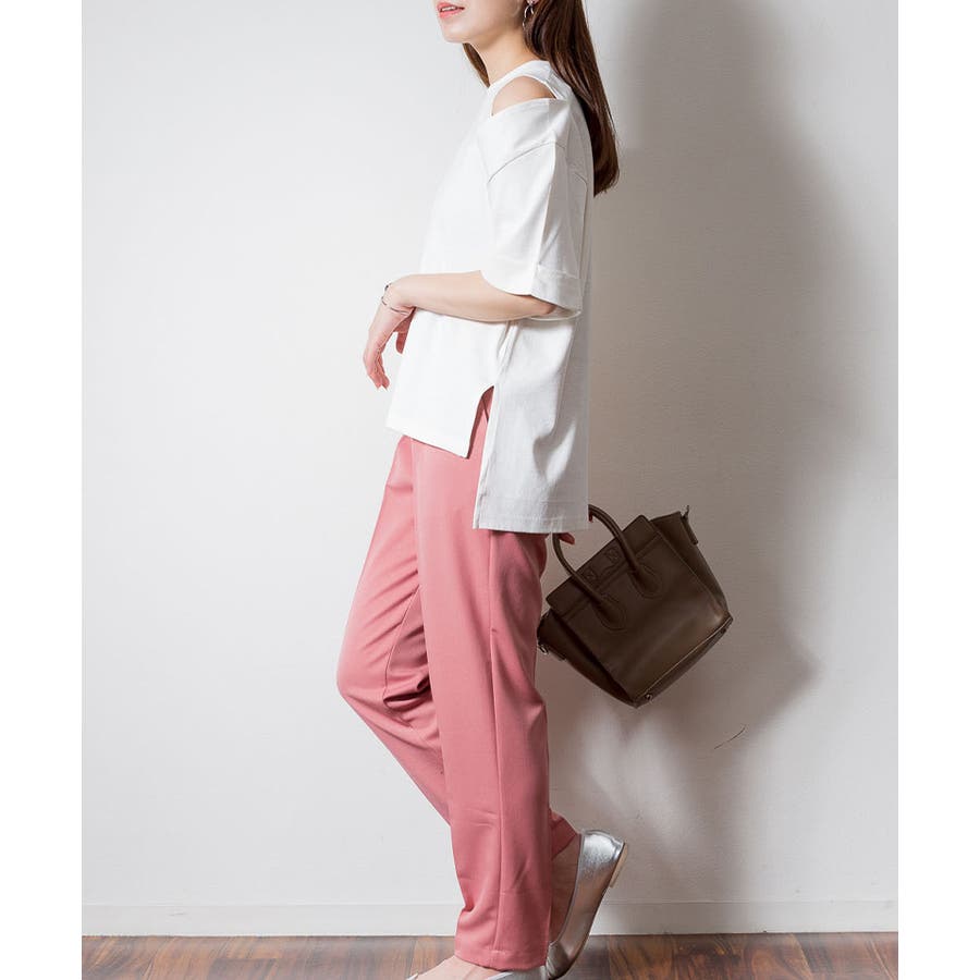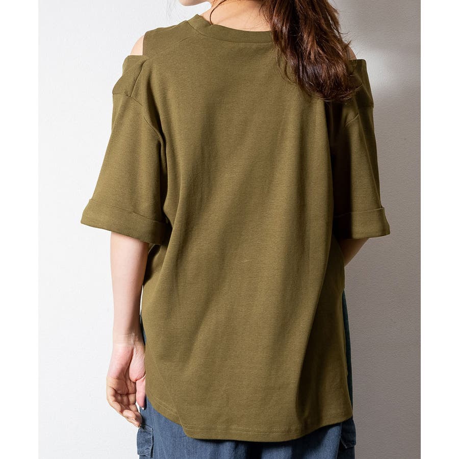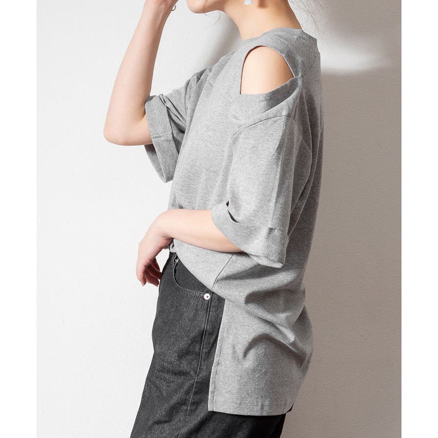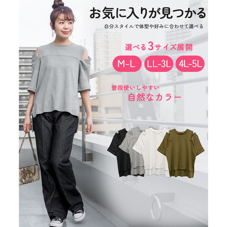 肩の部分が開いており、オシャレで大人っぽい印象を与えます。半袖なので、春から夏にかけて活躍するアイテムです。