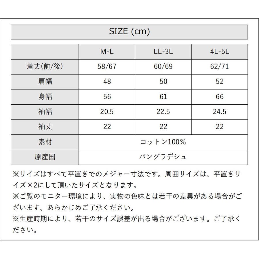 [LL-3Lサイズ]着丈(前/後)60/69cm、肩幅50cm、身幅61cm、袖幅22.5cm、袖丈22cm