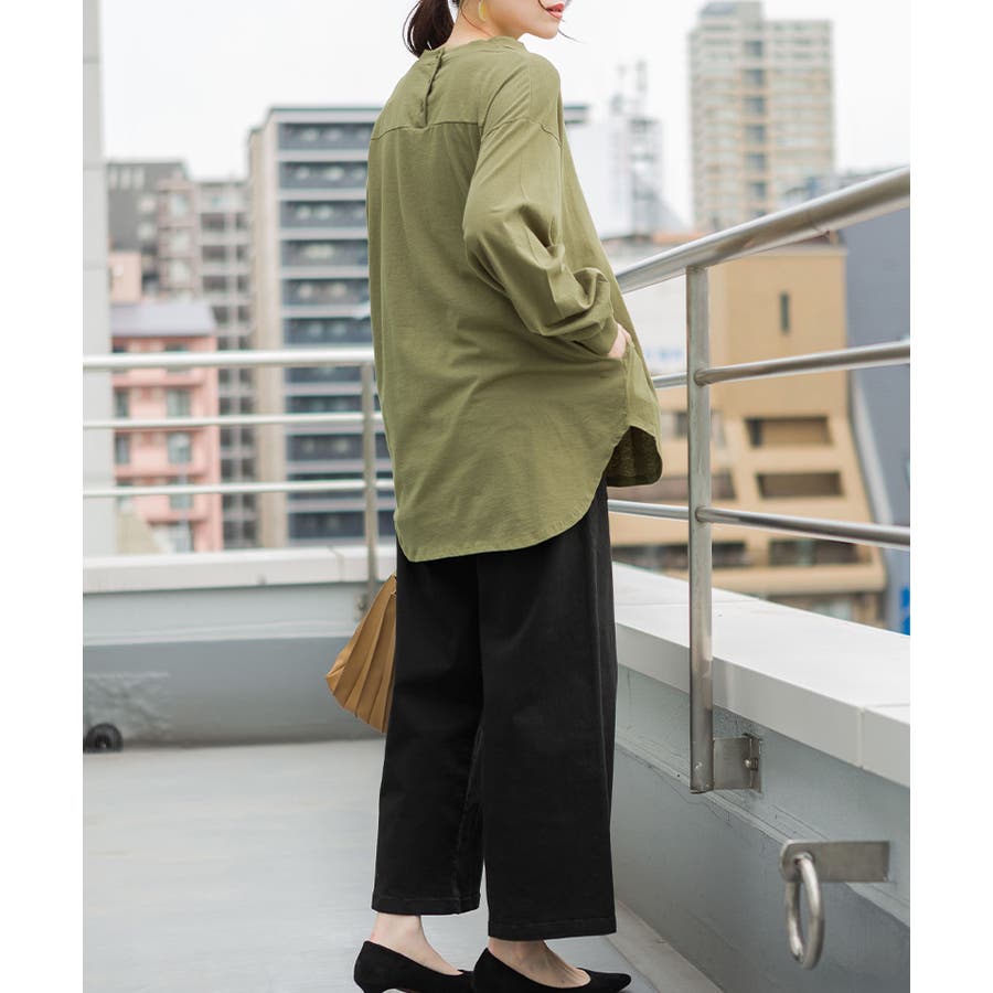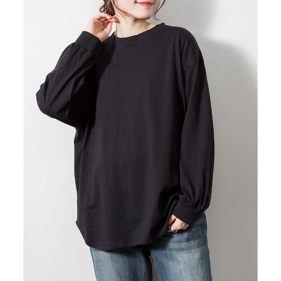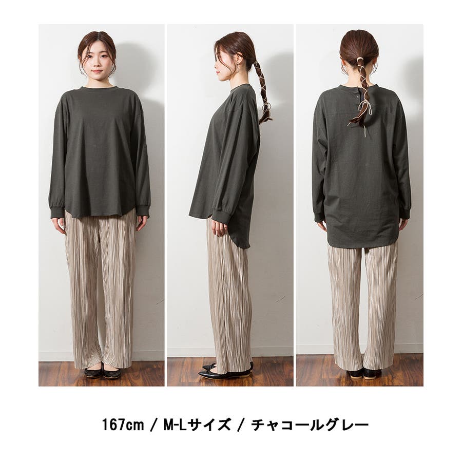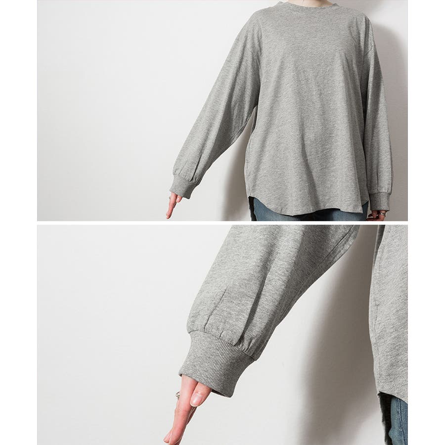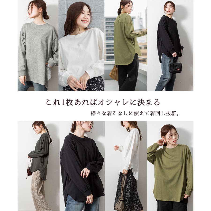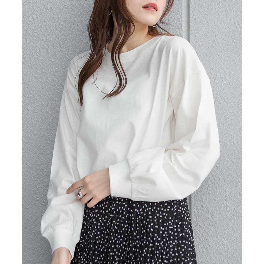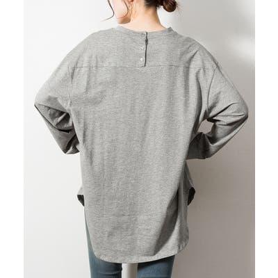 デザインはシンプルでありながら、後ろにあるボタンがアクセントになっており、後ろ姿がおしゃれに見えるようになっています。また、ロングスリーブでありながら、袖口がリブ仕様になっているため、腕周りをきゅっと引き締めてくれます。