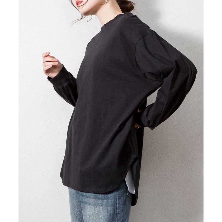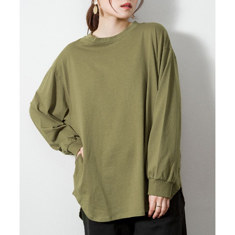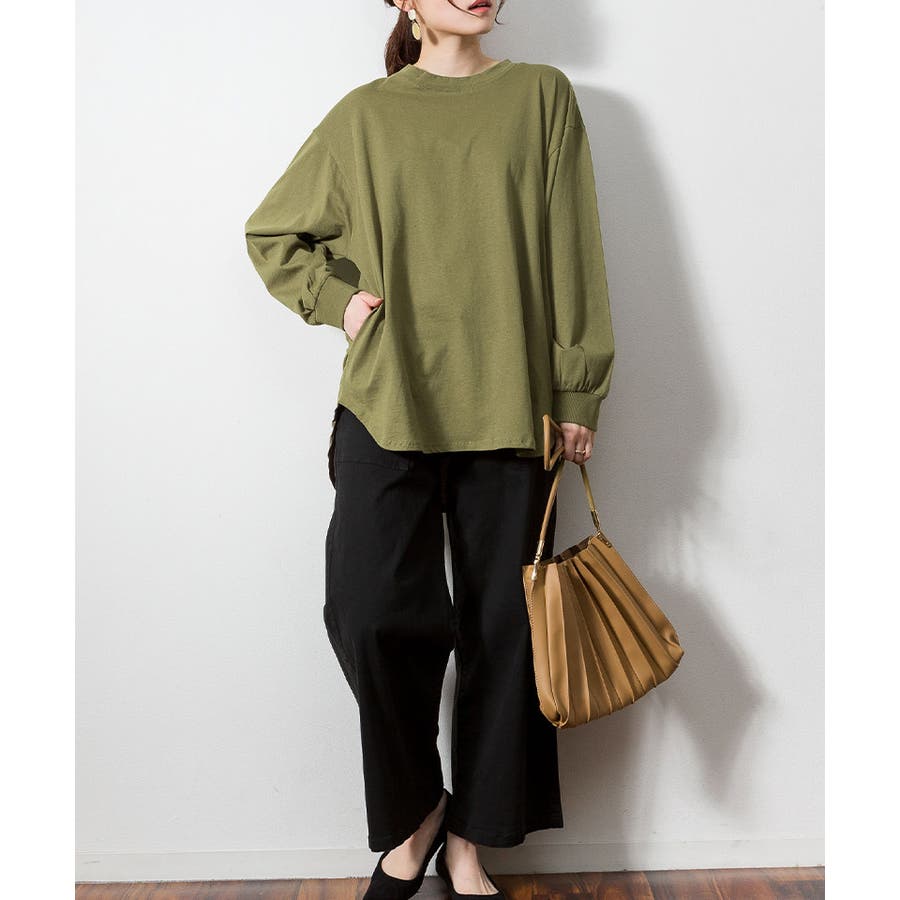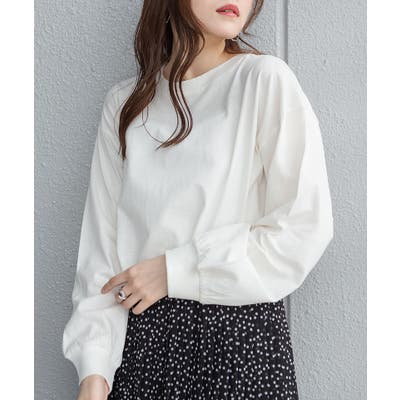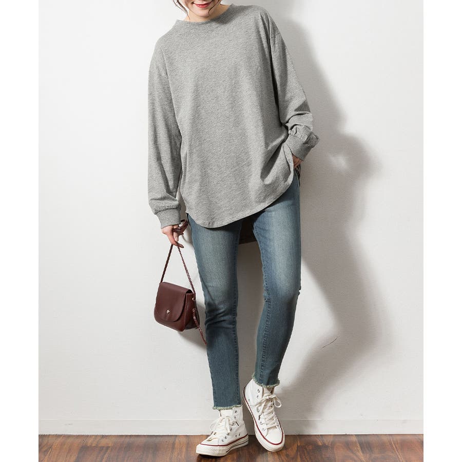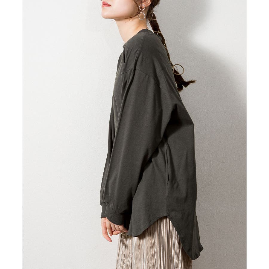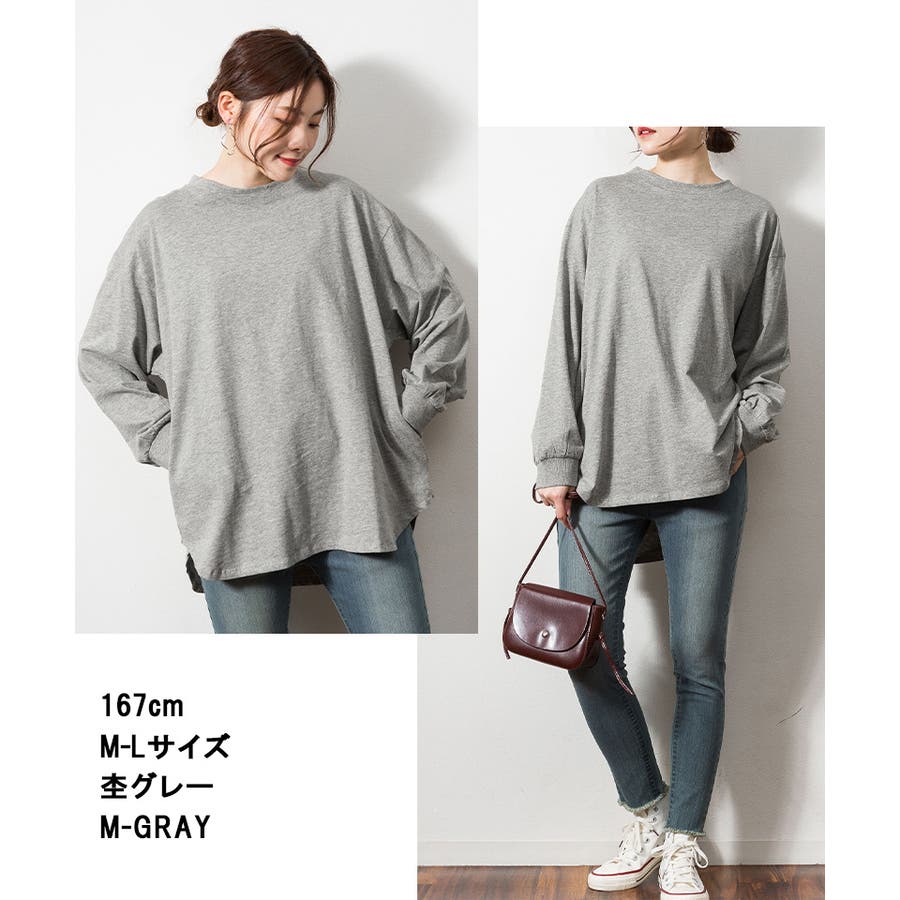 デザインはシンプルでありながら、後ろにあるボタンがアクセントになっており、後ろ姿がおしゃれに見えるようになっています。また、ロングスリーブでありながら、袖口がリブ仕様になっているため、腕周りをきゅっと引き締めてくれます。