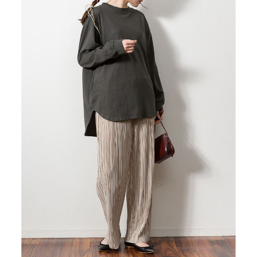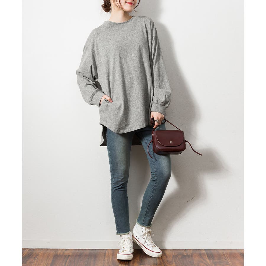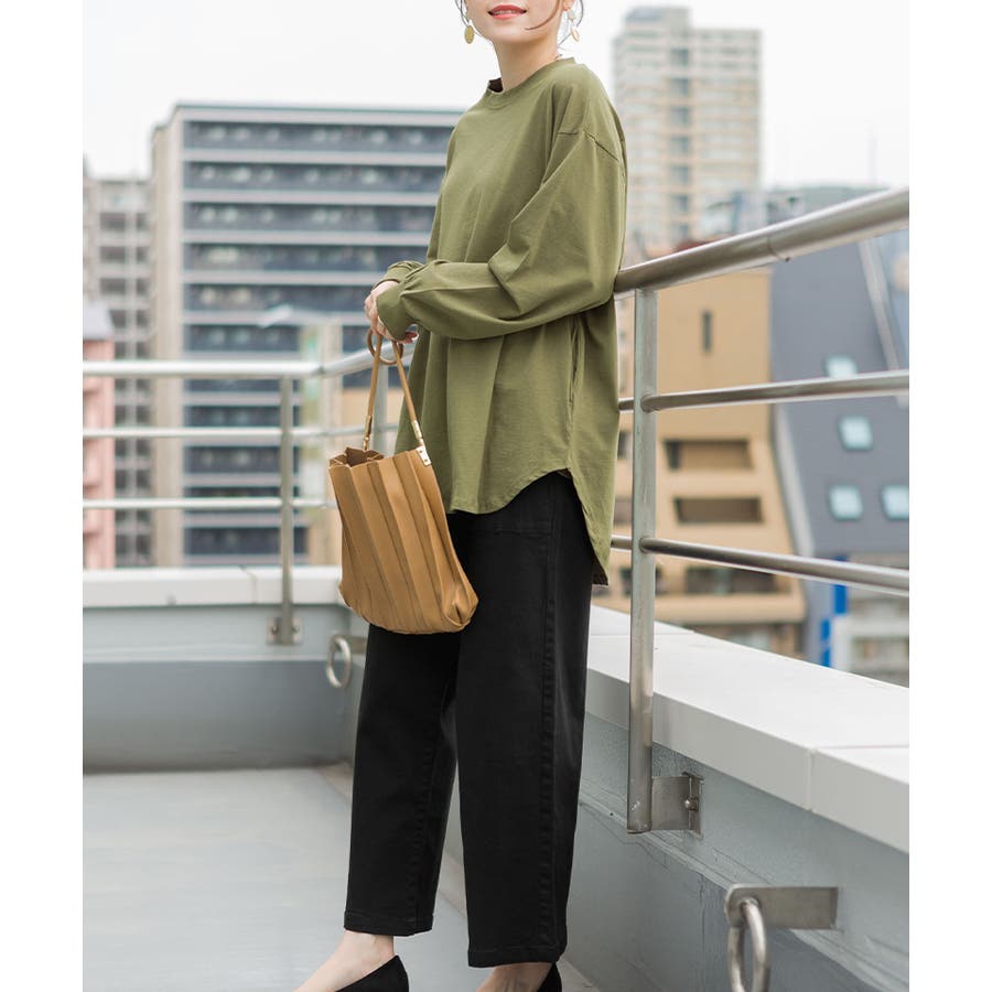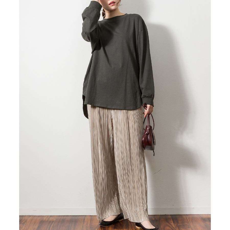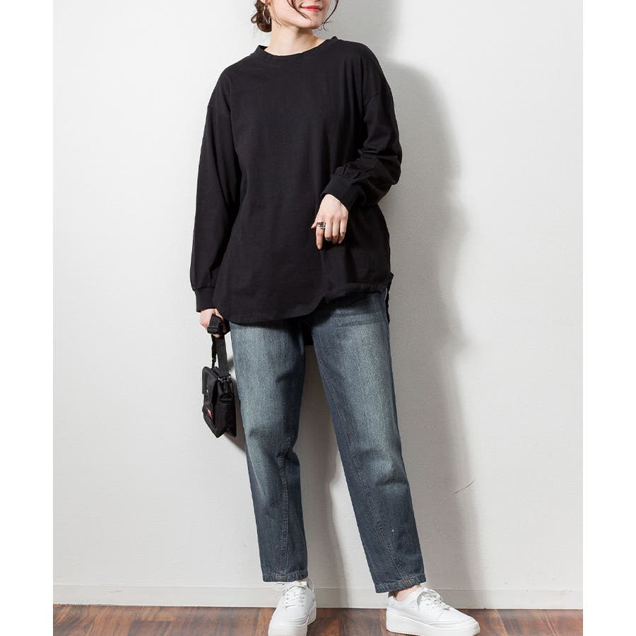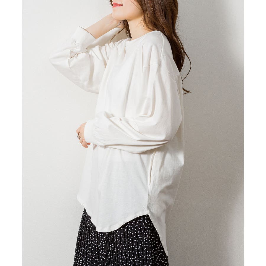 デザインはシンプルでありながら、後ろにあるボタンがアクセントになっており、後ろ姿がおしゃれに見えるようになっています。また、ロングスリーブでありながら、袖口がリブ仕様になっているため、腕周りをきゅっと引き締めてくれます。