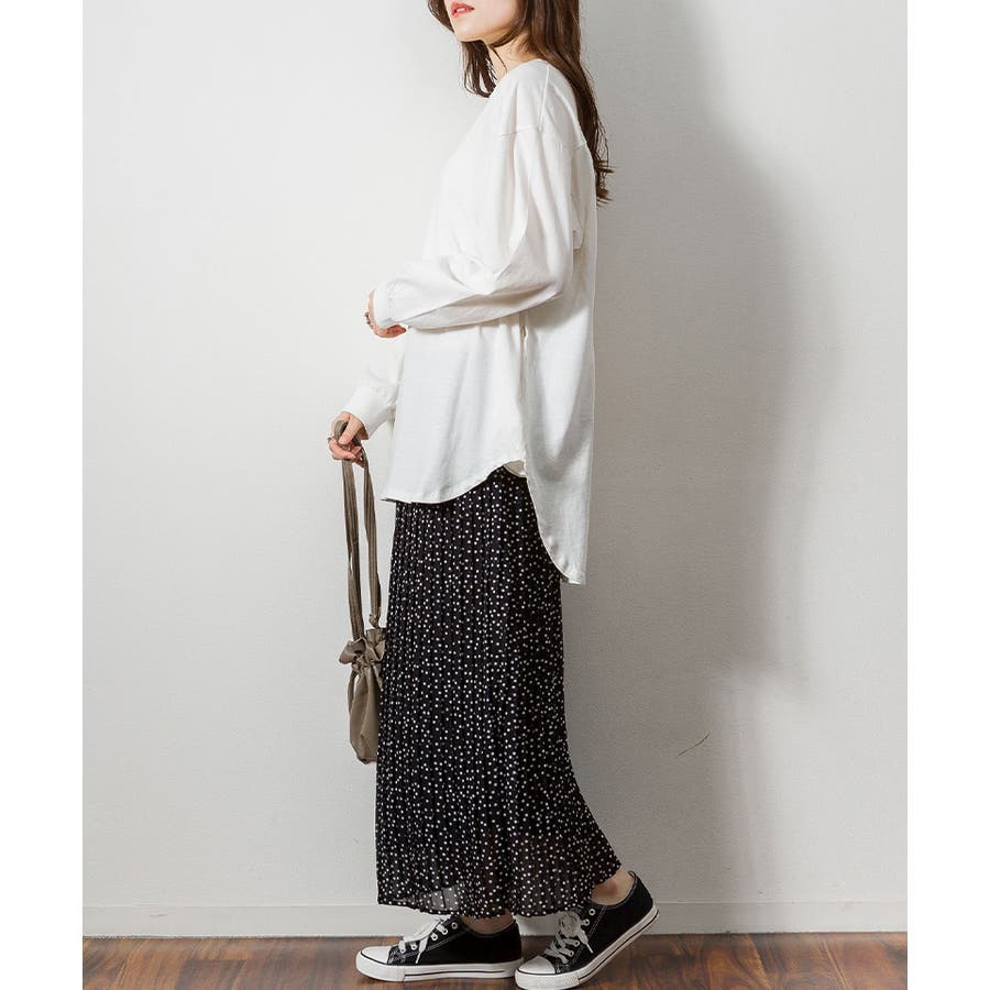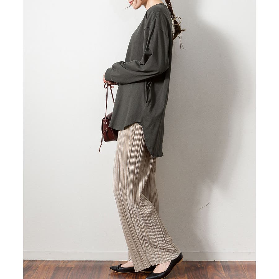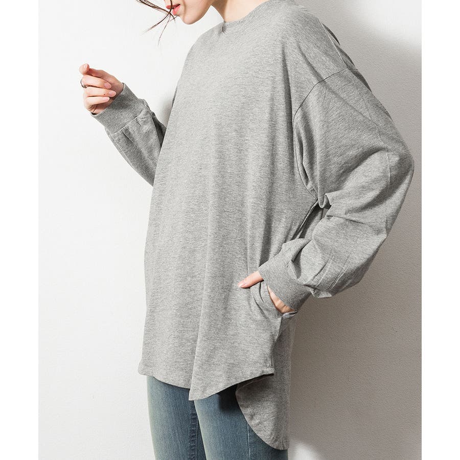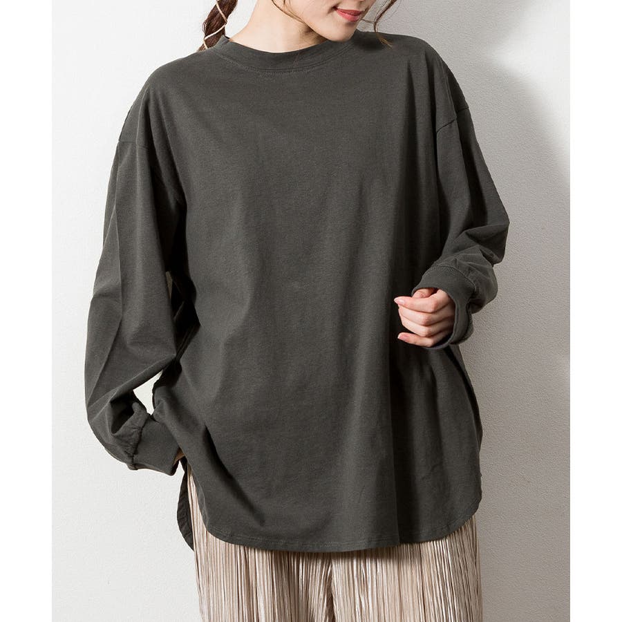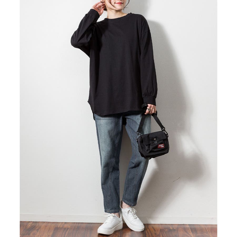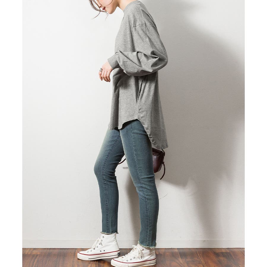 デザインはシンプルでありながら、後ろにあるボタンがアクセントになっており、後ろ姿がおしゃれに見えるようになっています。また、ロングスリーブでありながら、袖口がリブ仕様になっているため、腕周りをきゅっと引き締めてくれます。