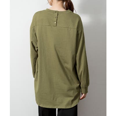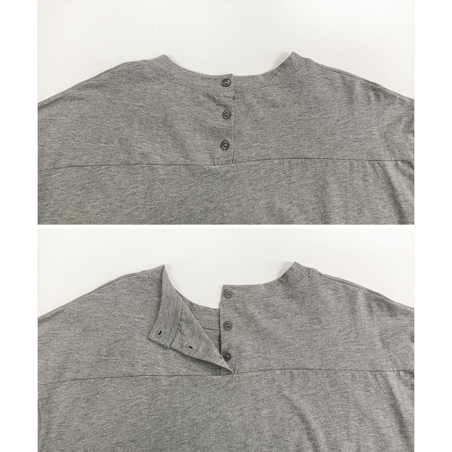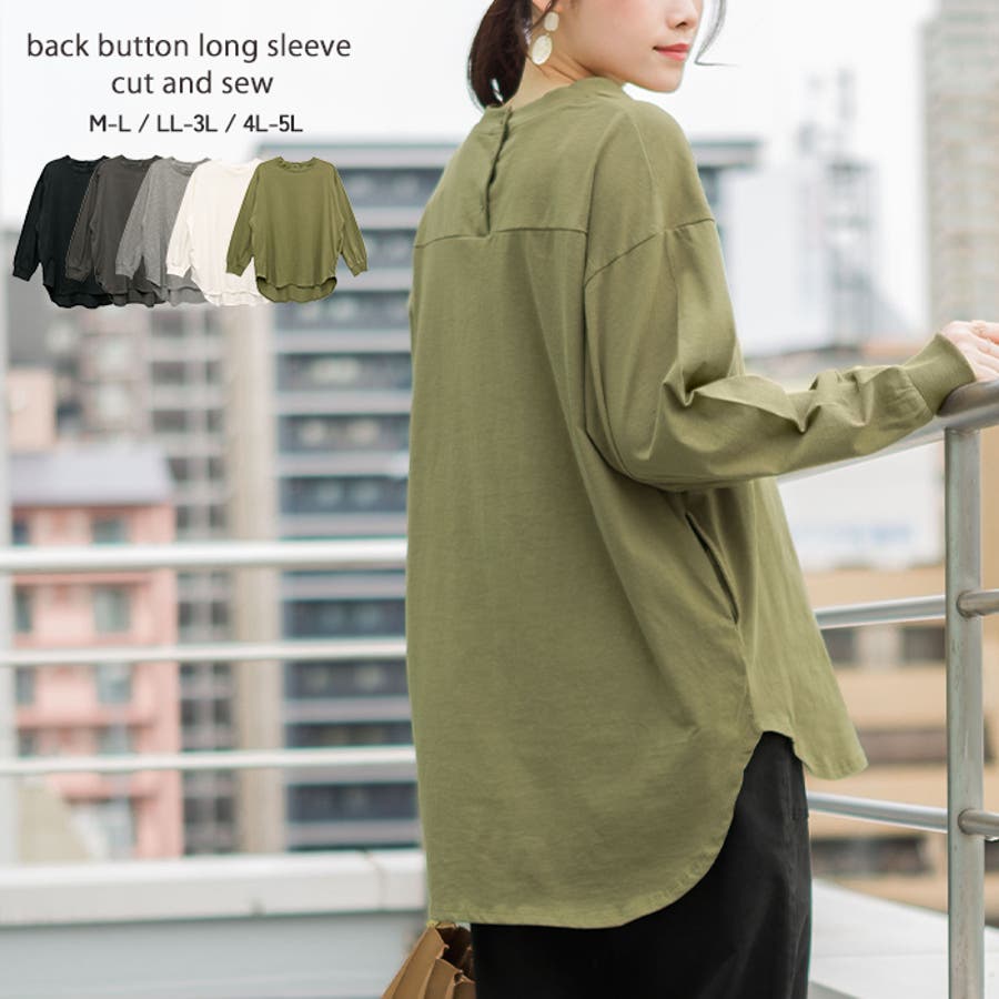 後ろボタンロングスリーブカットソーは、女性向けのファッションアイテムで、背中にボタンが付いたデザインが特徴的なロングスリーブのカットソーです。素材は柔らかくて肌触りが良く、ストレッチ性のある素材を使用しているため、着心地も快適です。