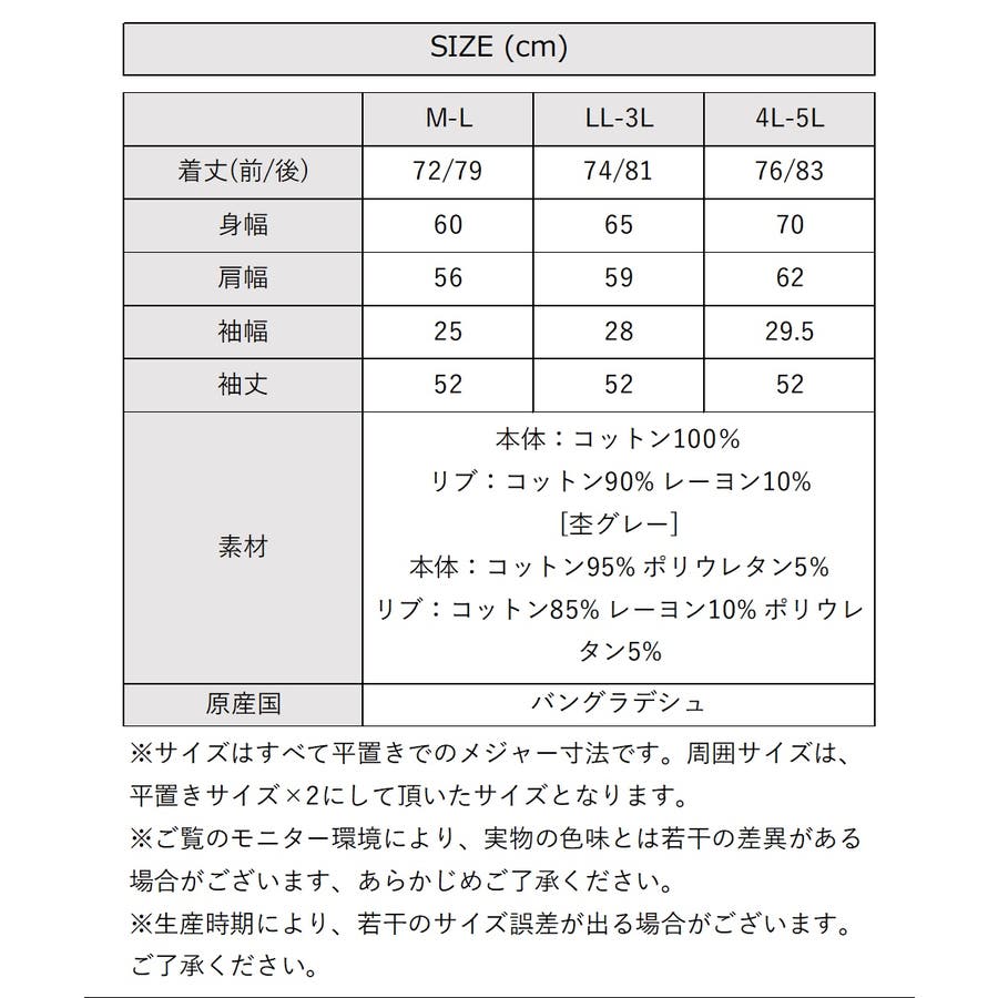 [LL-3Lサイズ]着丈:74/81cm、肩幅:59cm、身幅:65cm、裾幅:65cm、袖丈:52cm