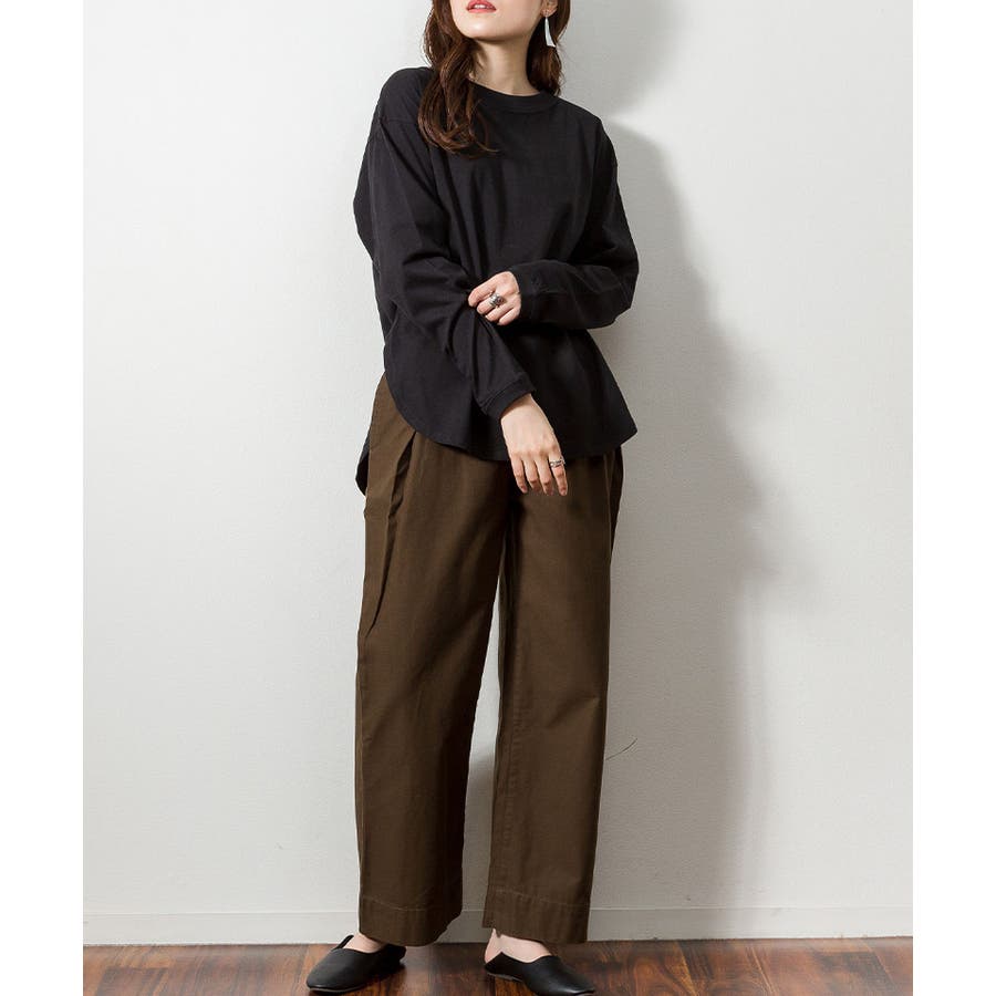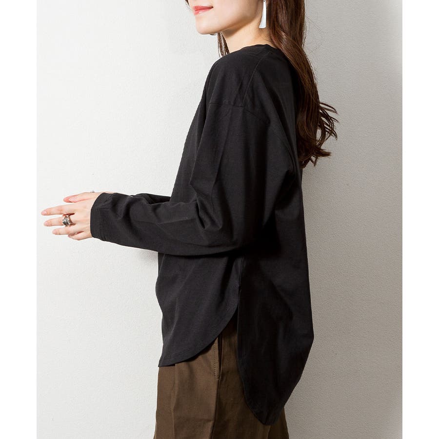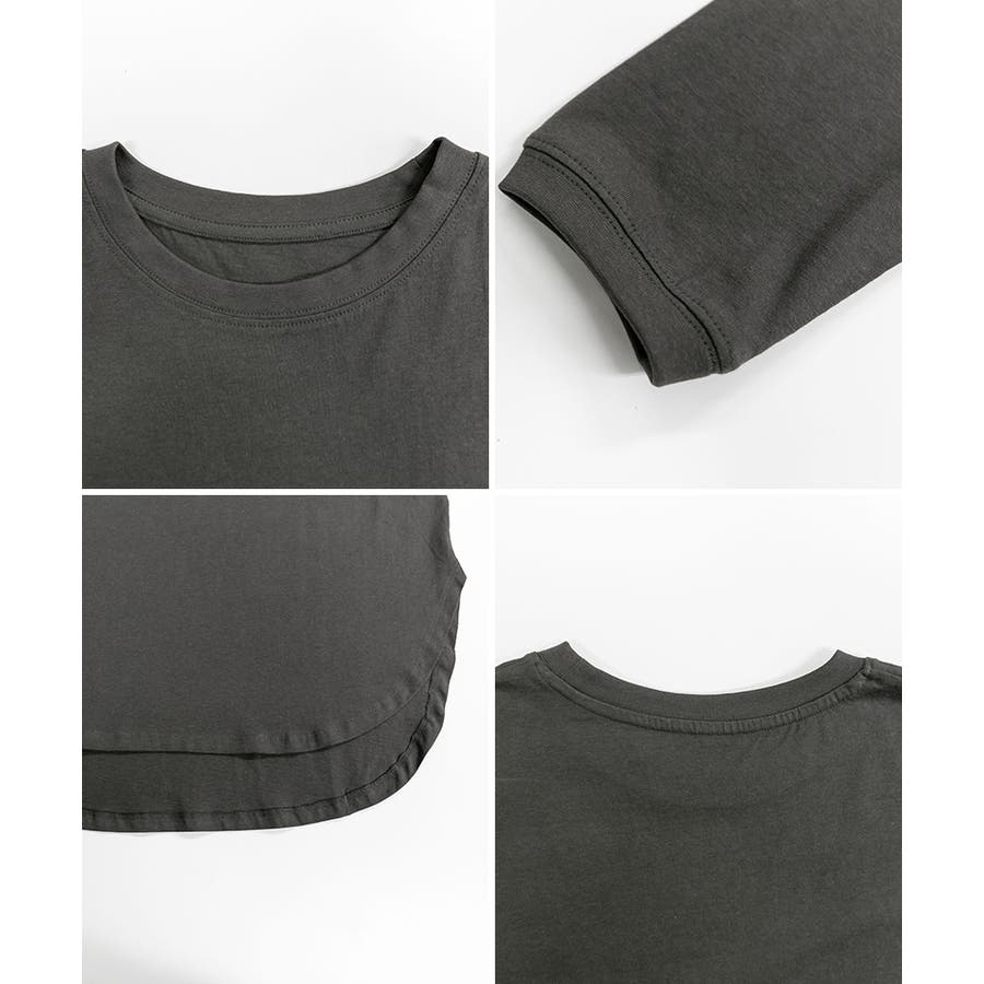 天竺ラウンドヘムロンTシャツは、カジュアルなコーディネートにも合わせやすく、ラウンドヘムのデザインがおしゃれなので、ファッション性を求める人にもおすすめのTシャツです。