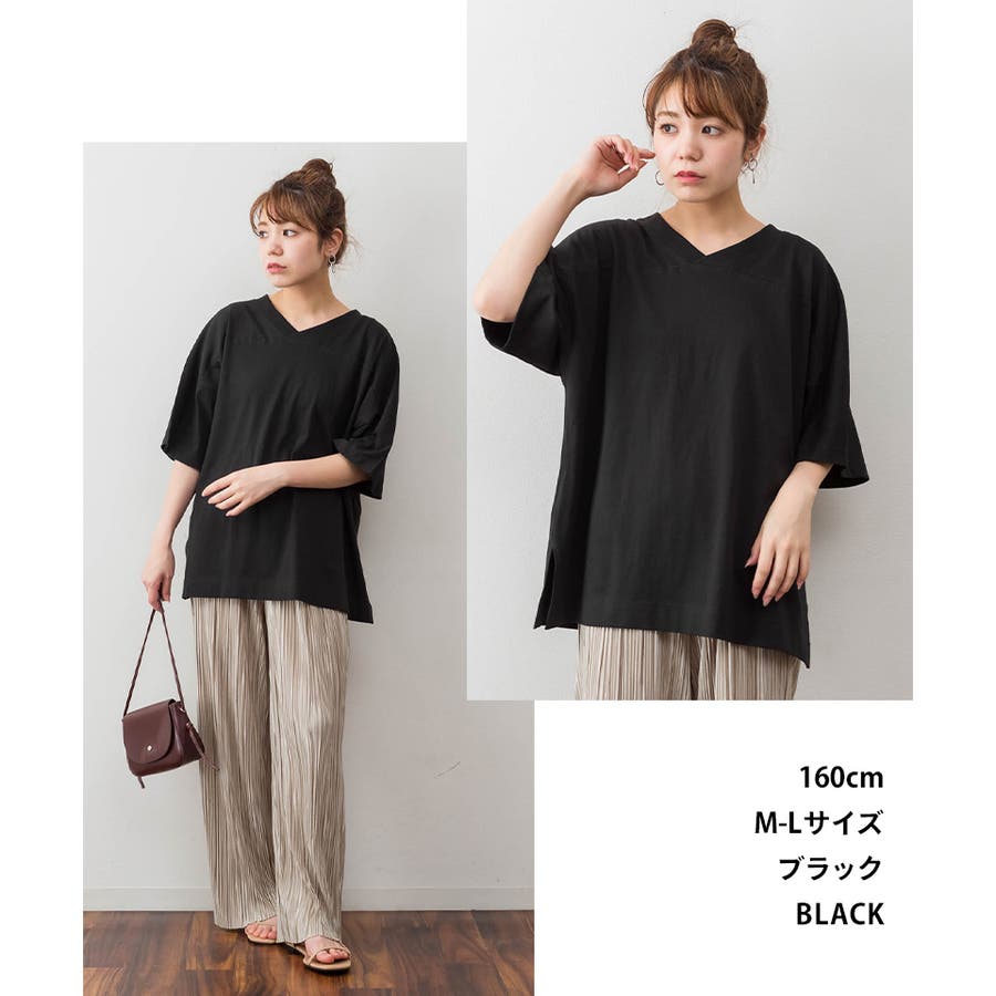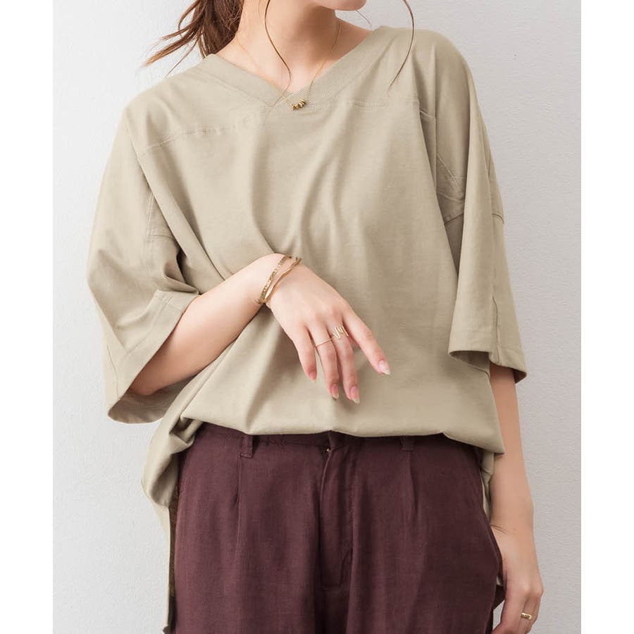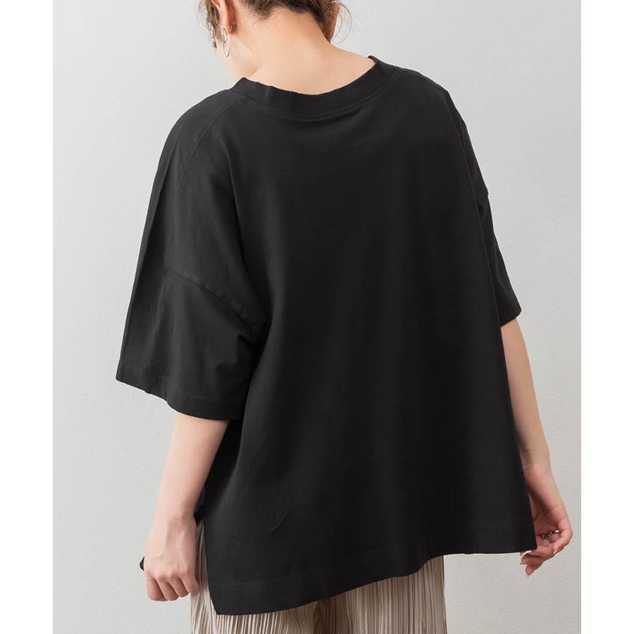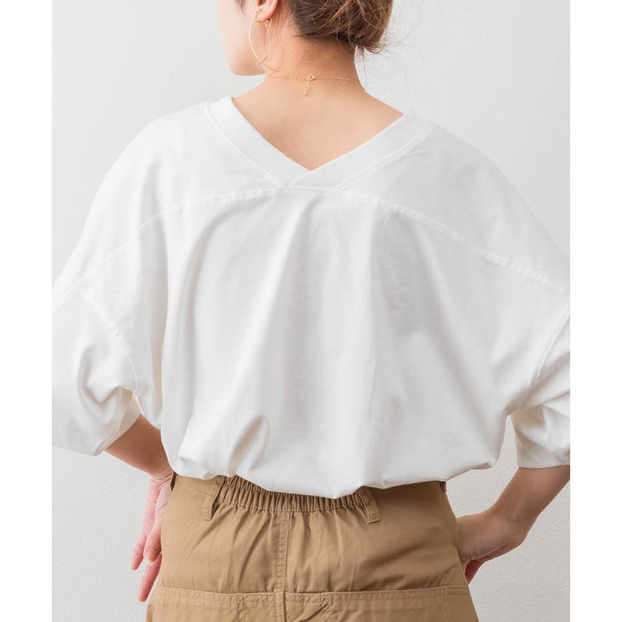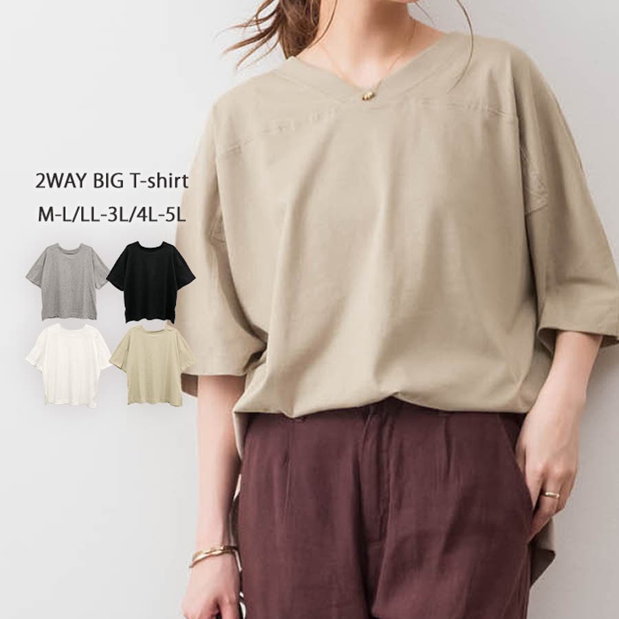 前後でクルーネックとVネックが楽しめるビッグシルエットTシャツ。