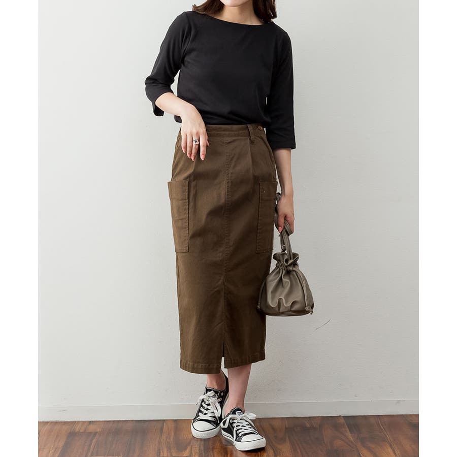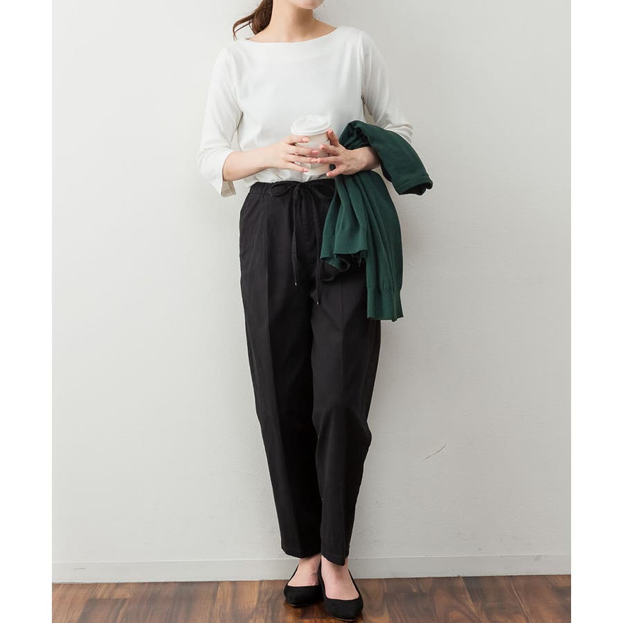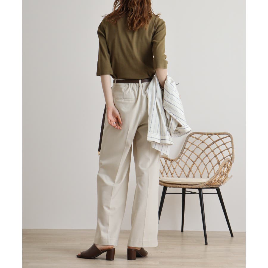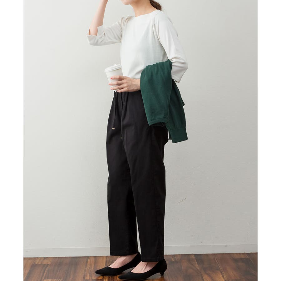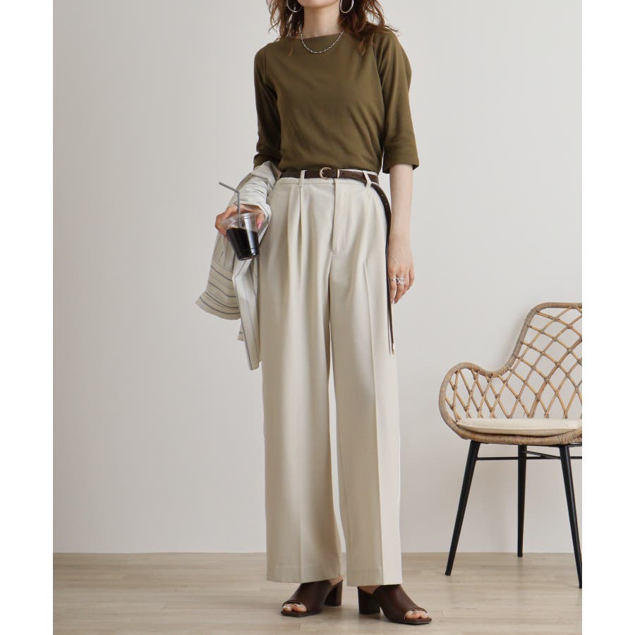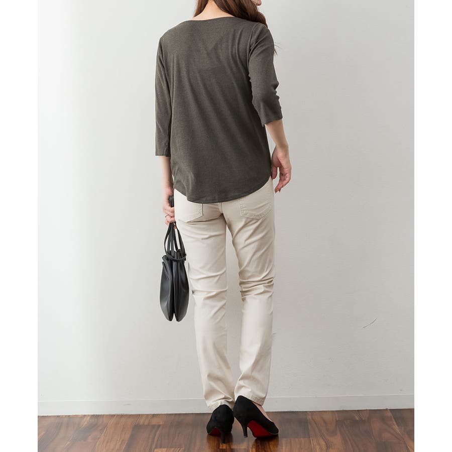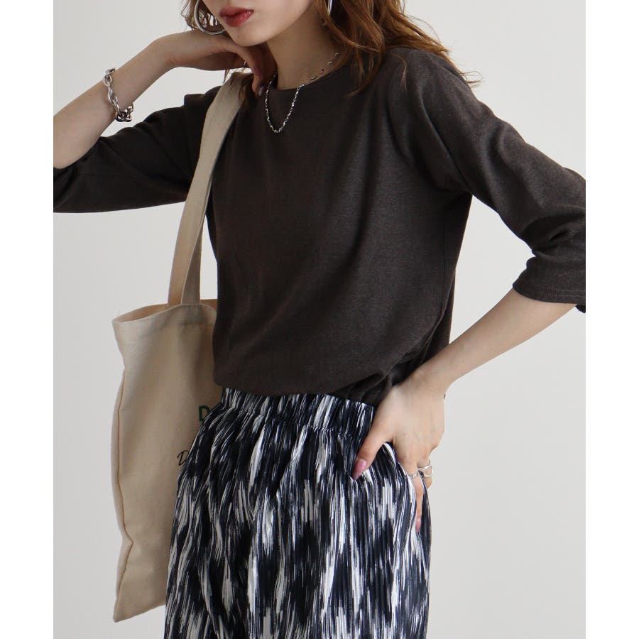 カットソー素材でカジュアルライクに着こなせます。