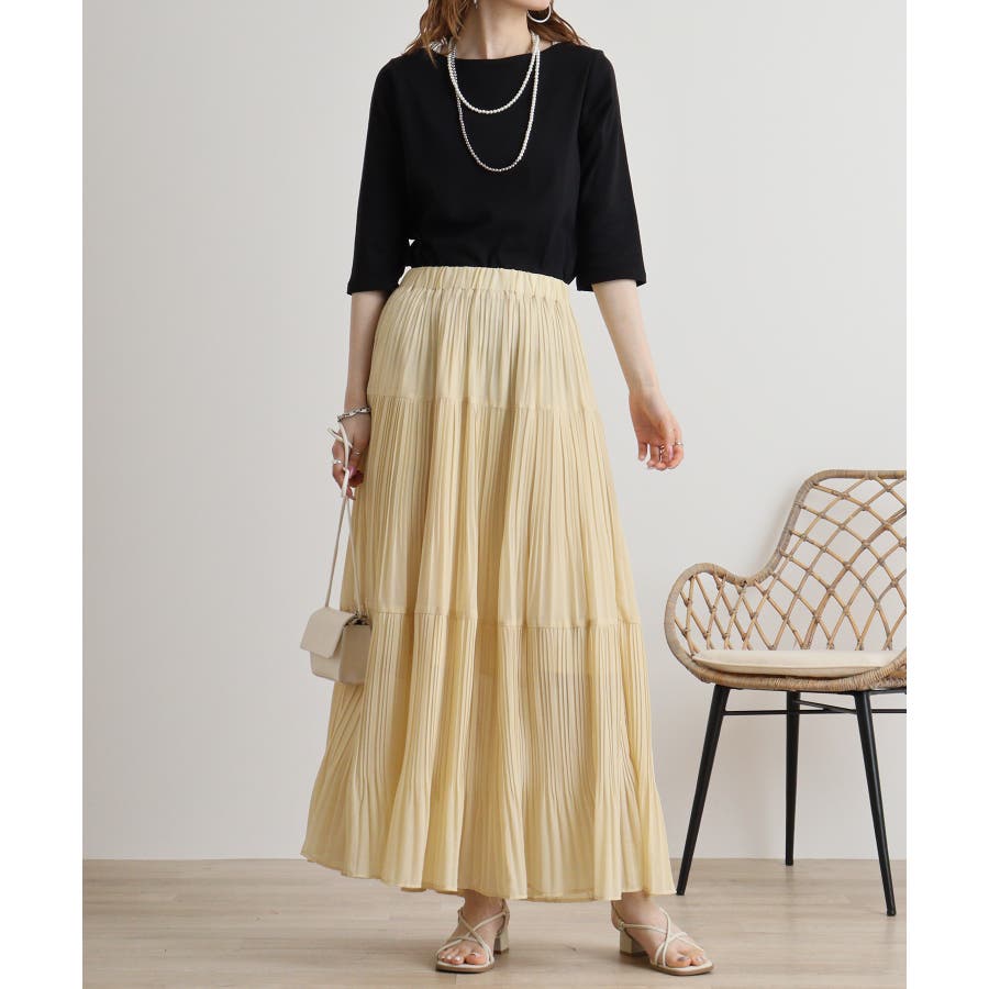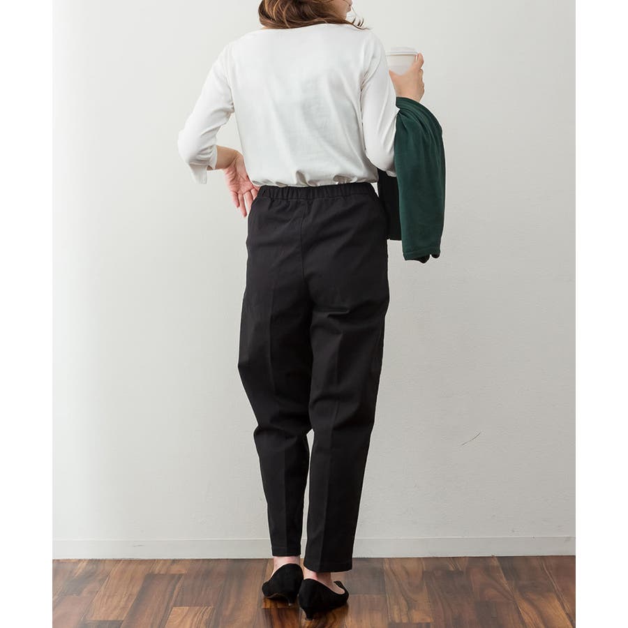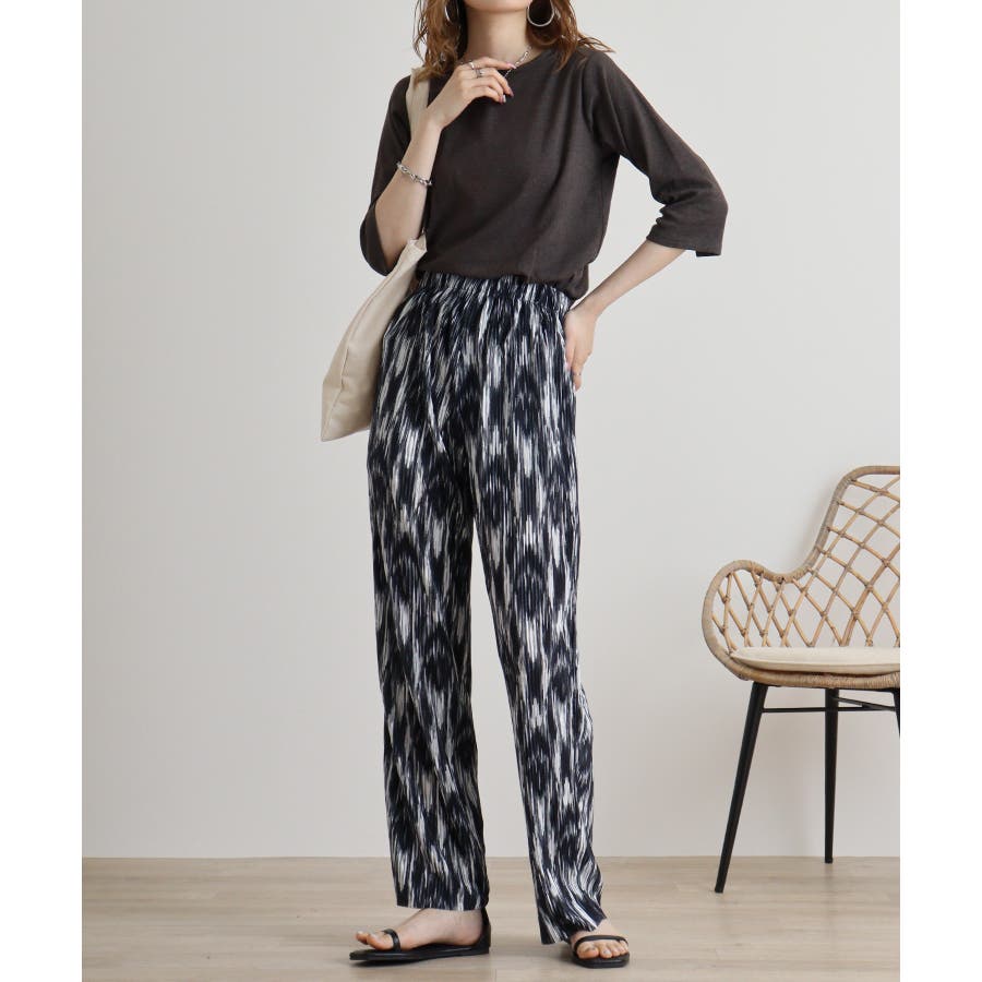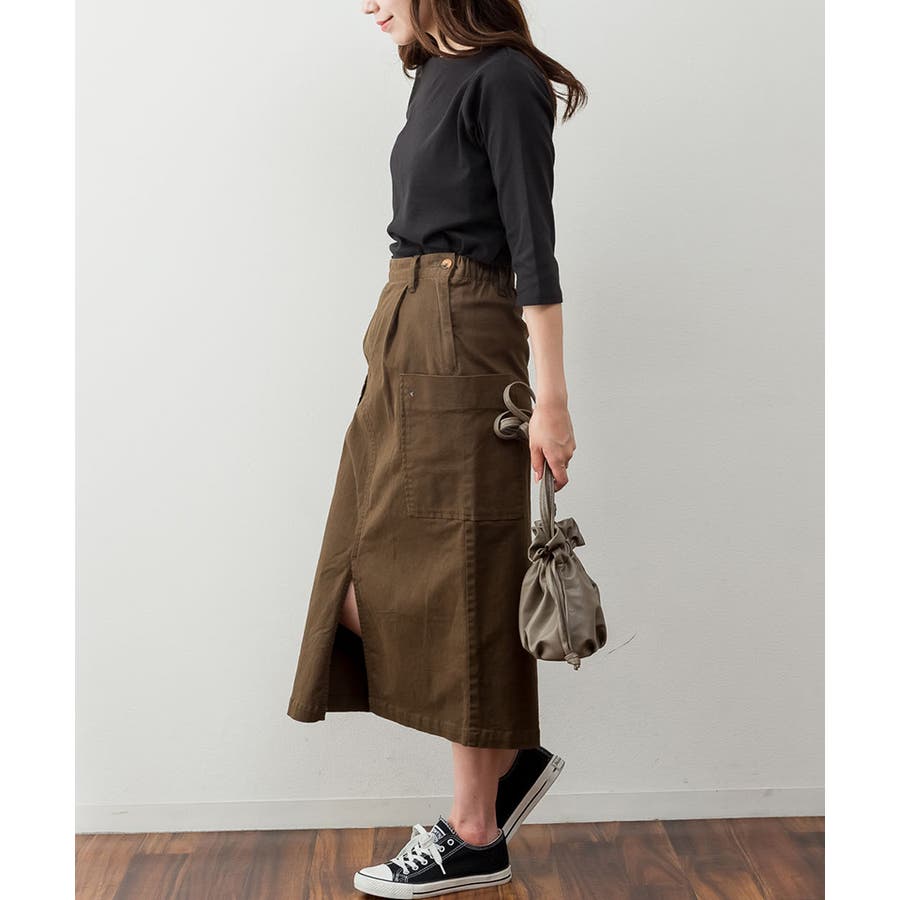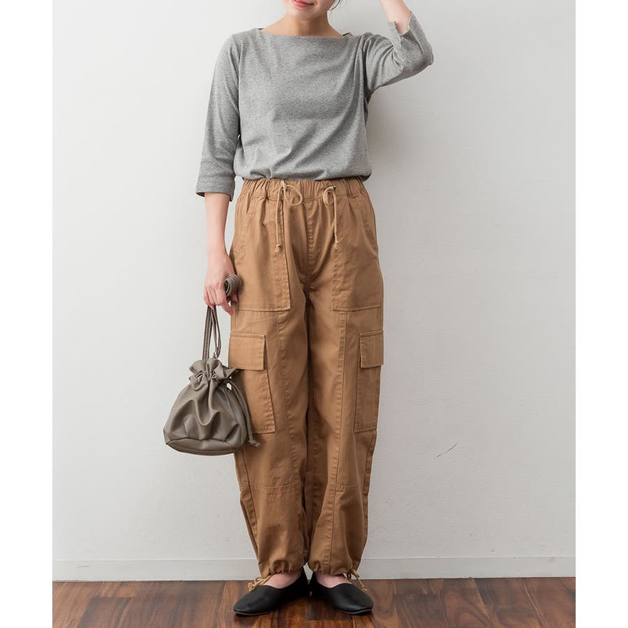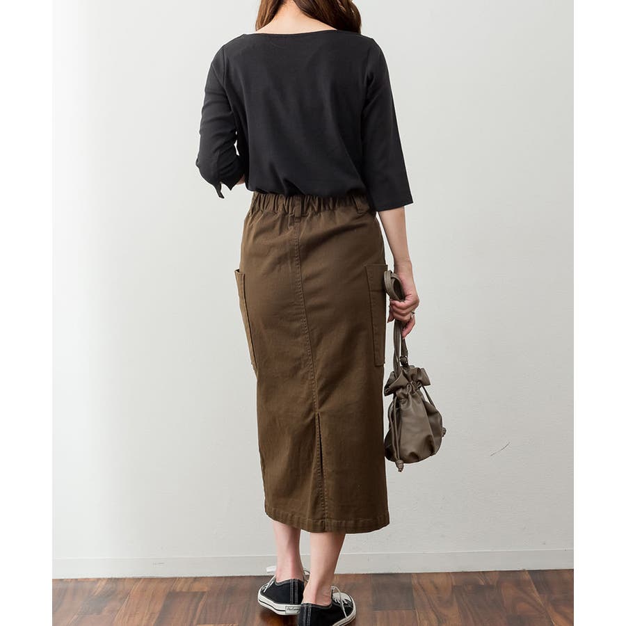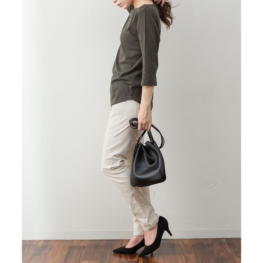 カットソー素材でカジュアルライクに着こなせます。