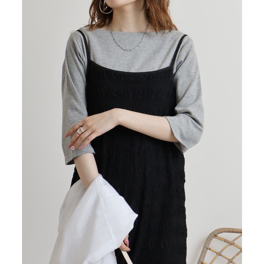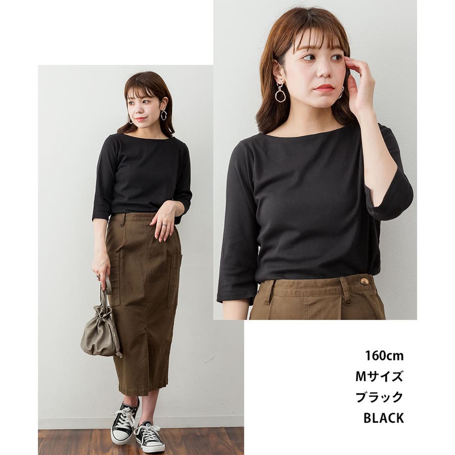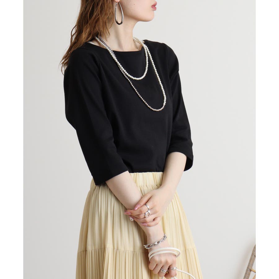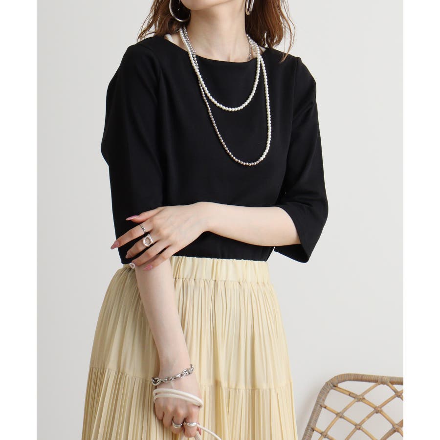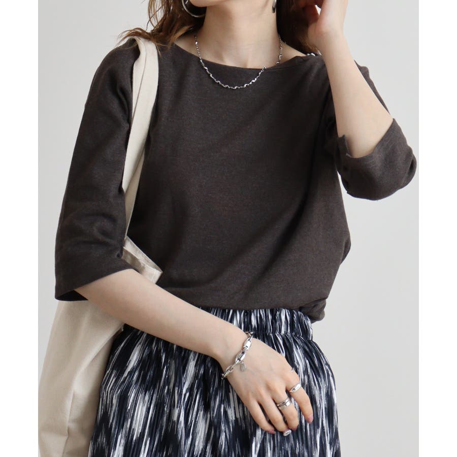 ボートネック七分袖プルオーバー