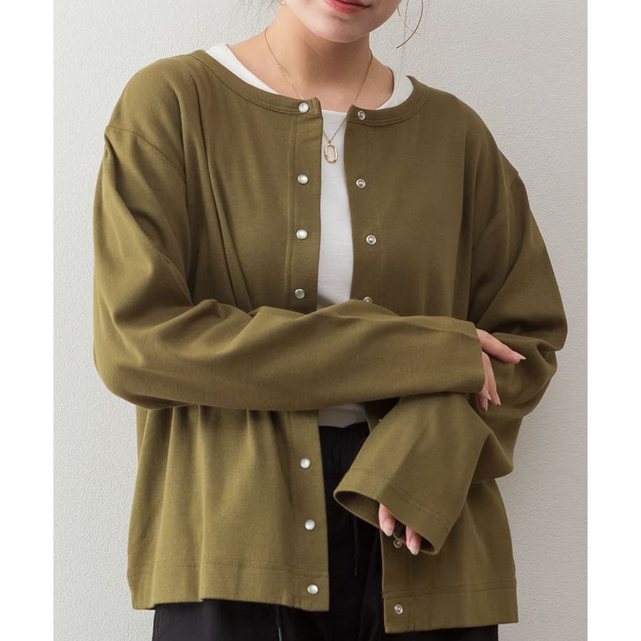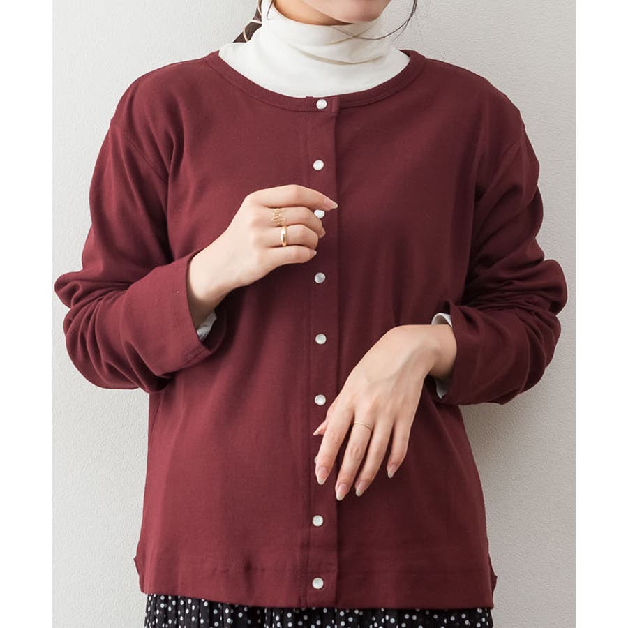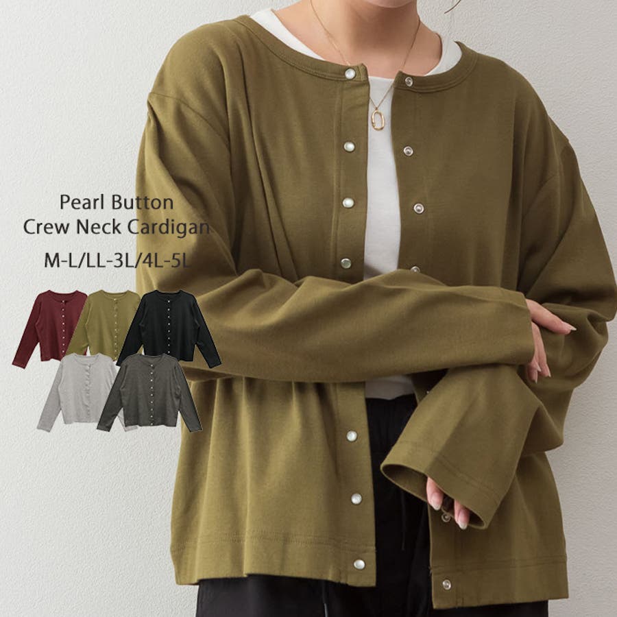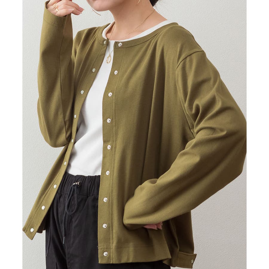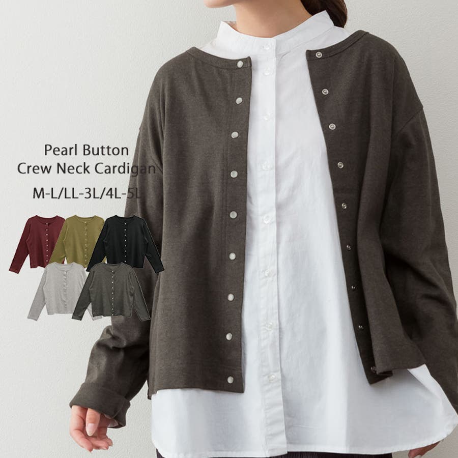 パールボタンクルーネックカーディガン