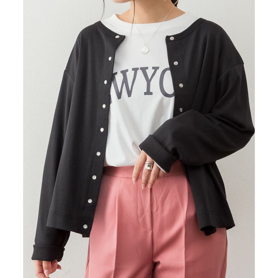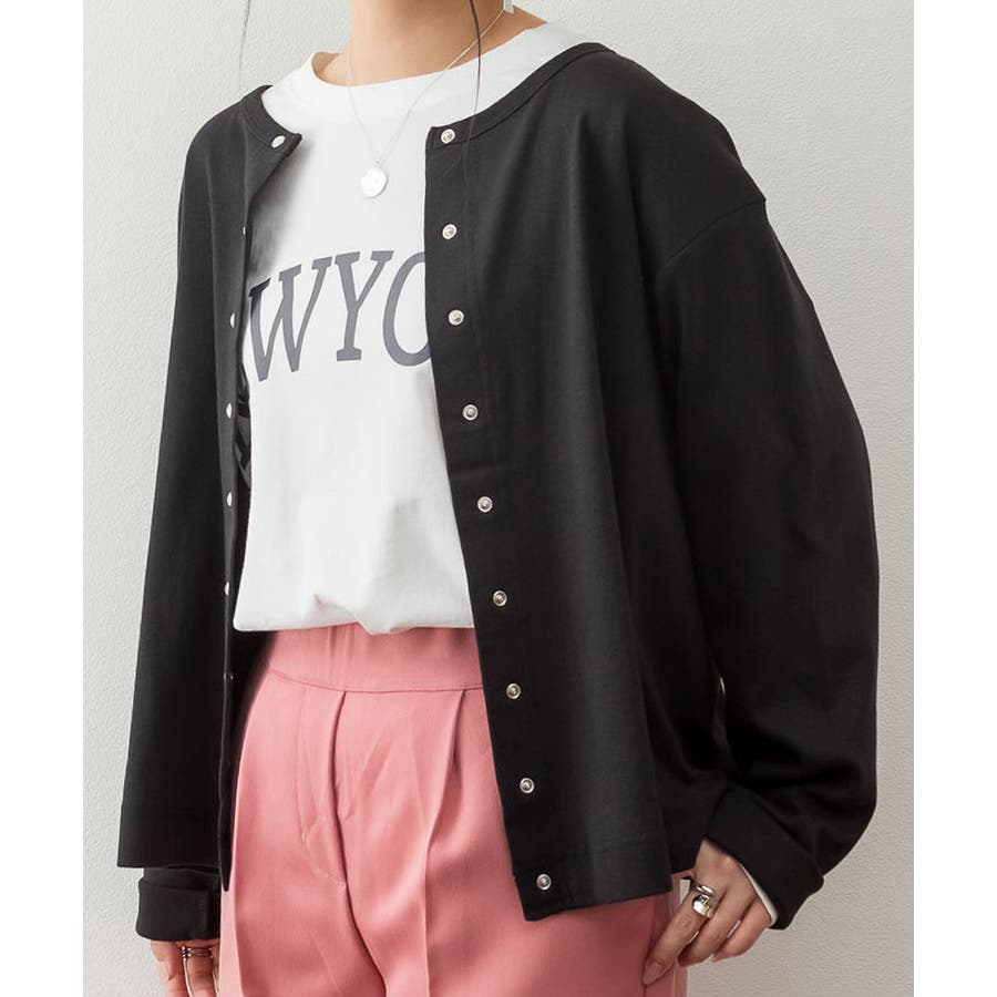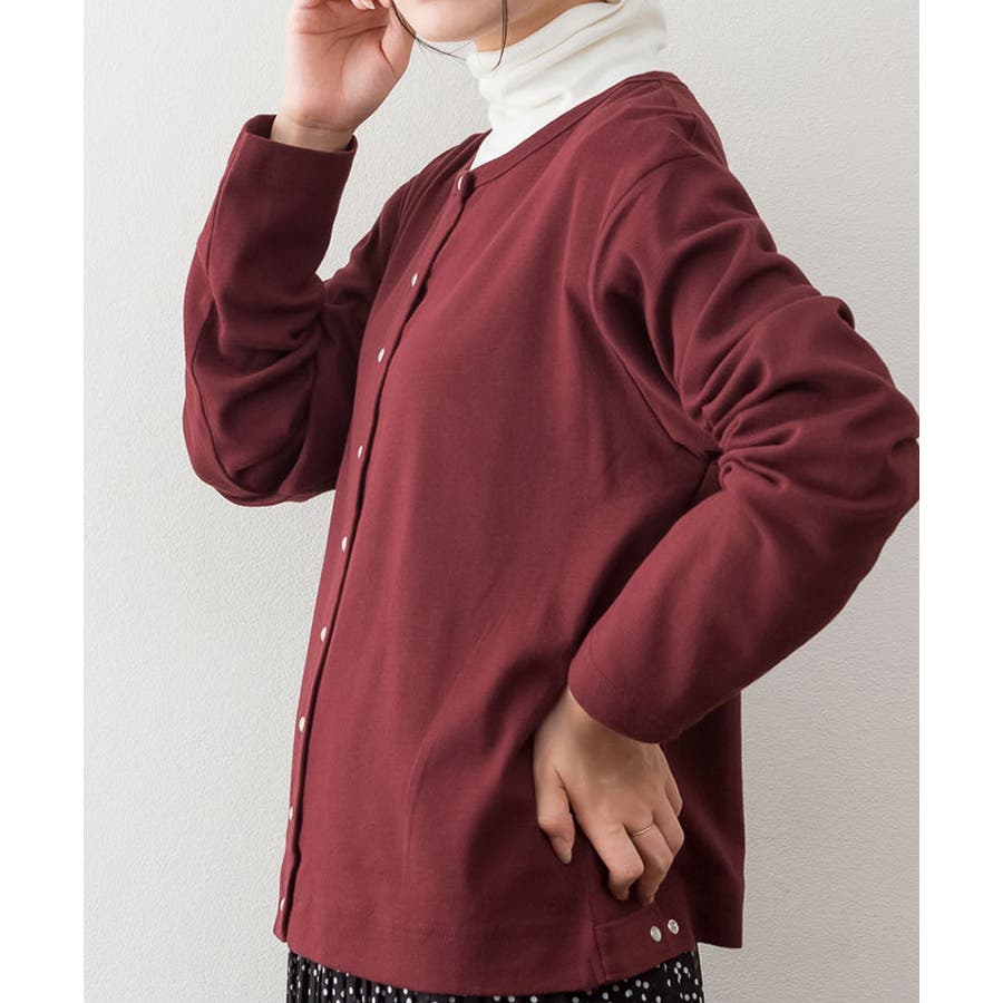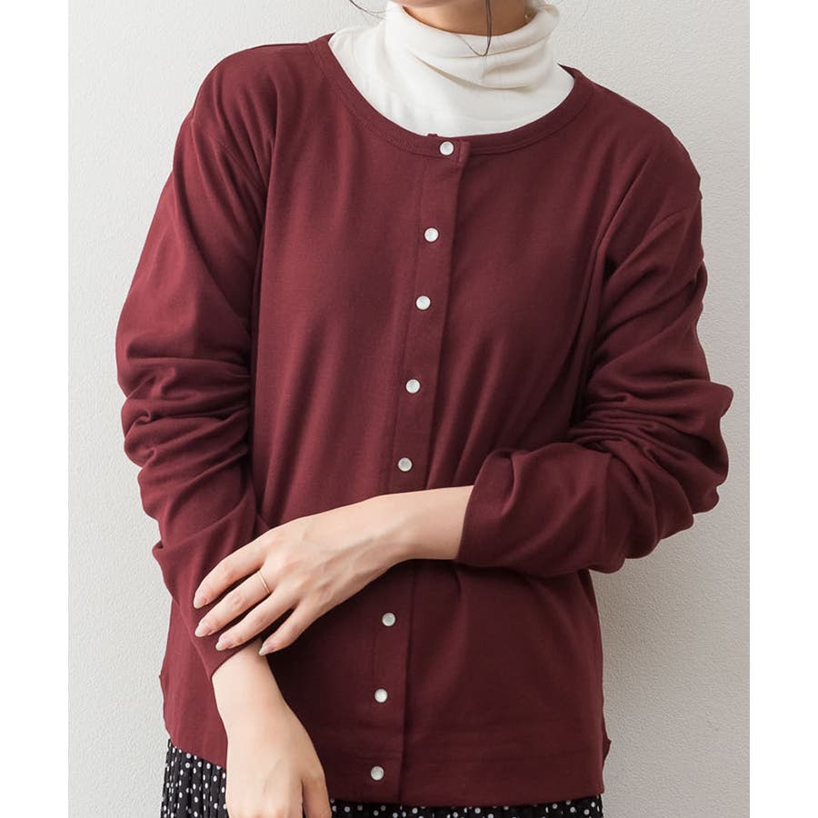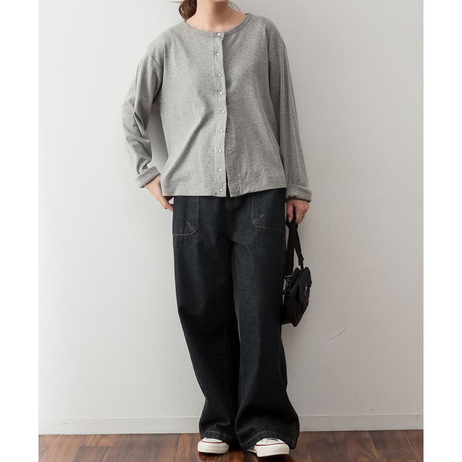 パールボタンクルーネックカーディガン