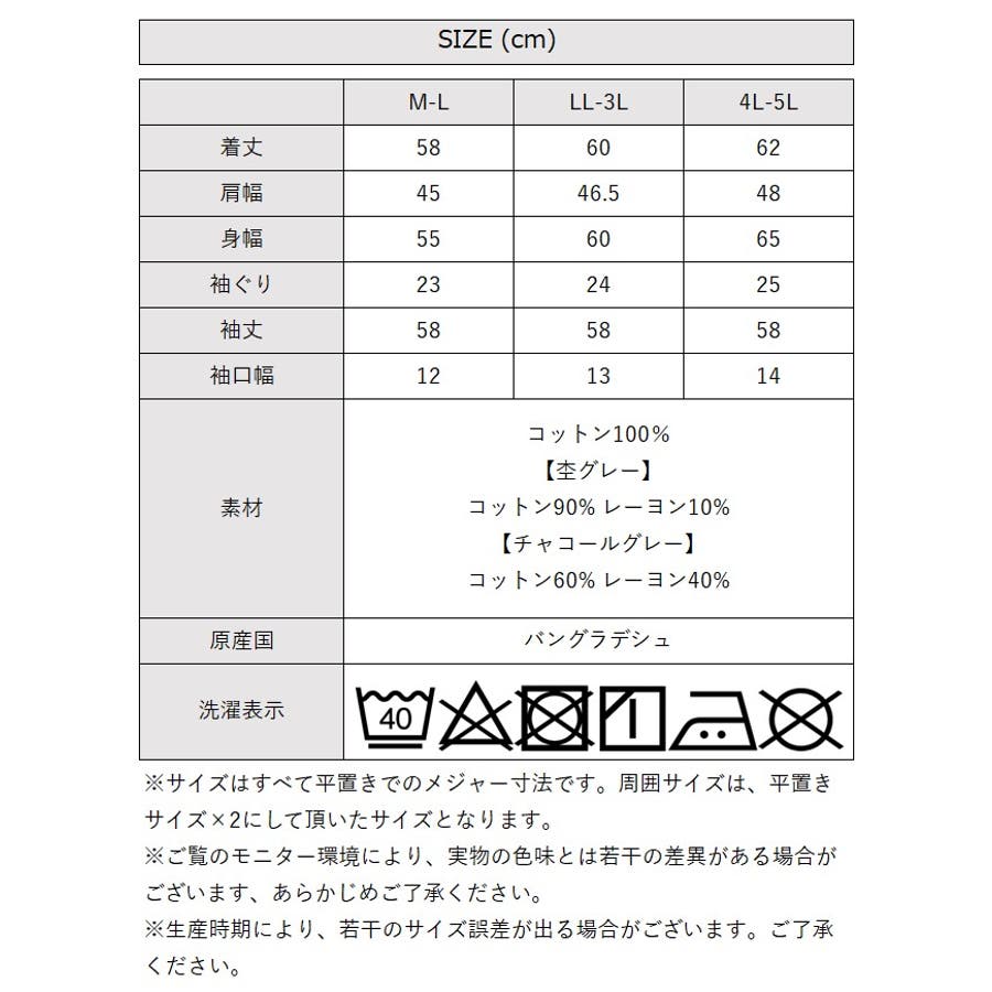 [LL-3Lサイズ]丈60cm、肩幅46.5cm、身幅60cm、裾幅60cm、袖丈58cm、袖幅23.5cm
