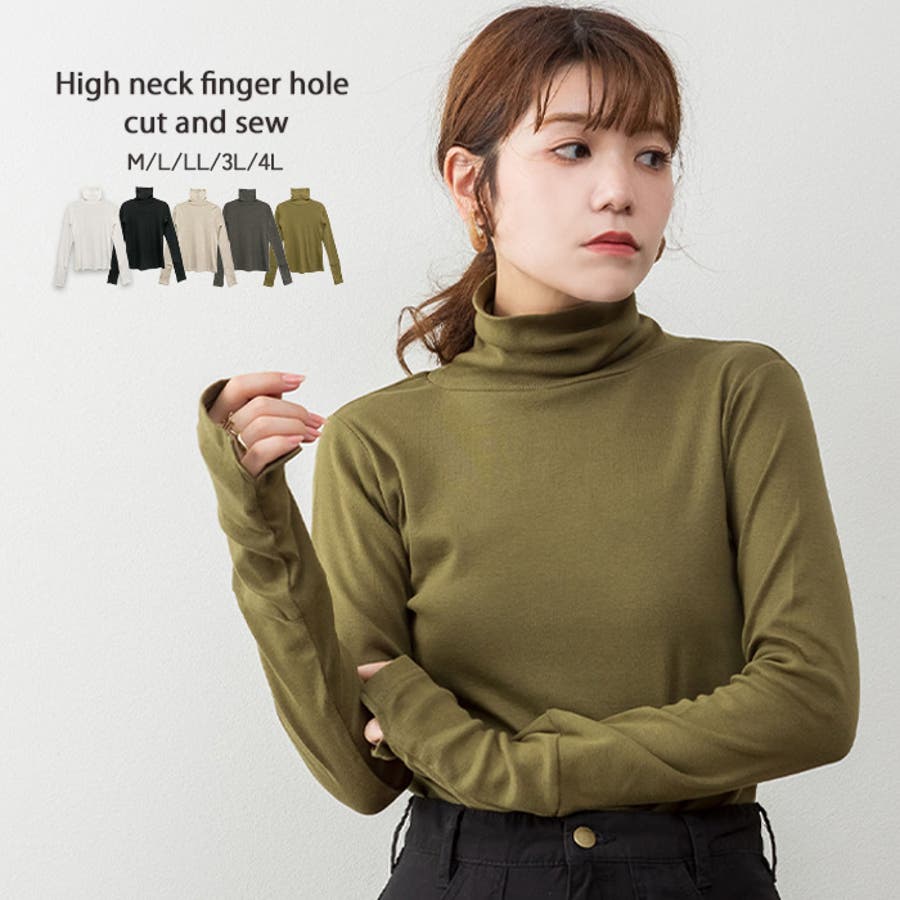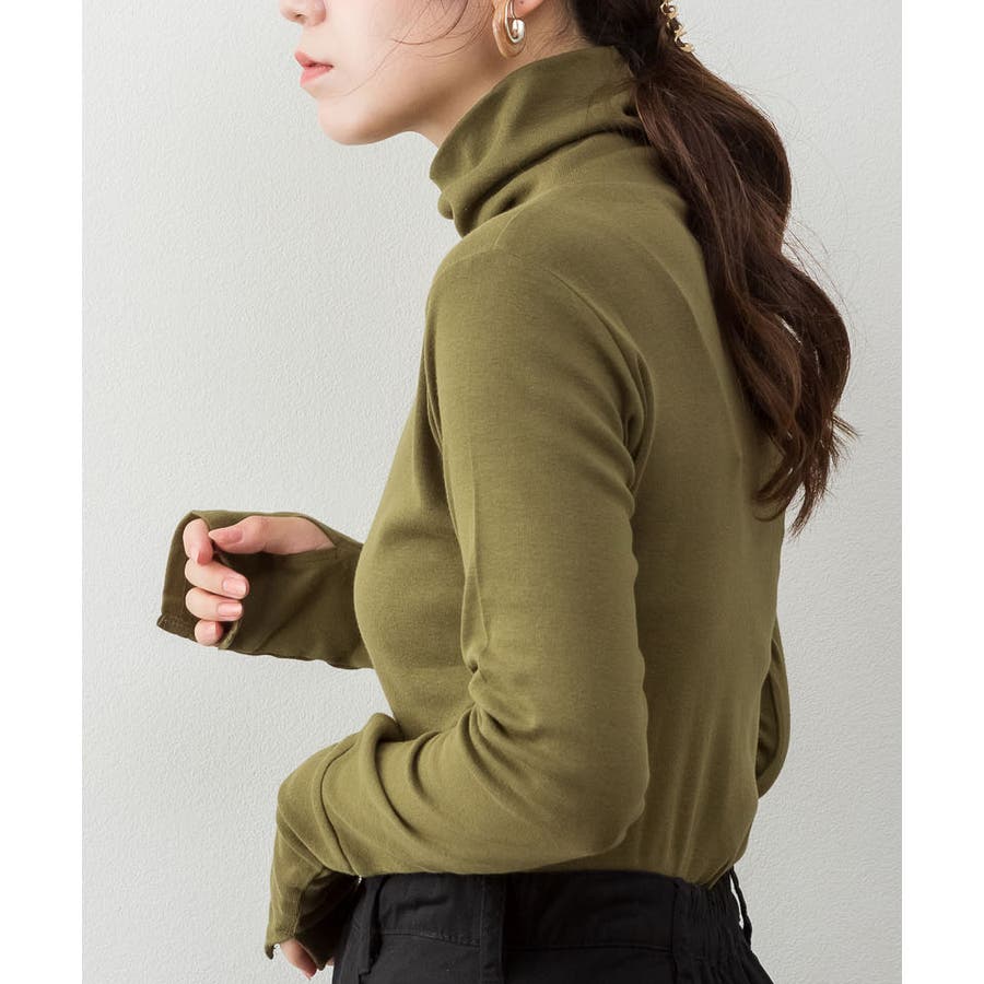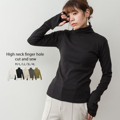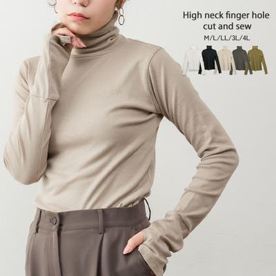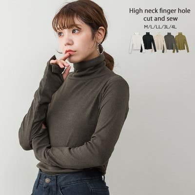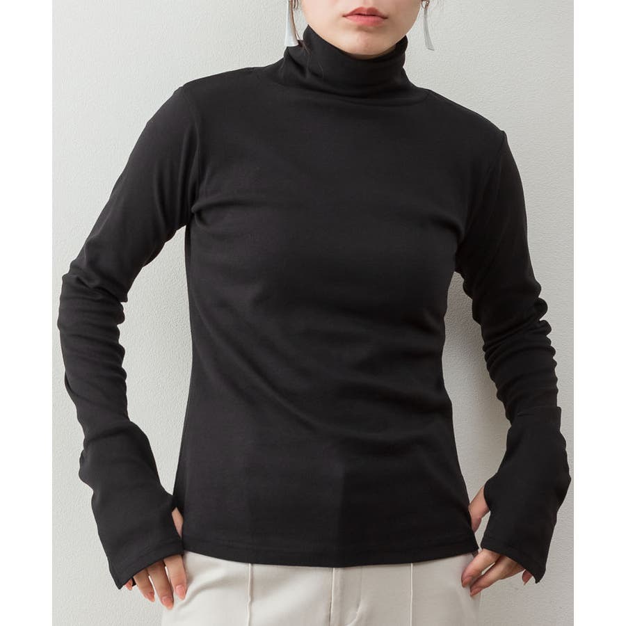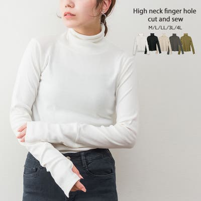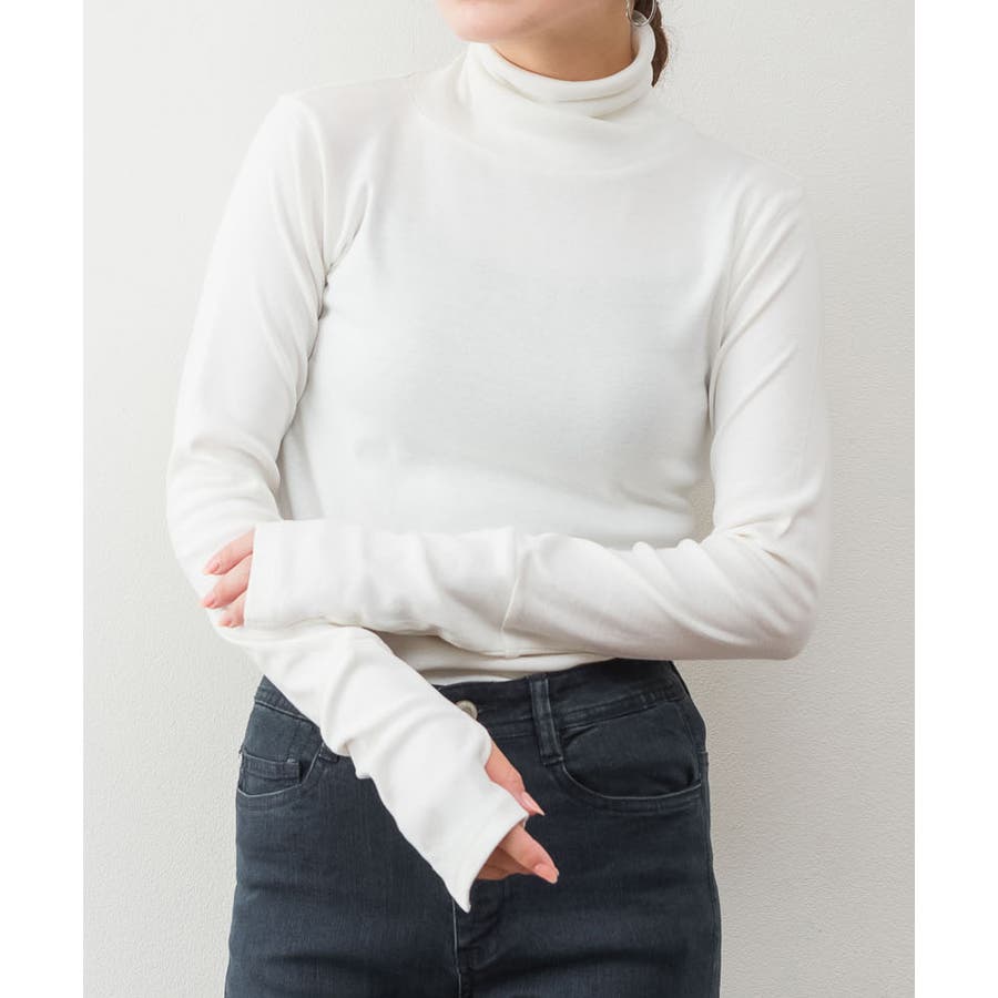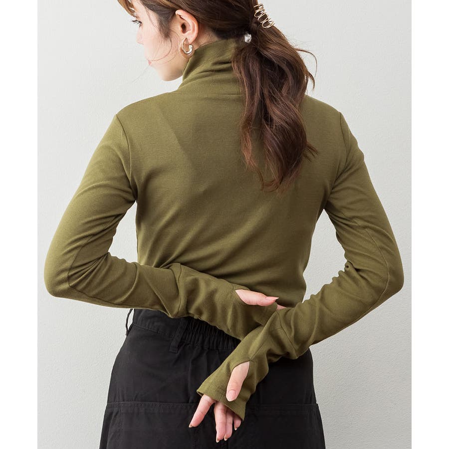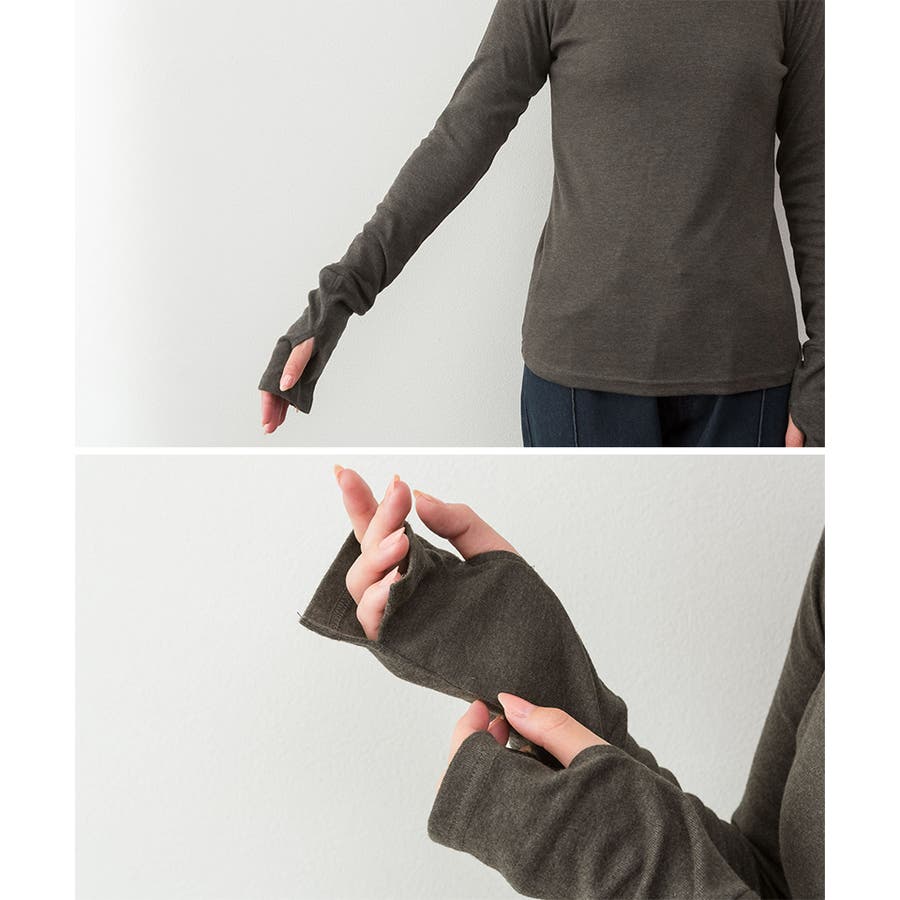 ハイネック指穴カットソー