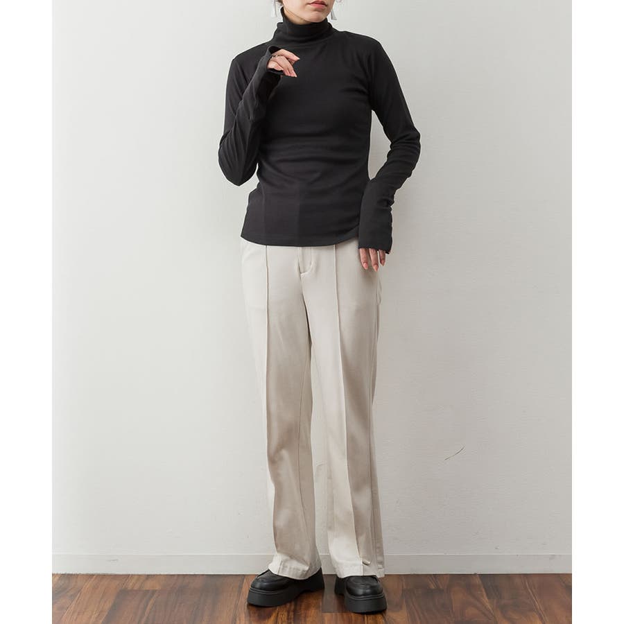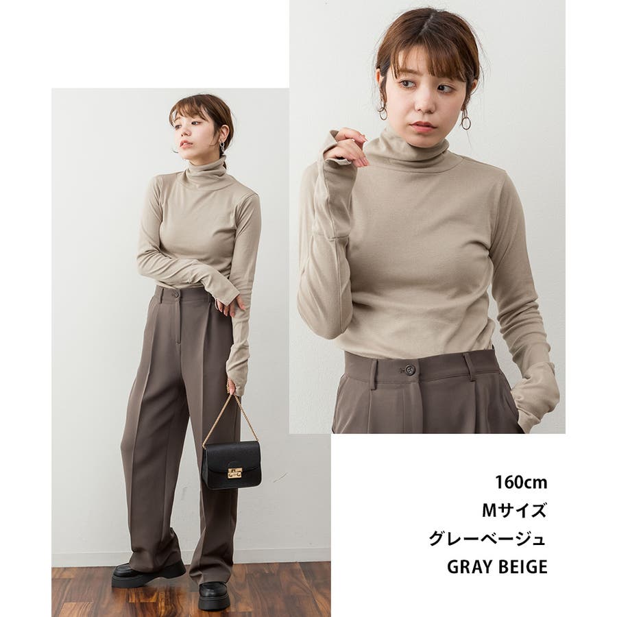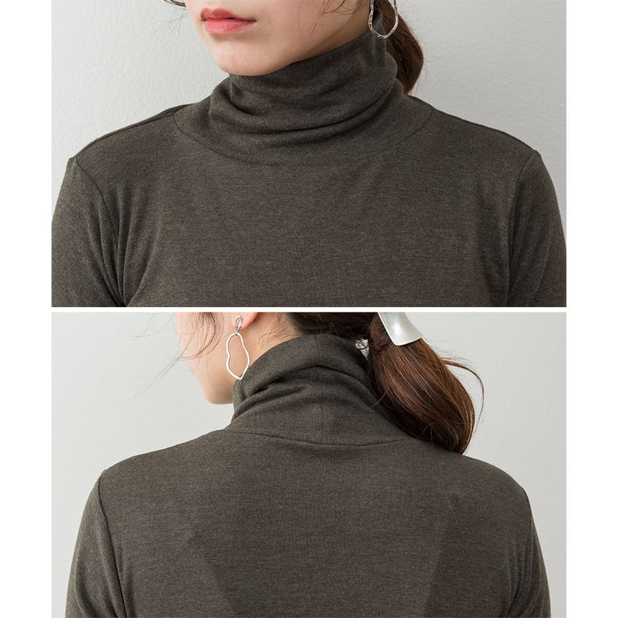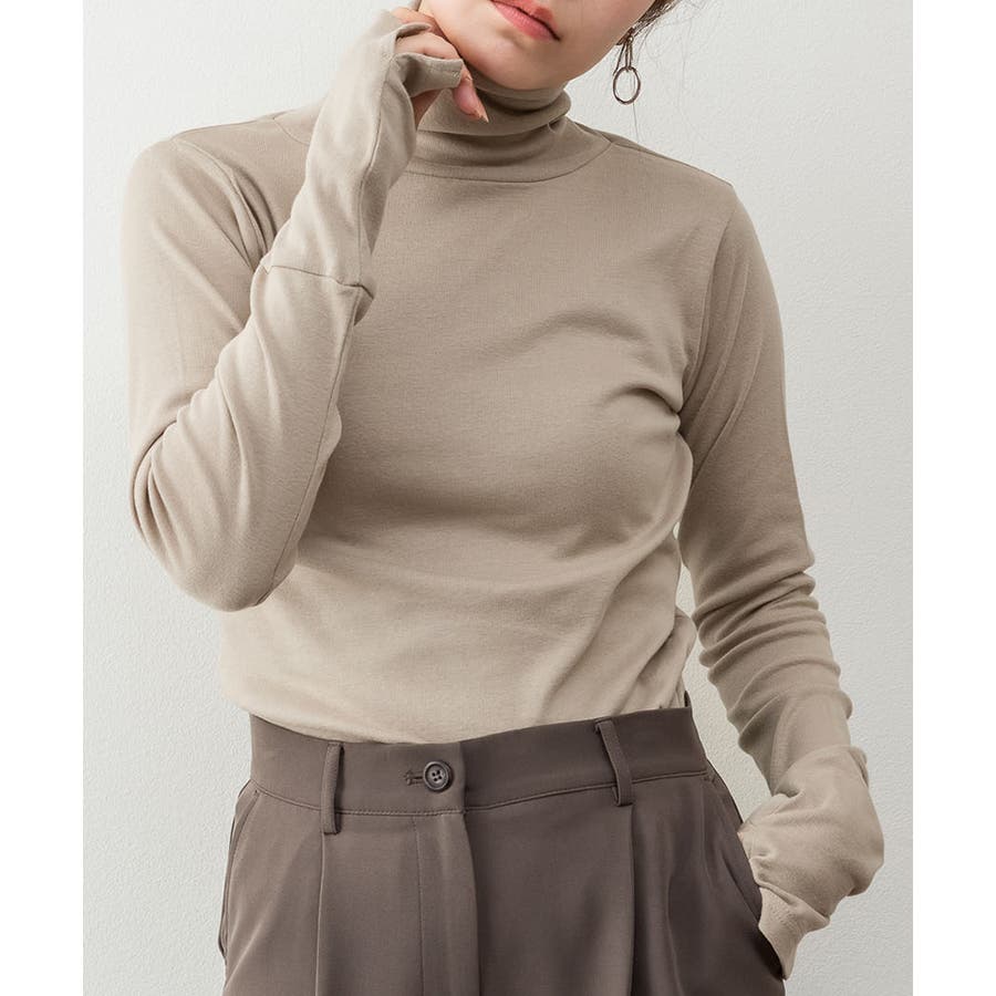 1枚着でもレイヤードスタイルにもおすすめなタートルネックのカットソー。