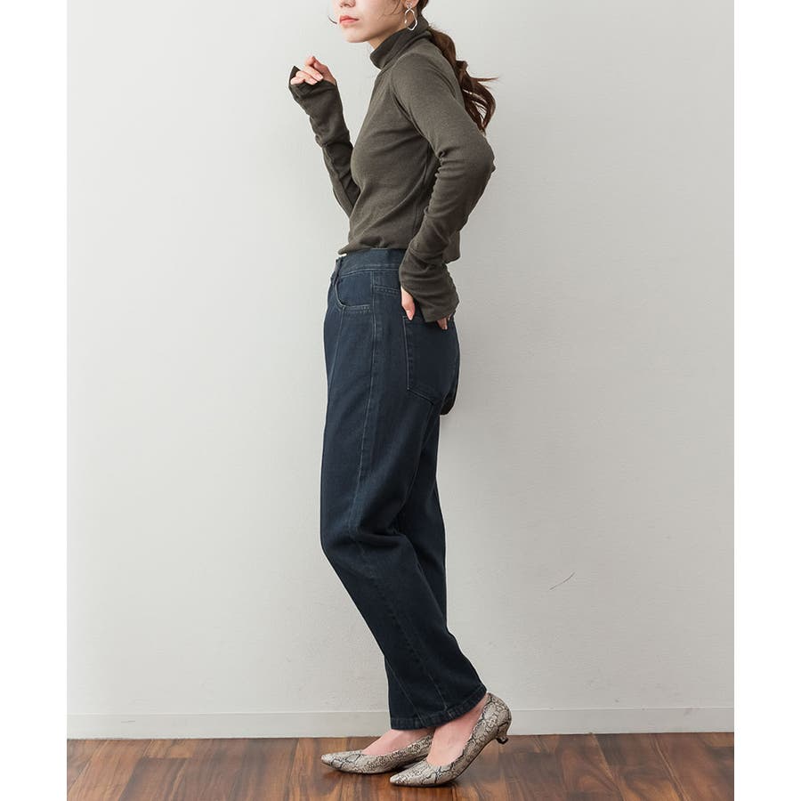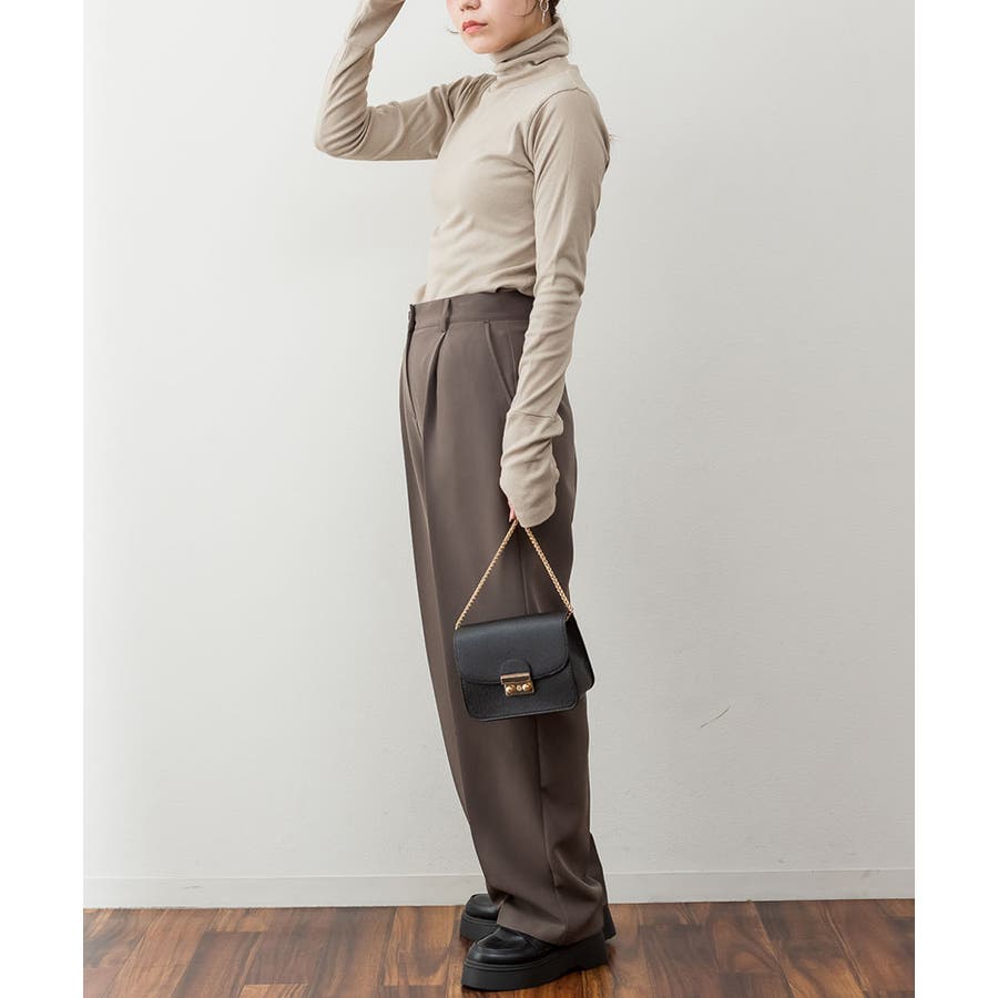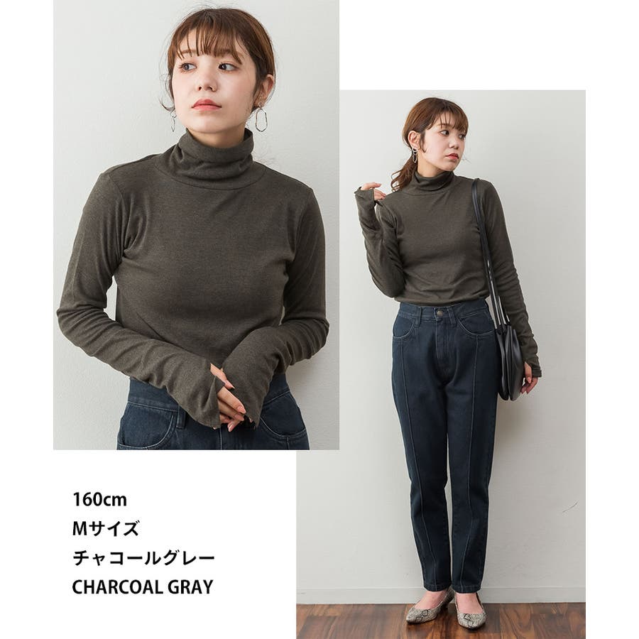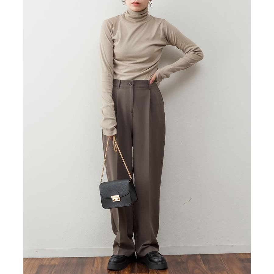 1枚着でもレイヤードスタイルにもおすすめなタートルネックのカットソー。
