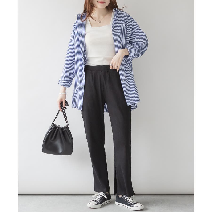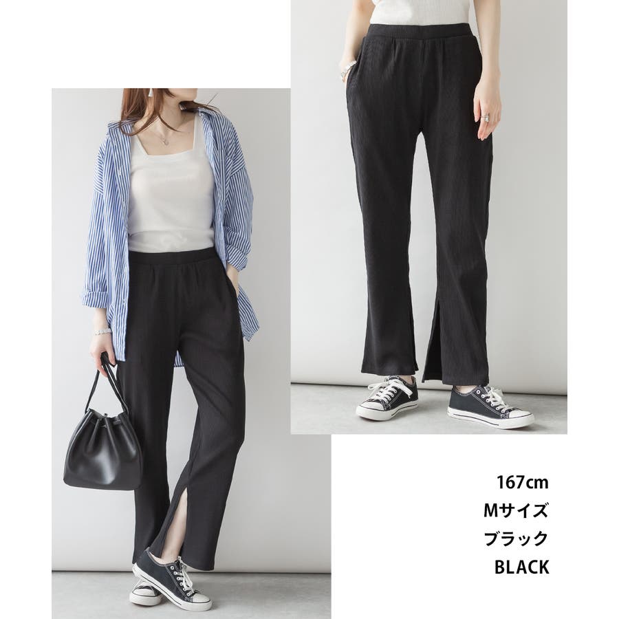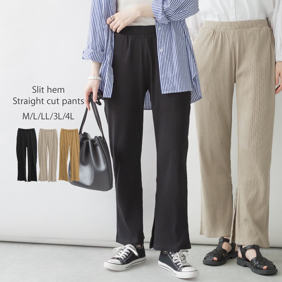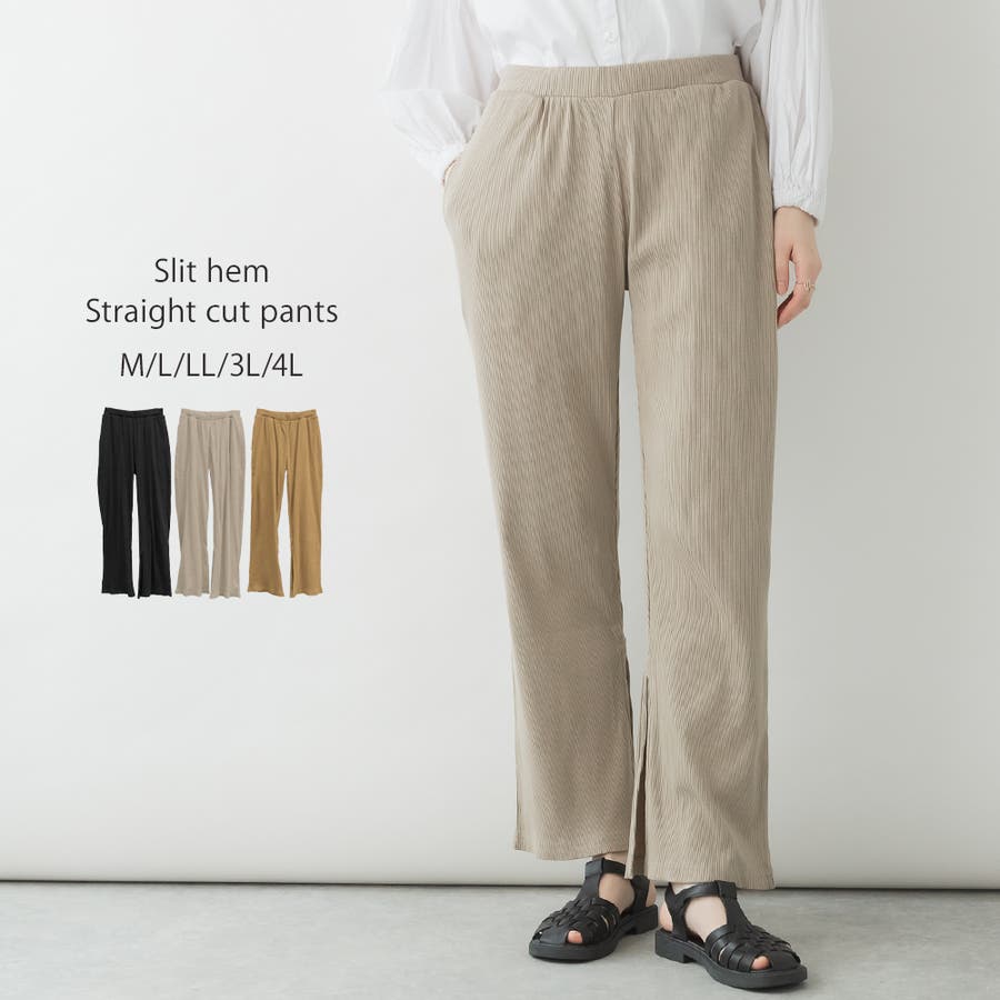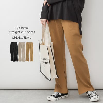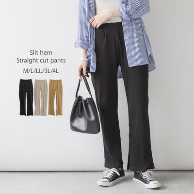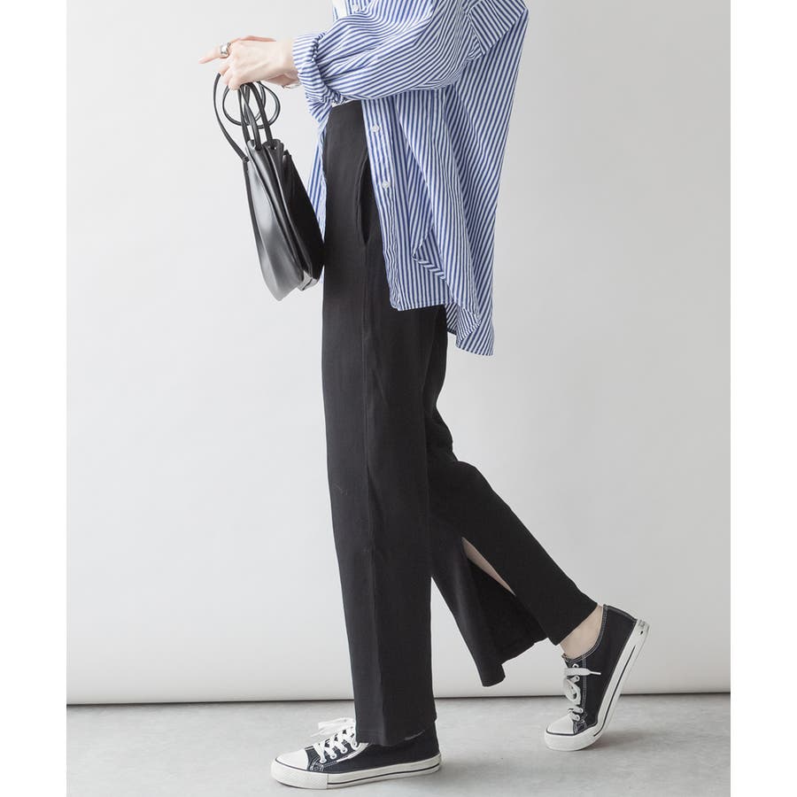 裾スリットストレートカットパンツ