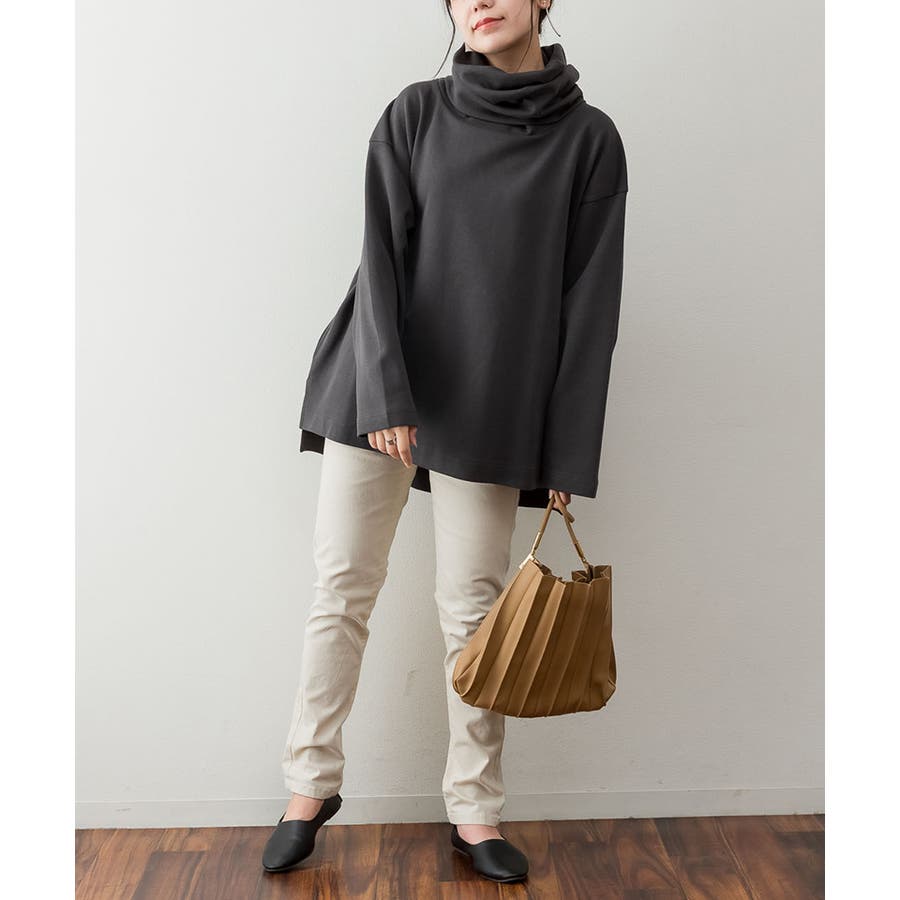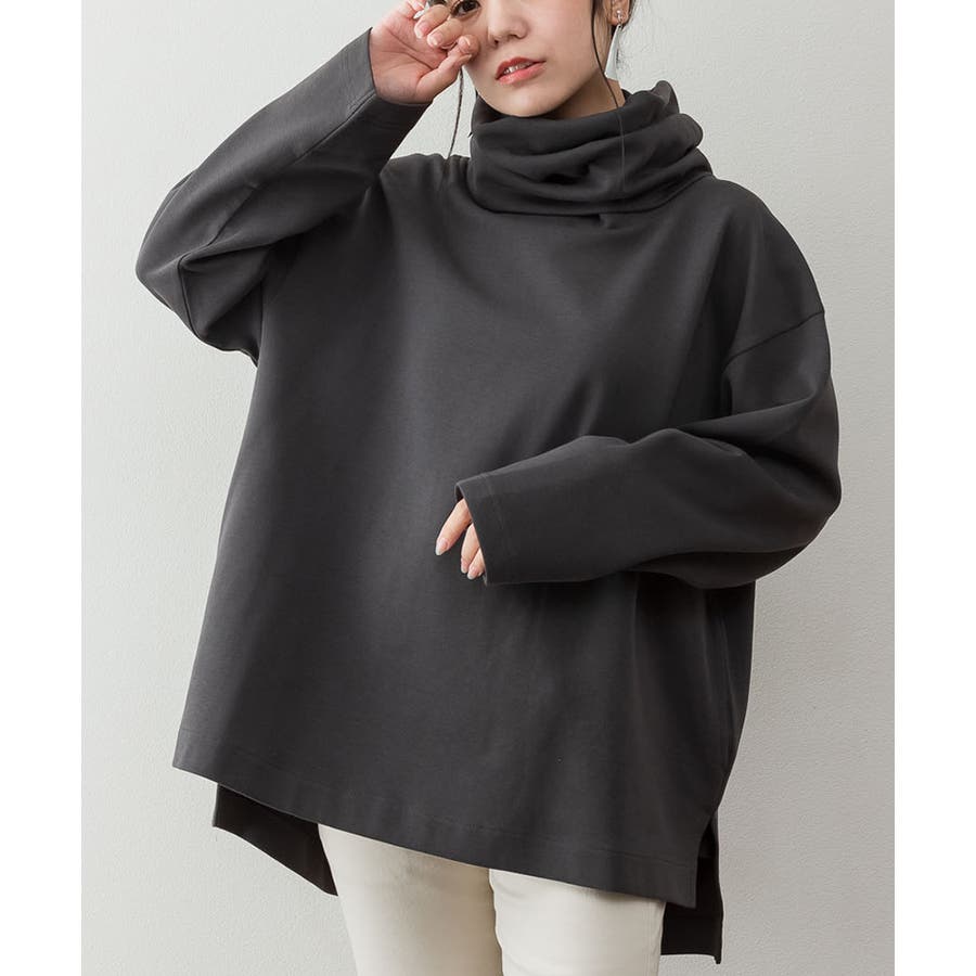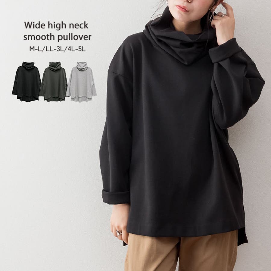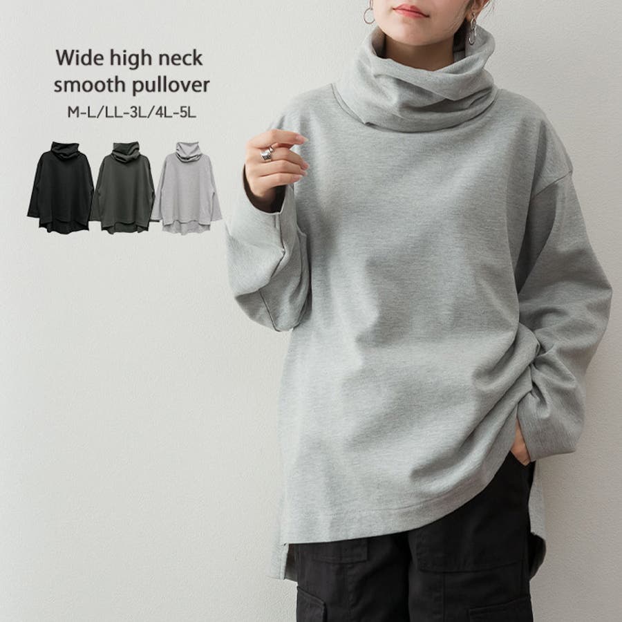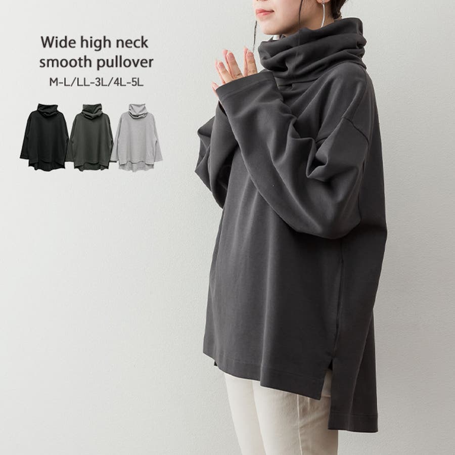 ワイドハイネックスムースプルオーバー