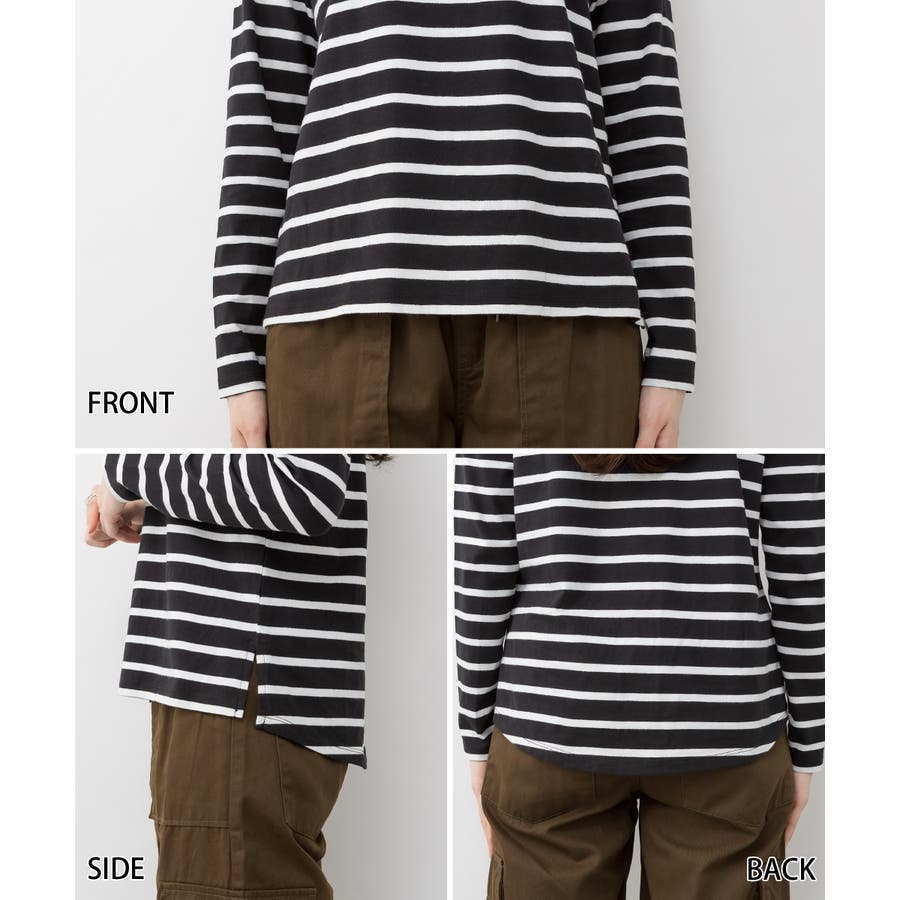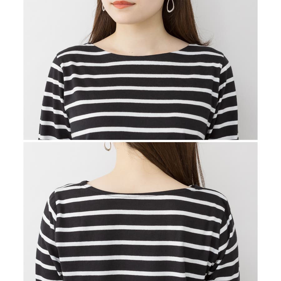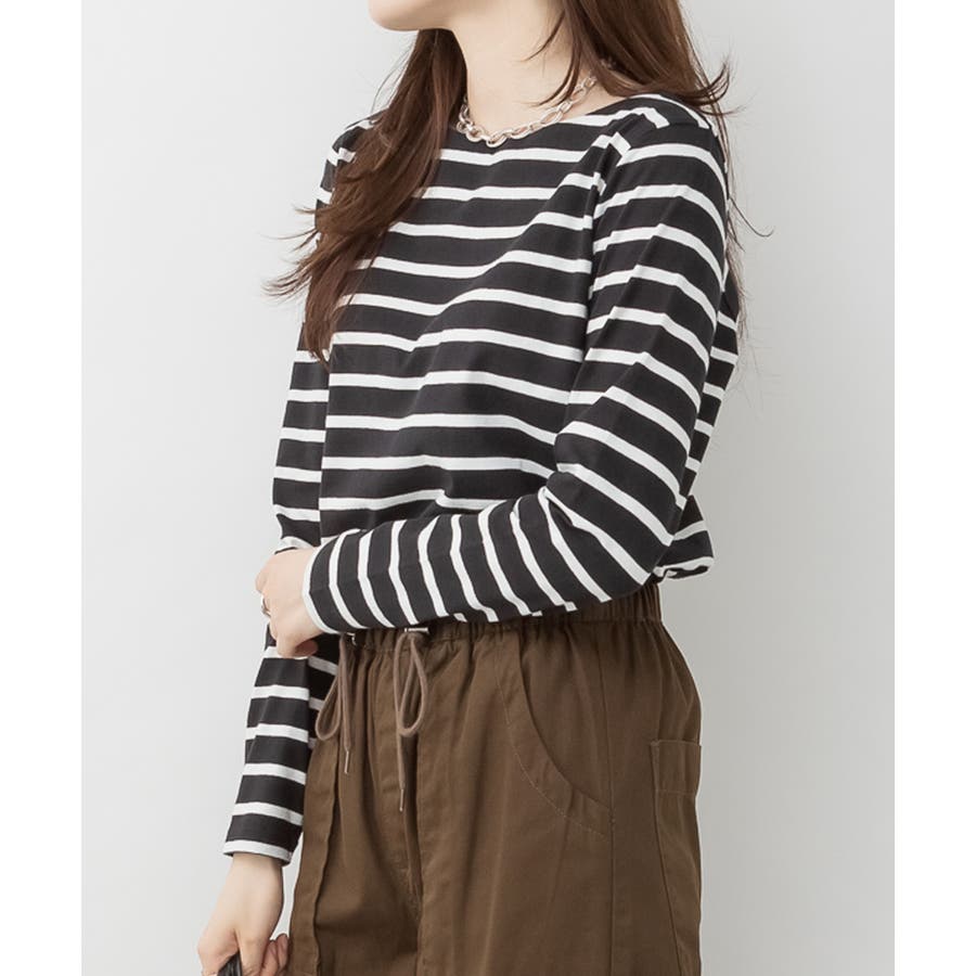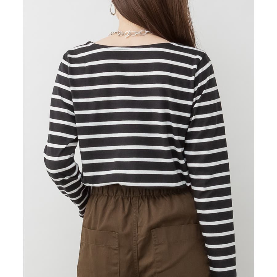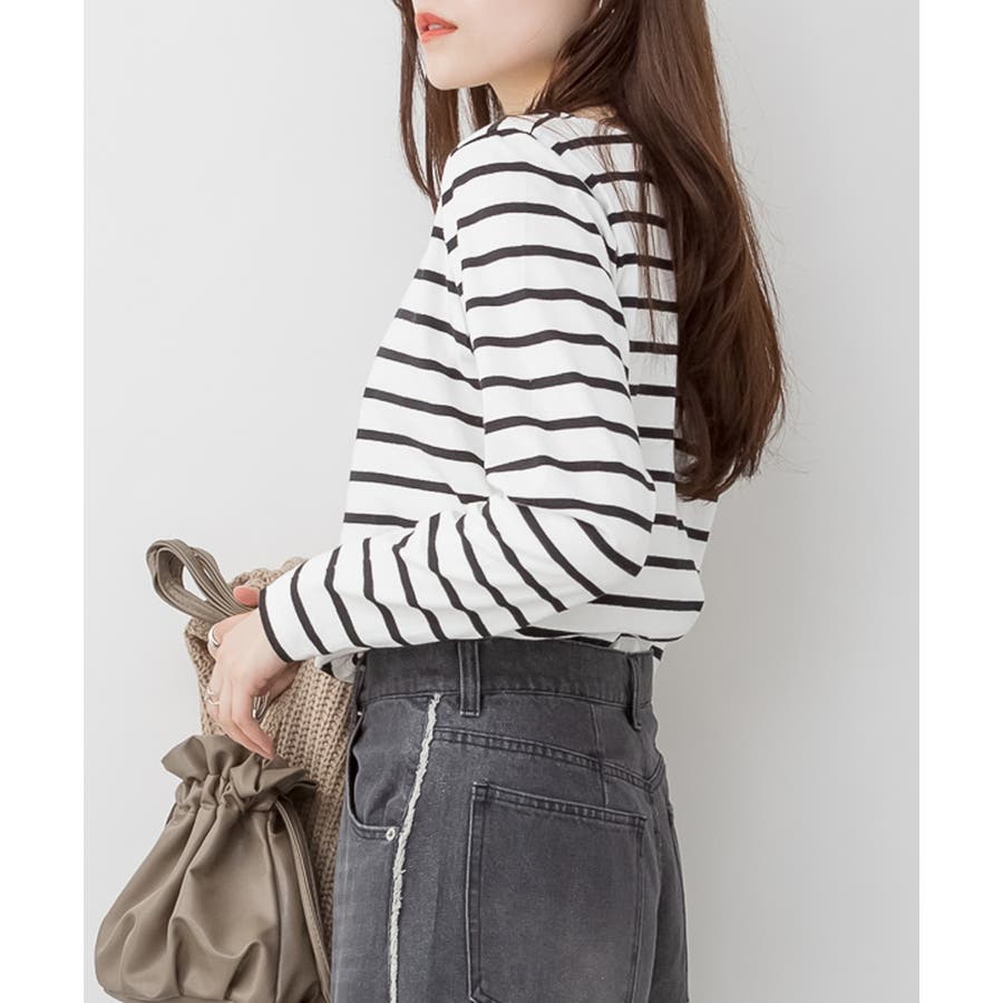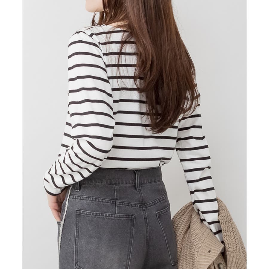 この独特なアクセントがカジュアルなボーダーパターンにフェミニンな魅力を加えます。