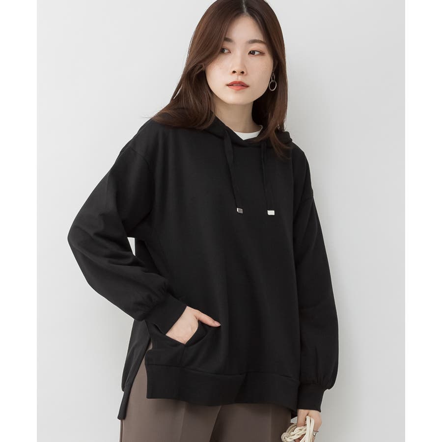 ミニ裏毛脇スリットプルオーバーパーカー