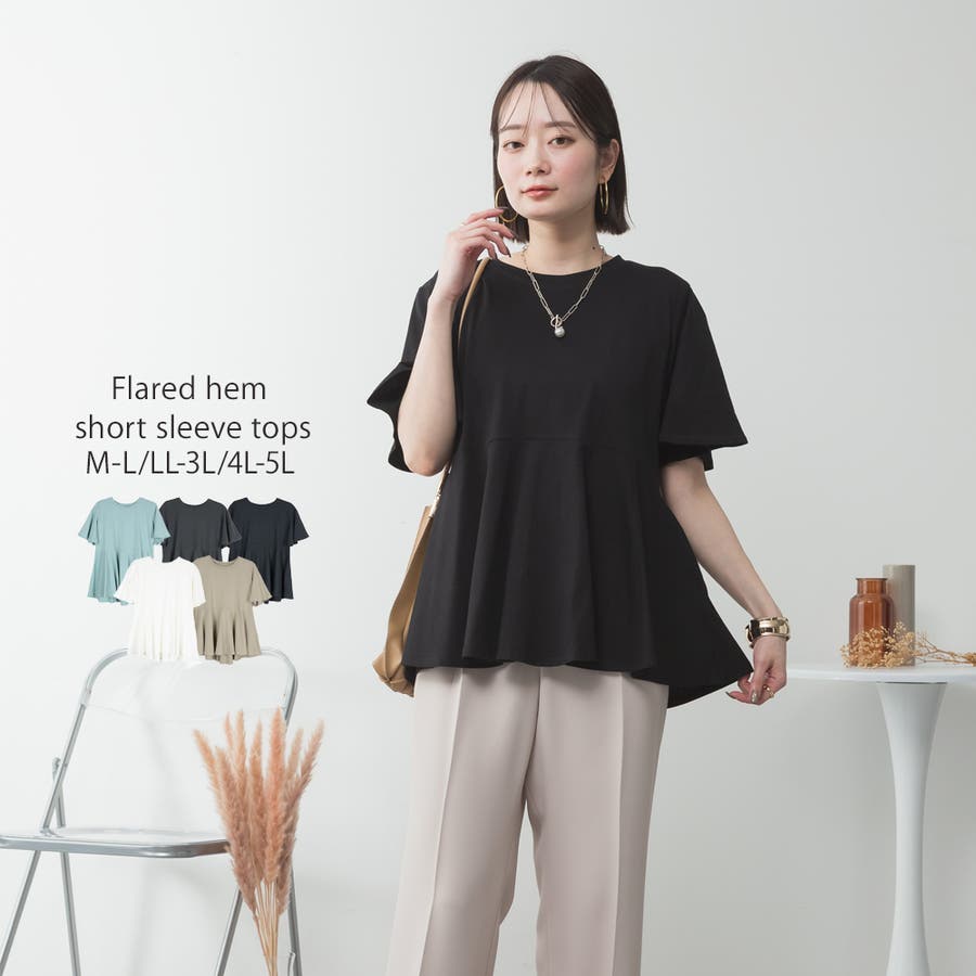 フレアヘムショートスリーブトップス