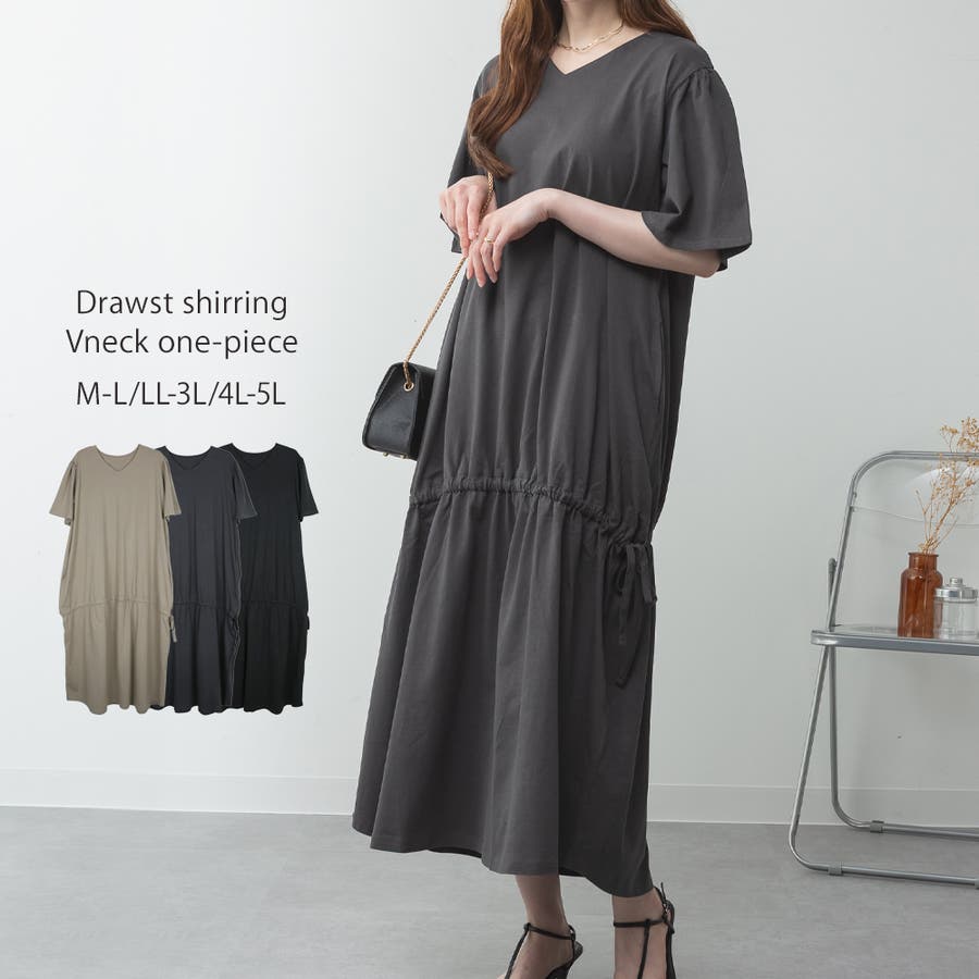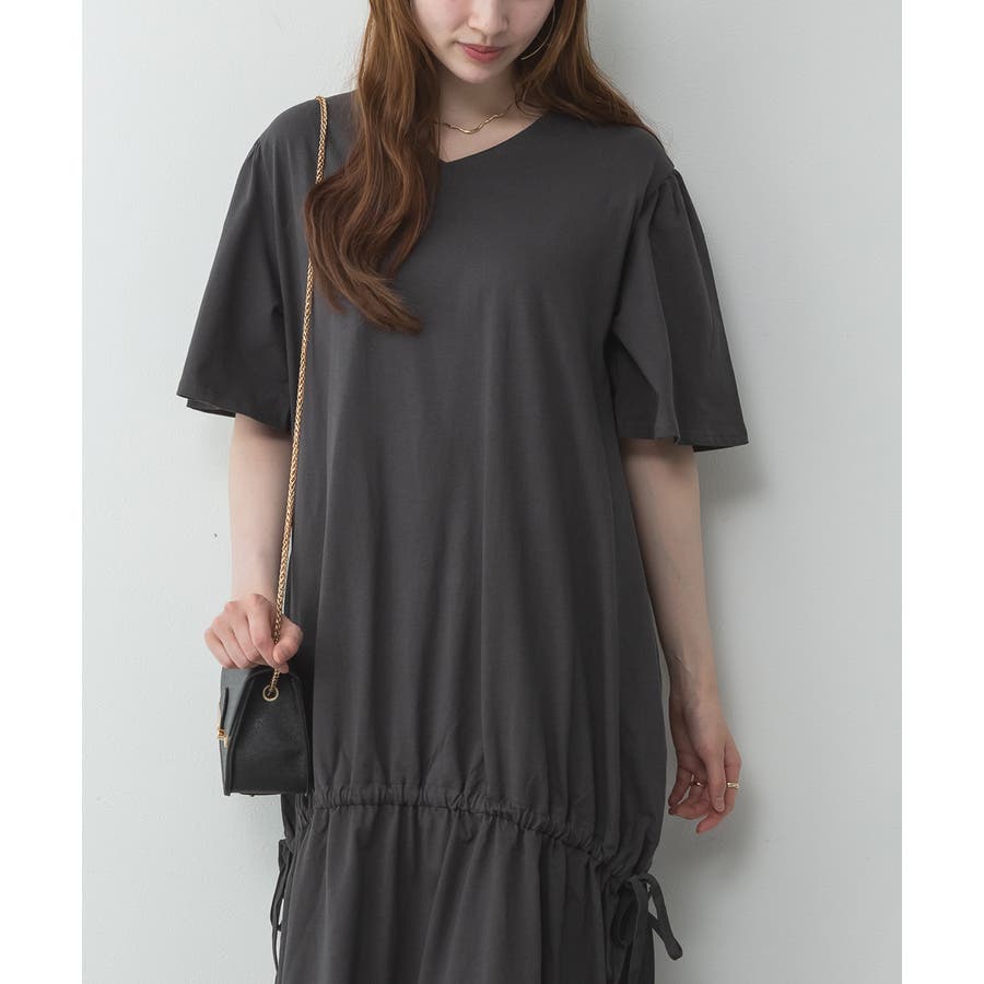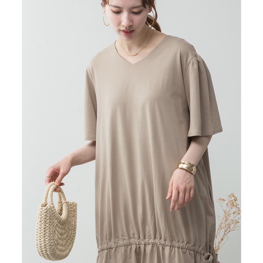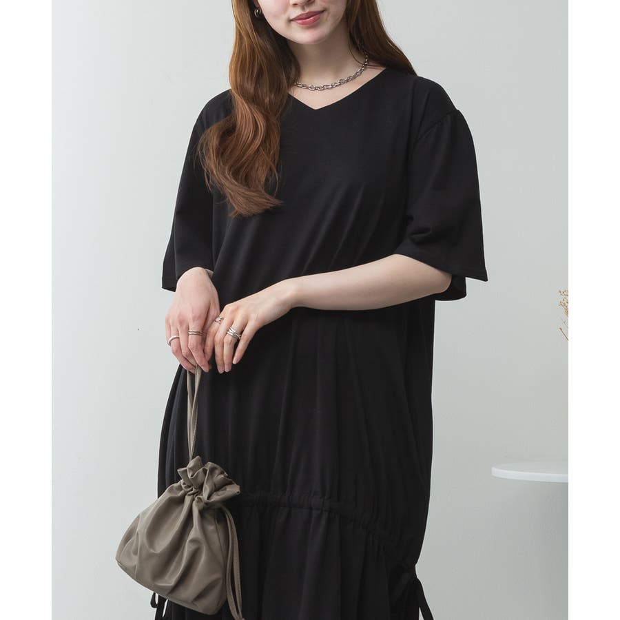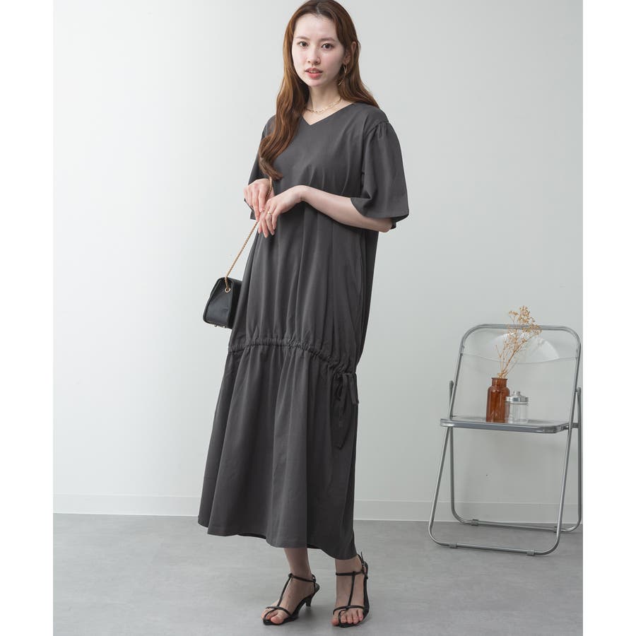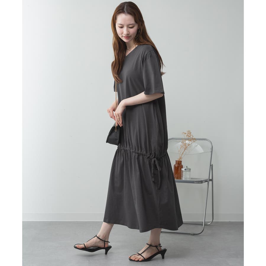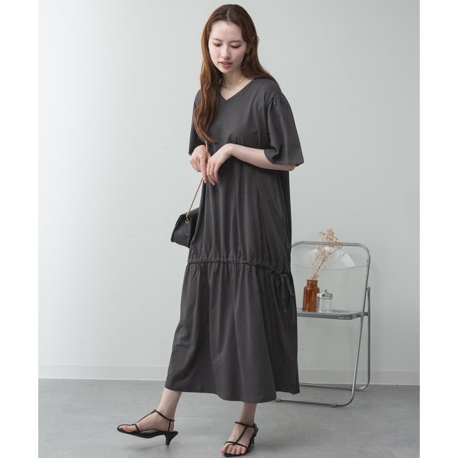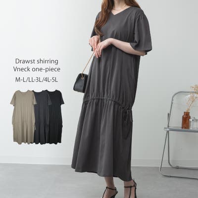 ドロストシャーリングVネックワンピース