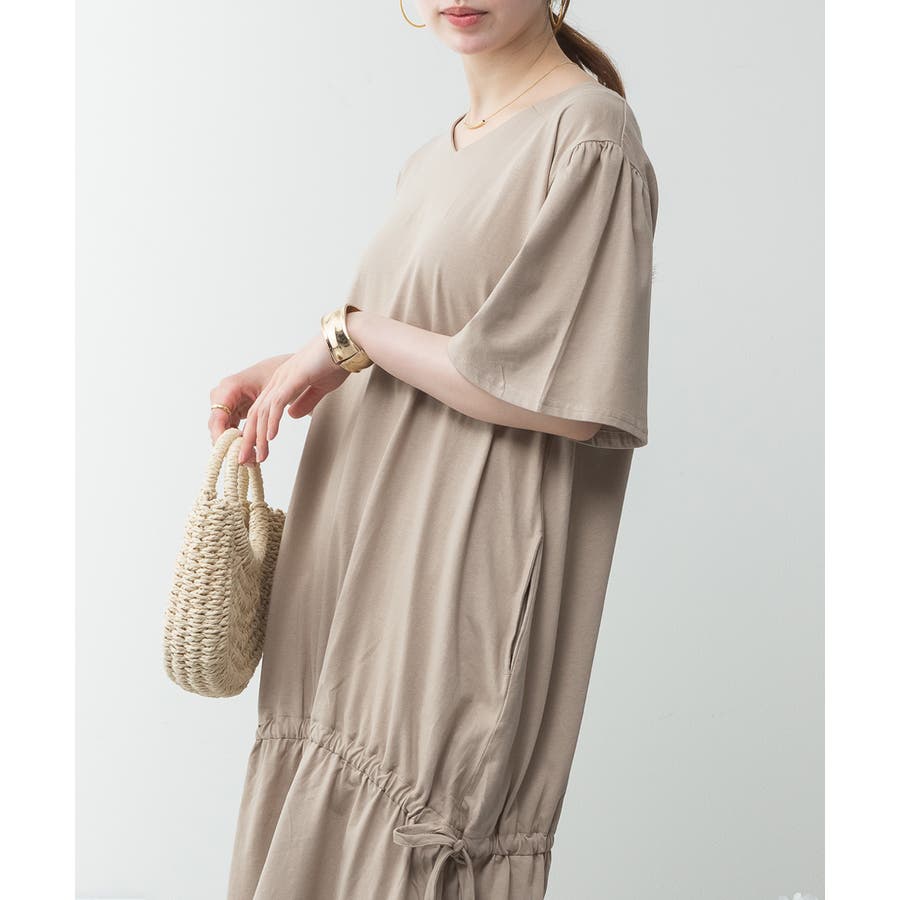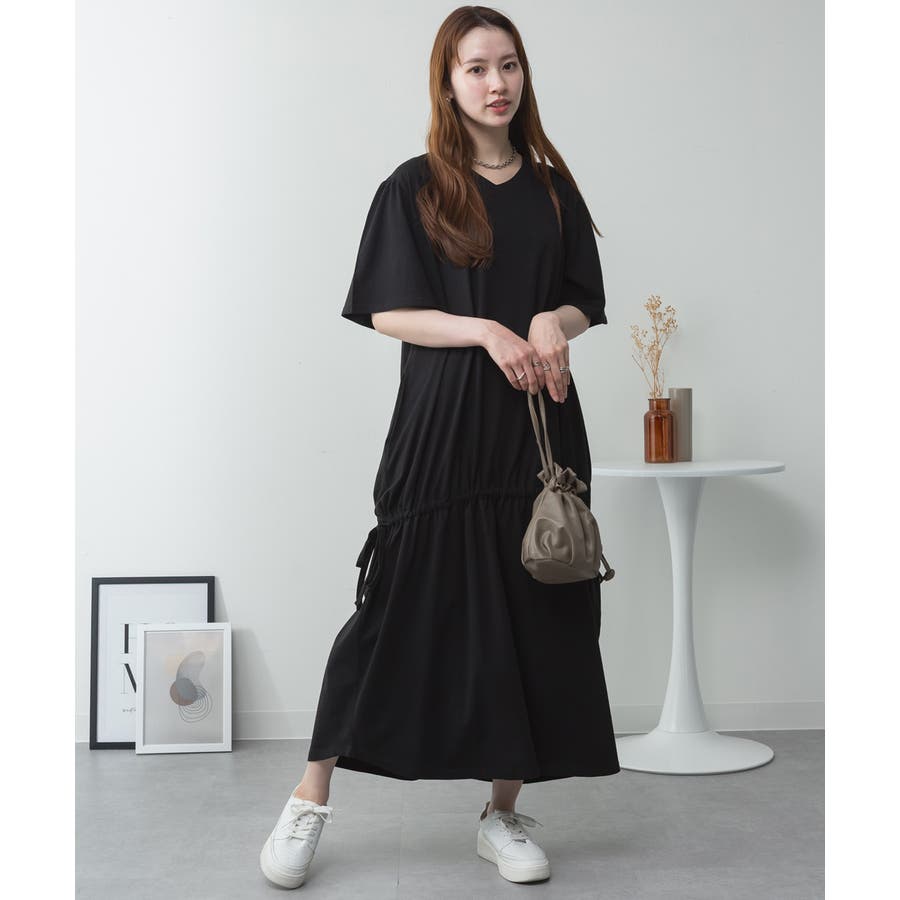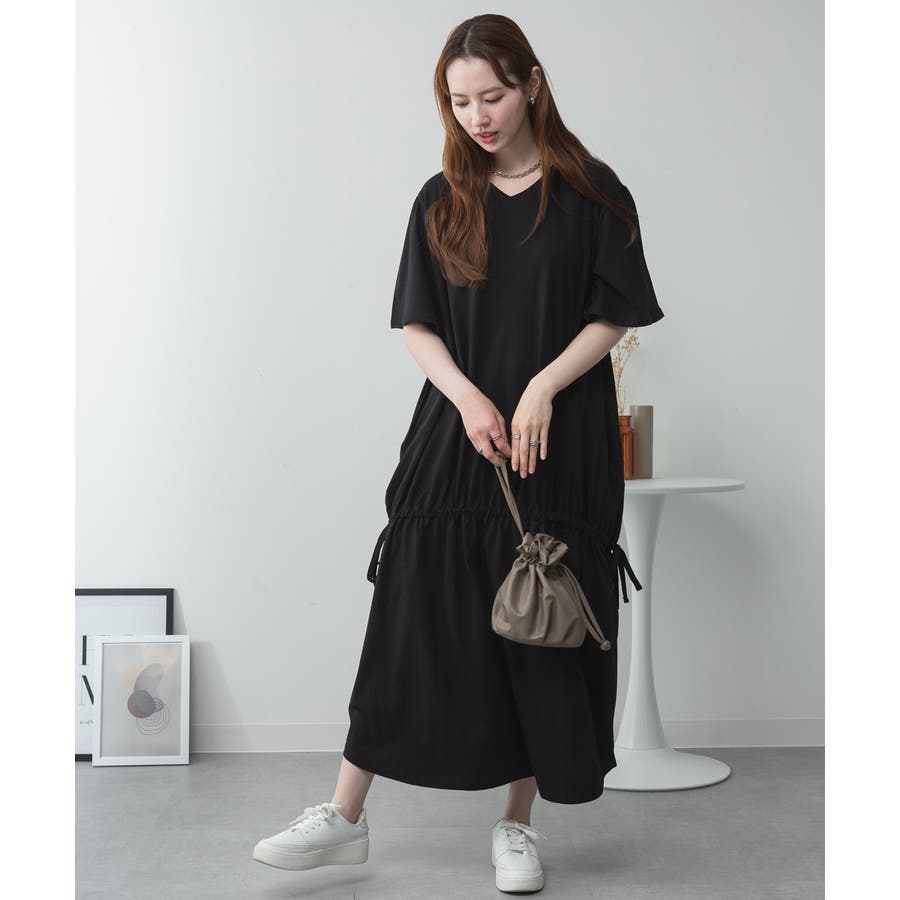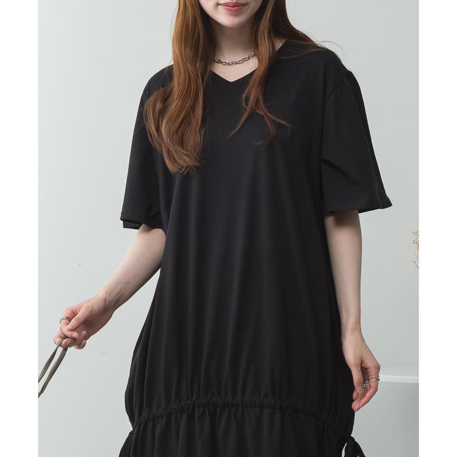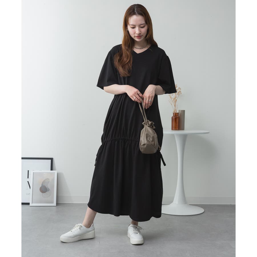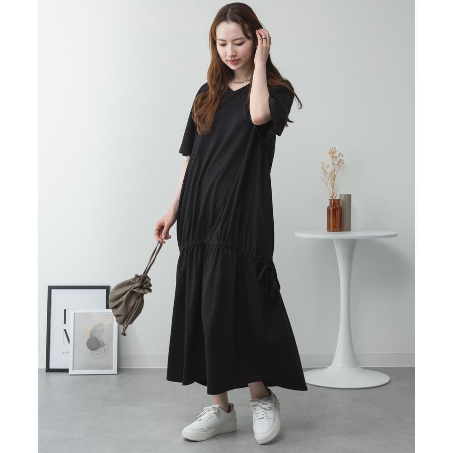 ドロストシャーリングVネックワンピース