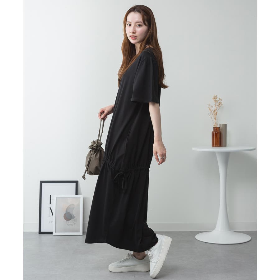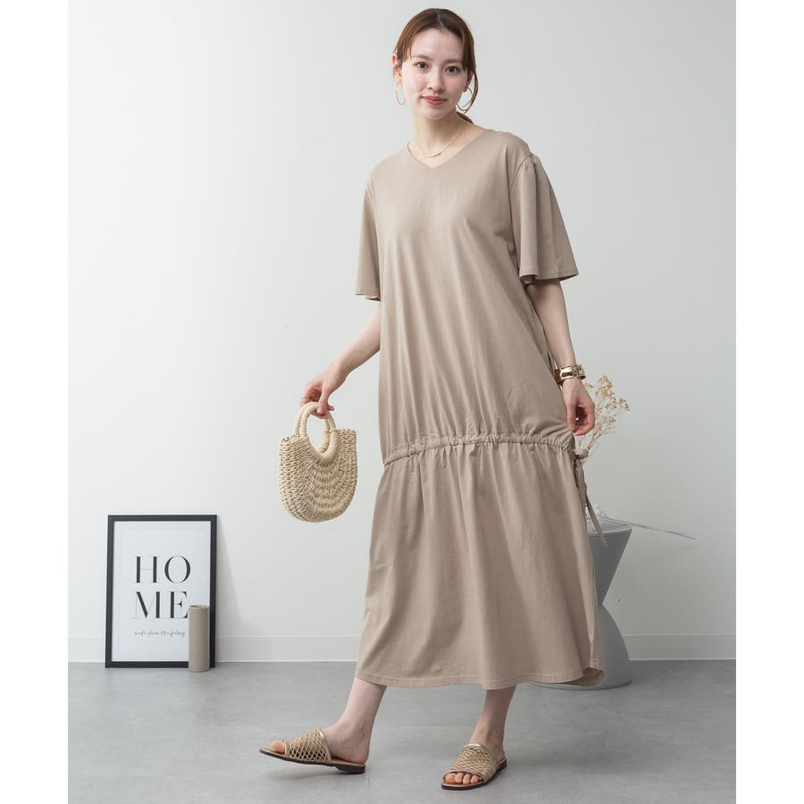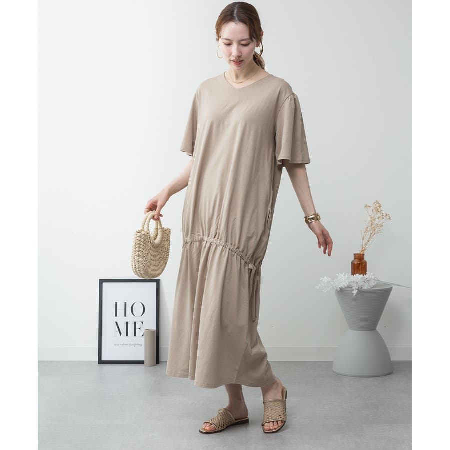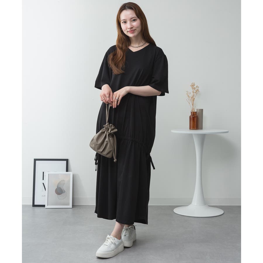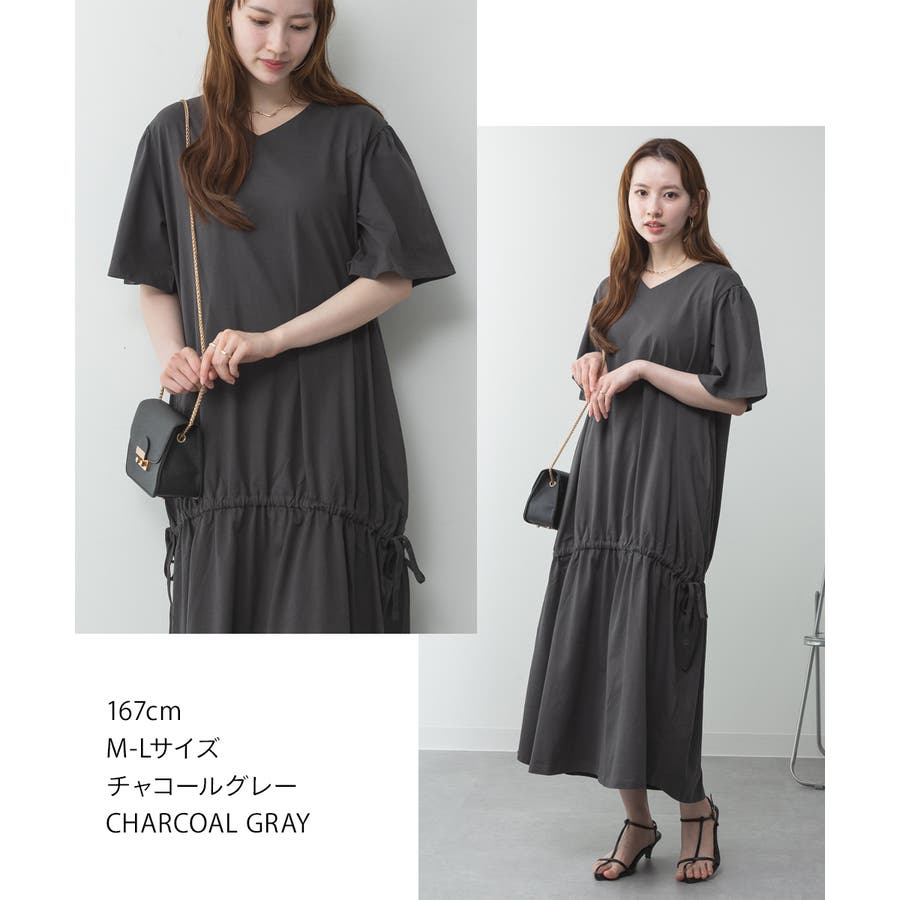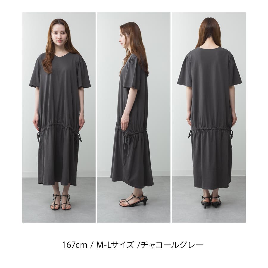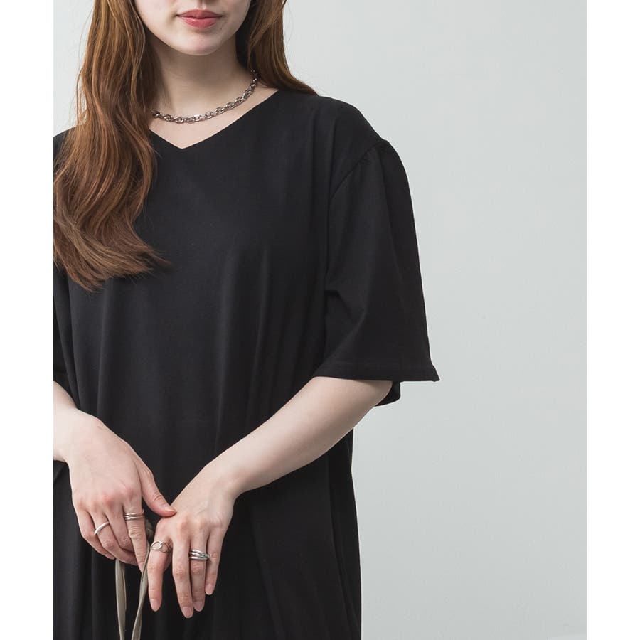 ドロストシャーリングVネックワンピース