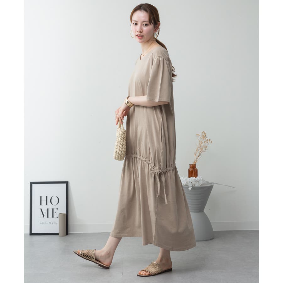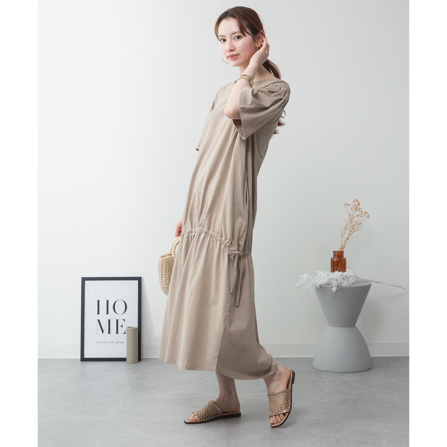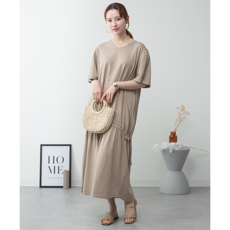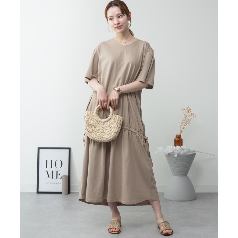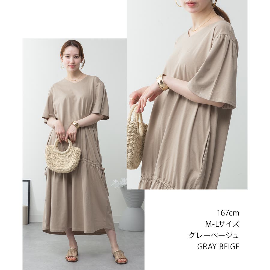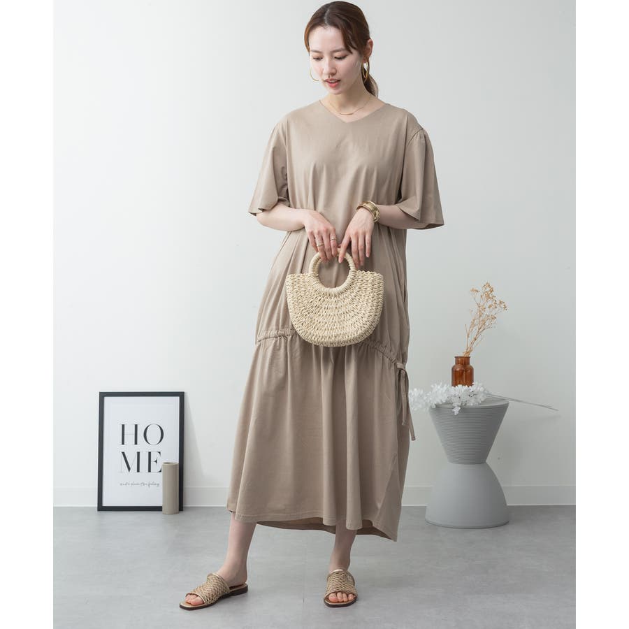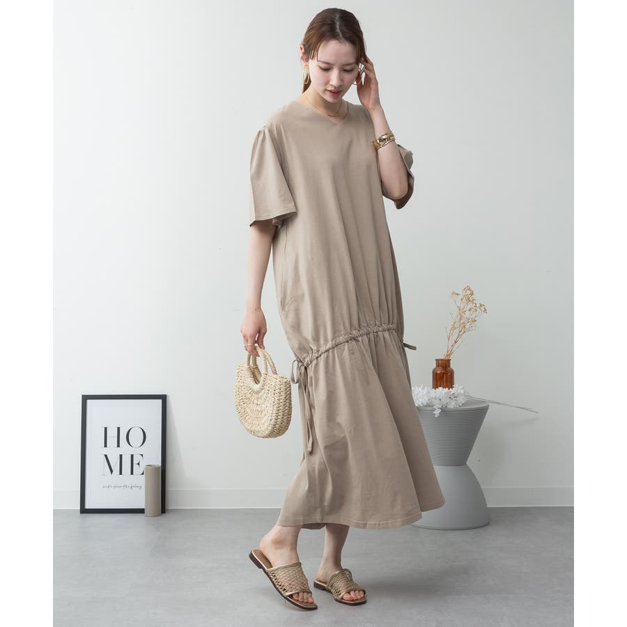 ドロストシャーリングVネックワンピース