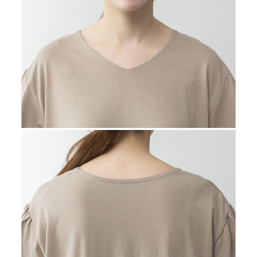 Vネックが顔まわりをすっきりと見せ、1枚でおしゃれに決まるアイテム。