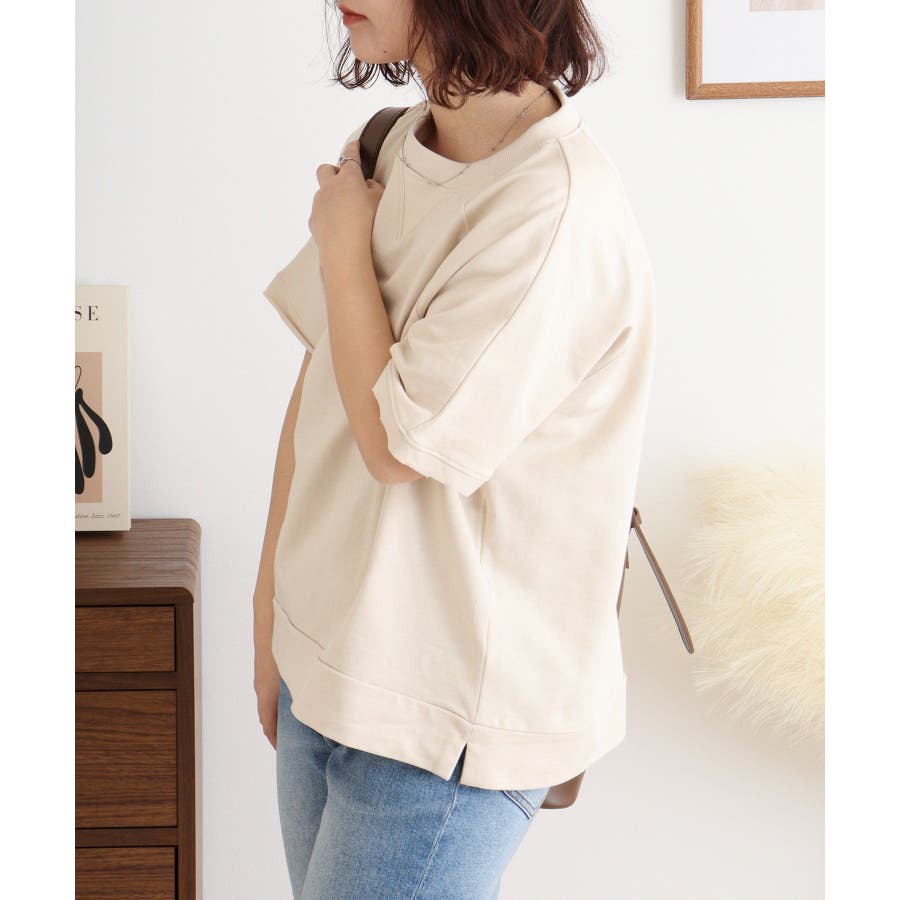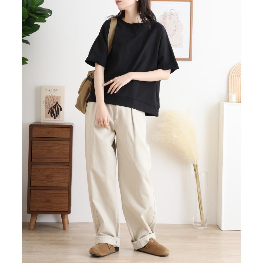 半袖のスタイルが季節の変わり目にも対応し、ミニ裏毛の柔らかさと適度な保温性が、リラックスした着心地を実現します。