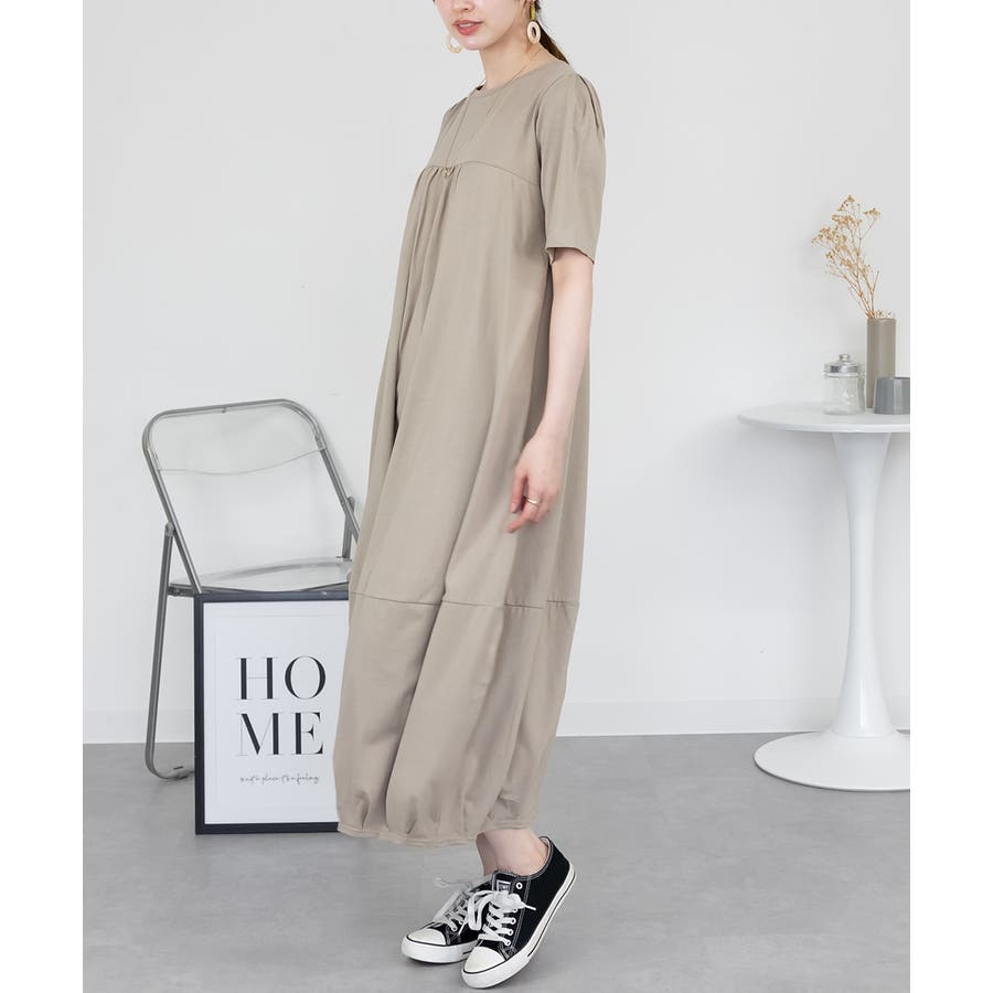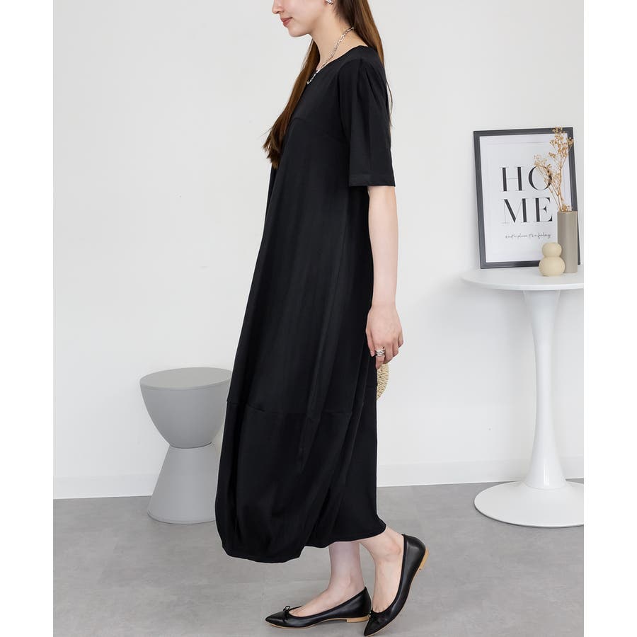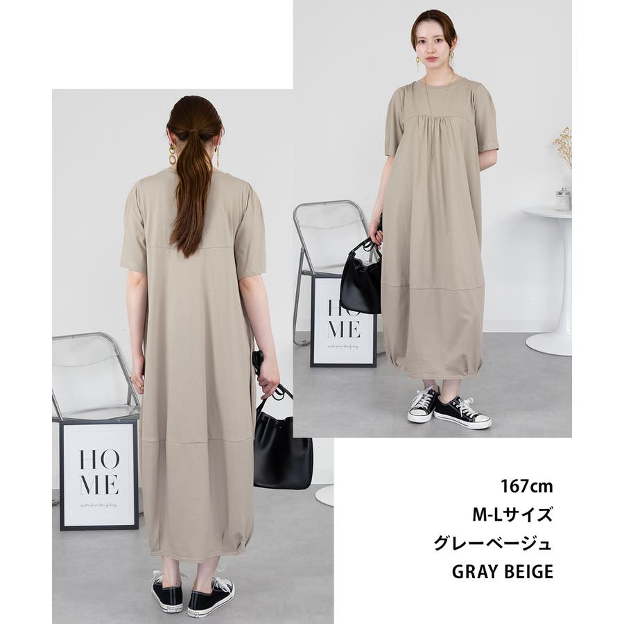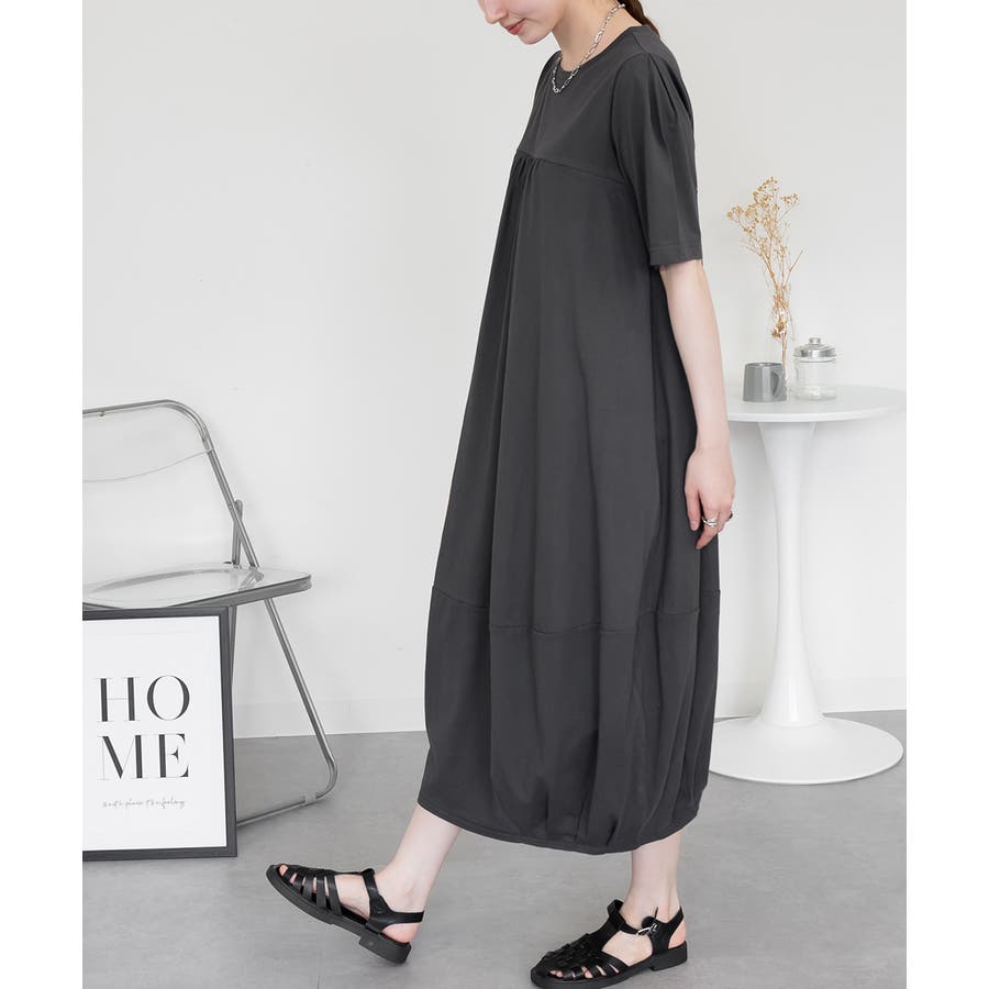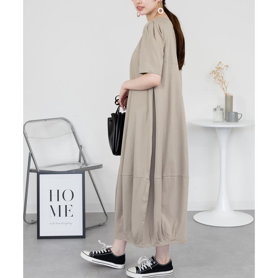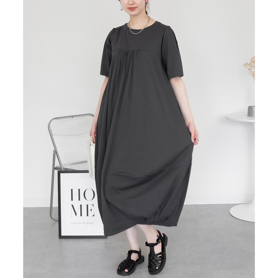 半袖デザインで季節を問わず着回しやすく、カジュアルからきれいめまで幅広いスタイリングに対応する万能なロングワンピースです。