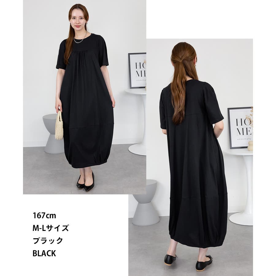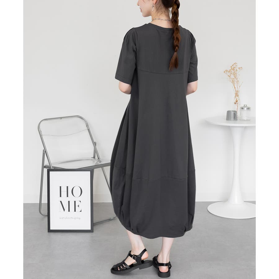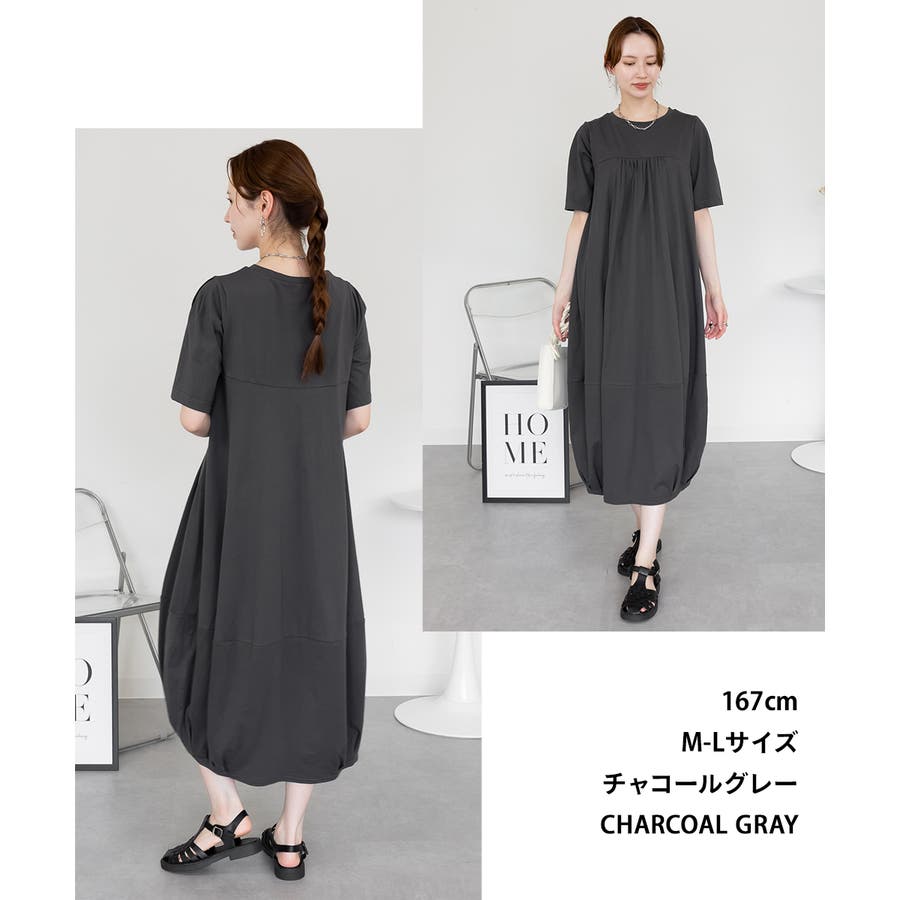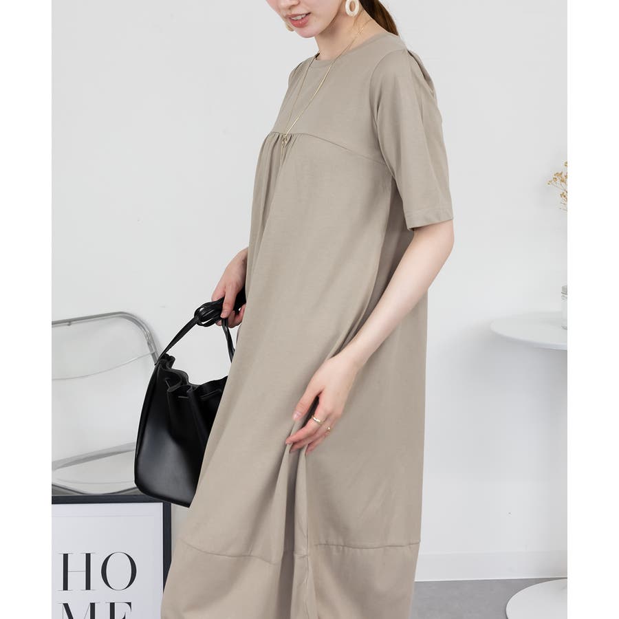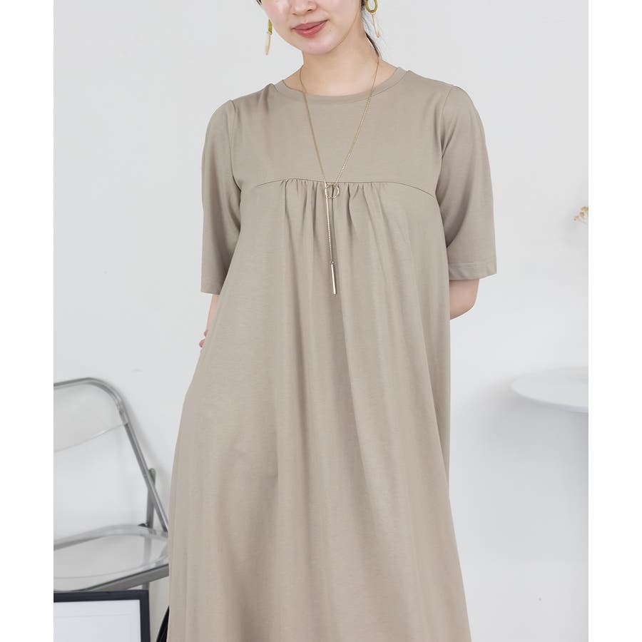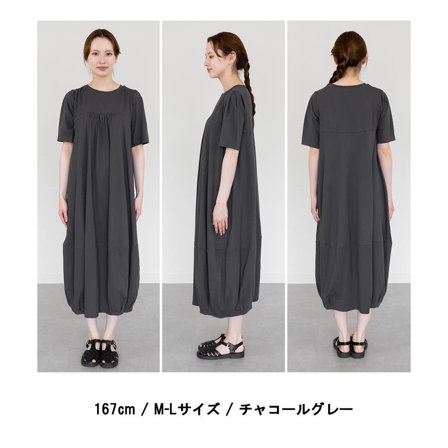 半袖デザインで季節を問わず着回しやすく、カジュアルからきれいめまで幅広いスタイリングに対応する万能なロングワンピースです。