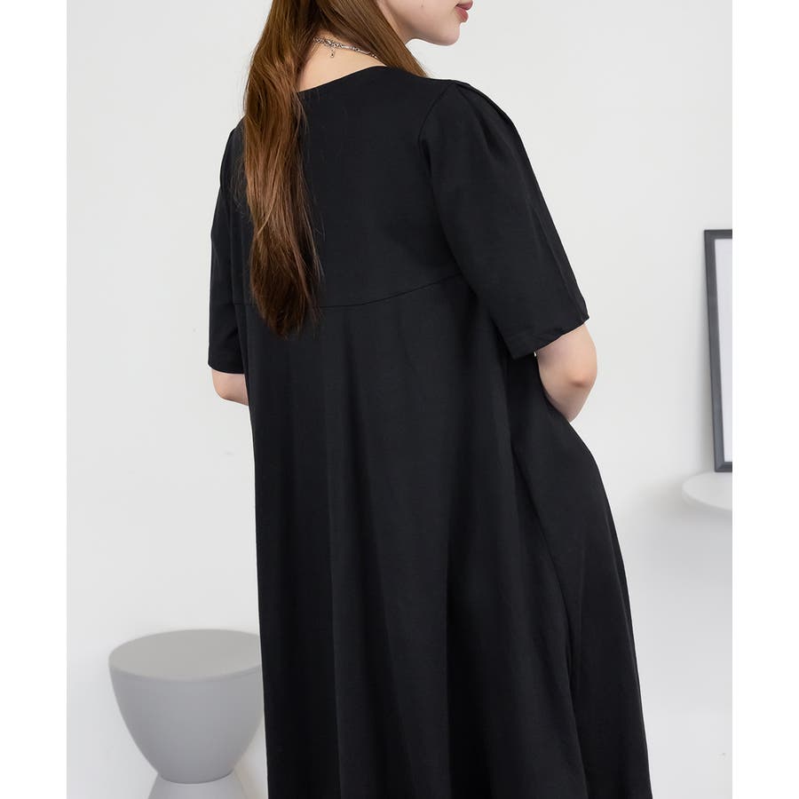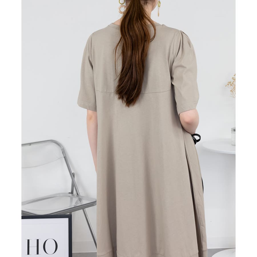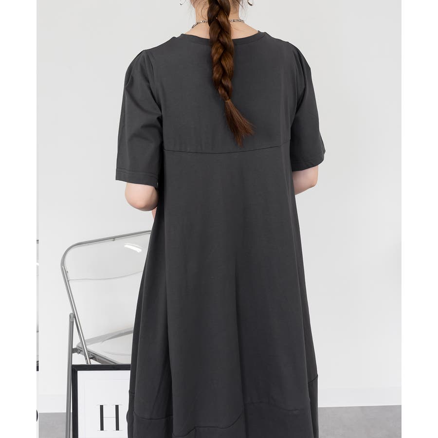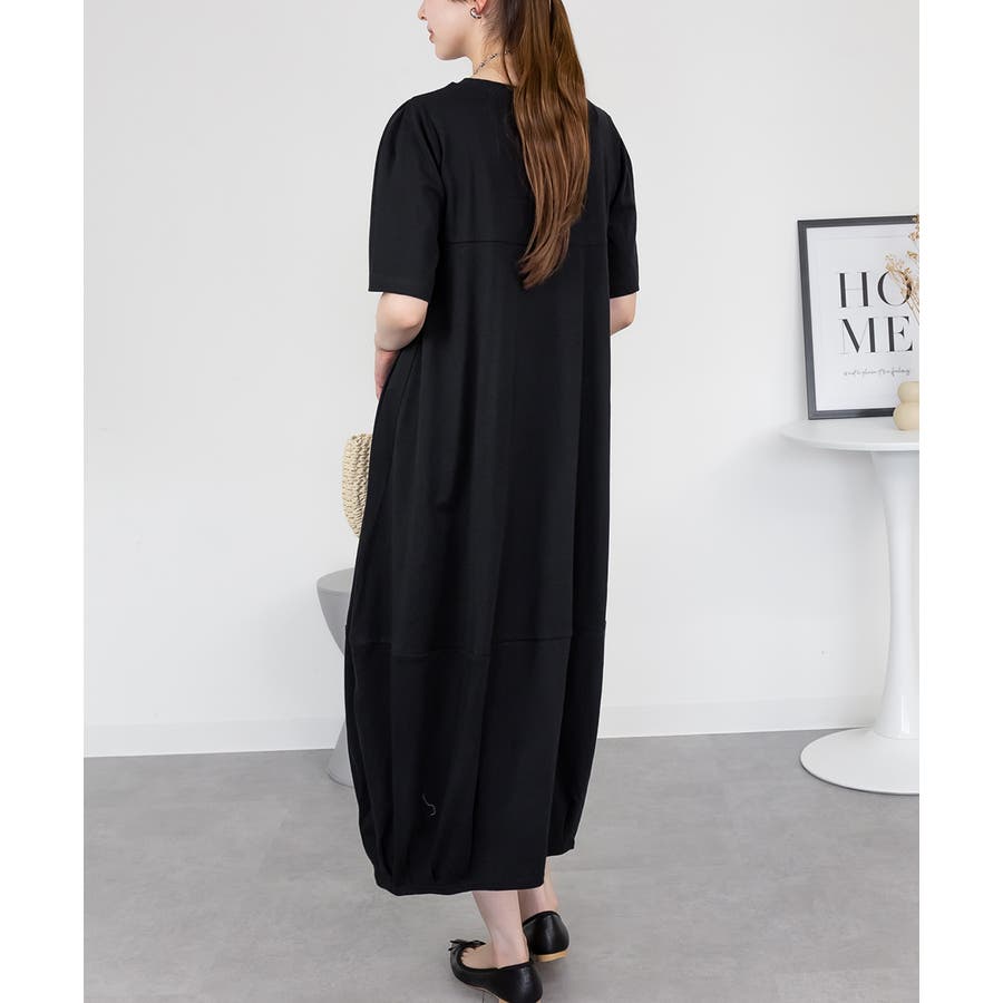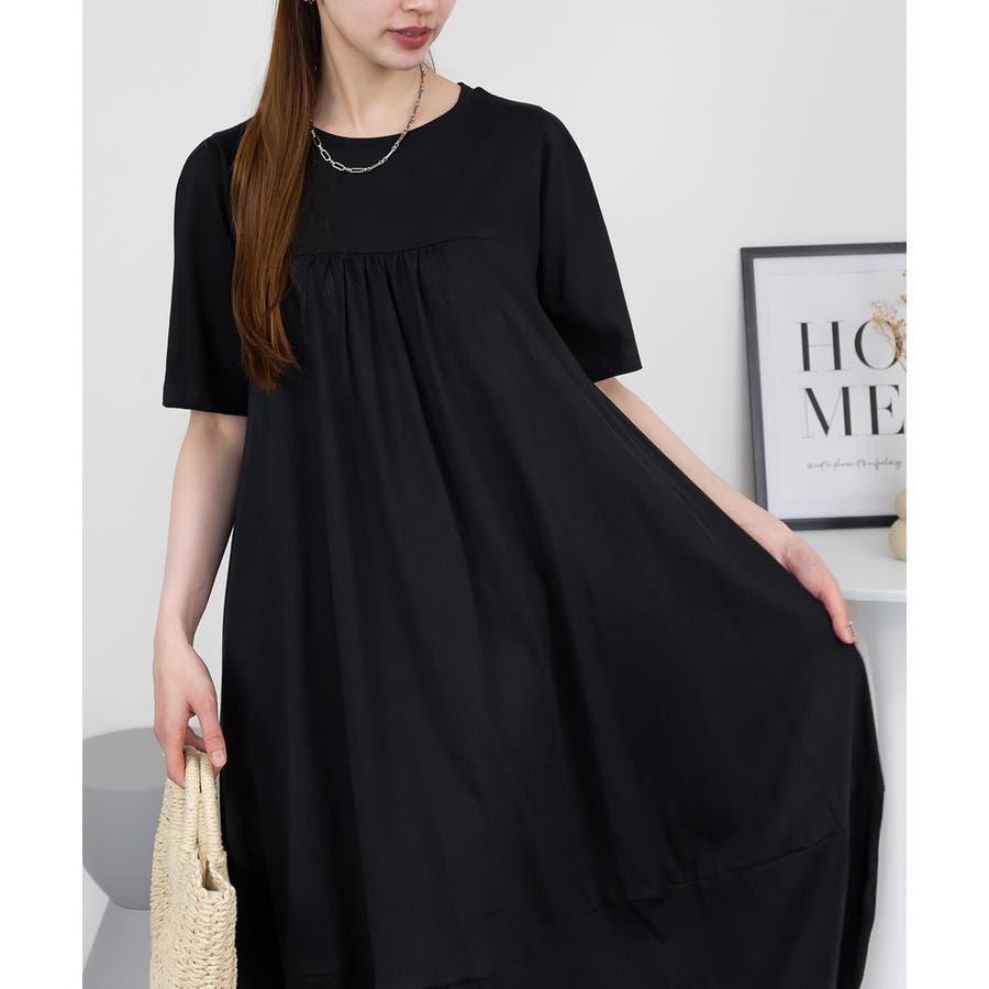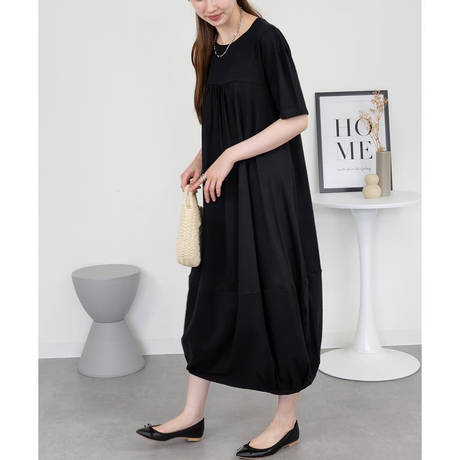半袖デザインで季節を問わず着回しやすく、カジュアルからきれいめまで幅広いスタイリングに対応する万能なロングワンピースです。
