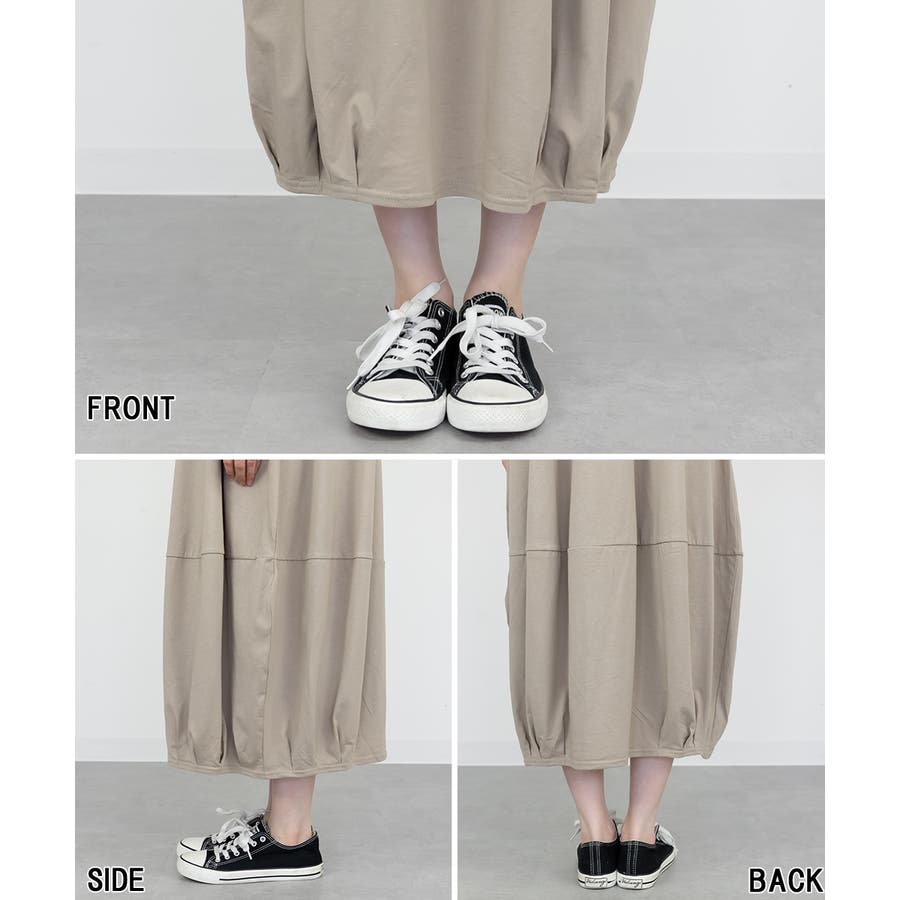 バルーンシルエットが女性らしい動きを生み出し、シンプルながらも存在感のあるデザインに仕上がっています。