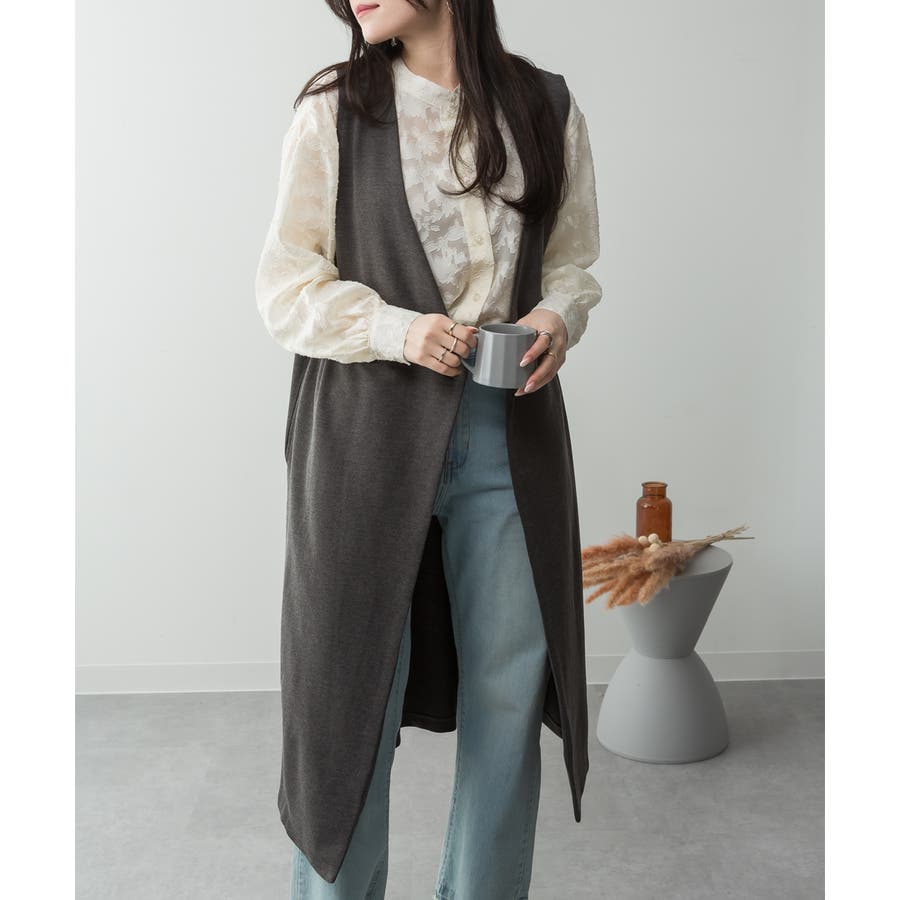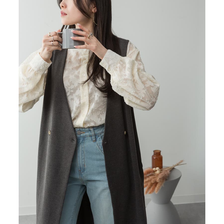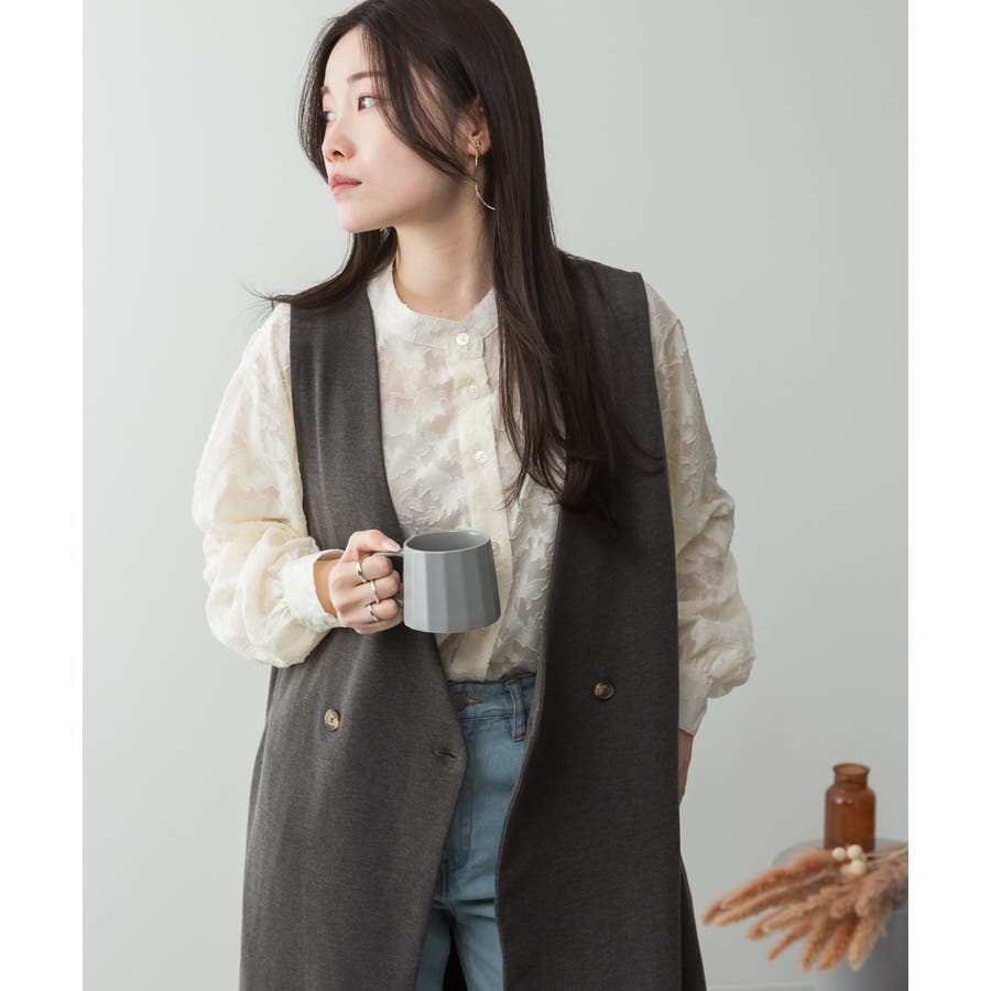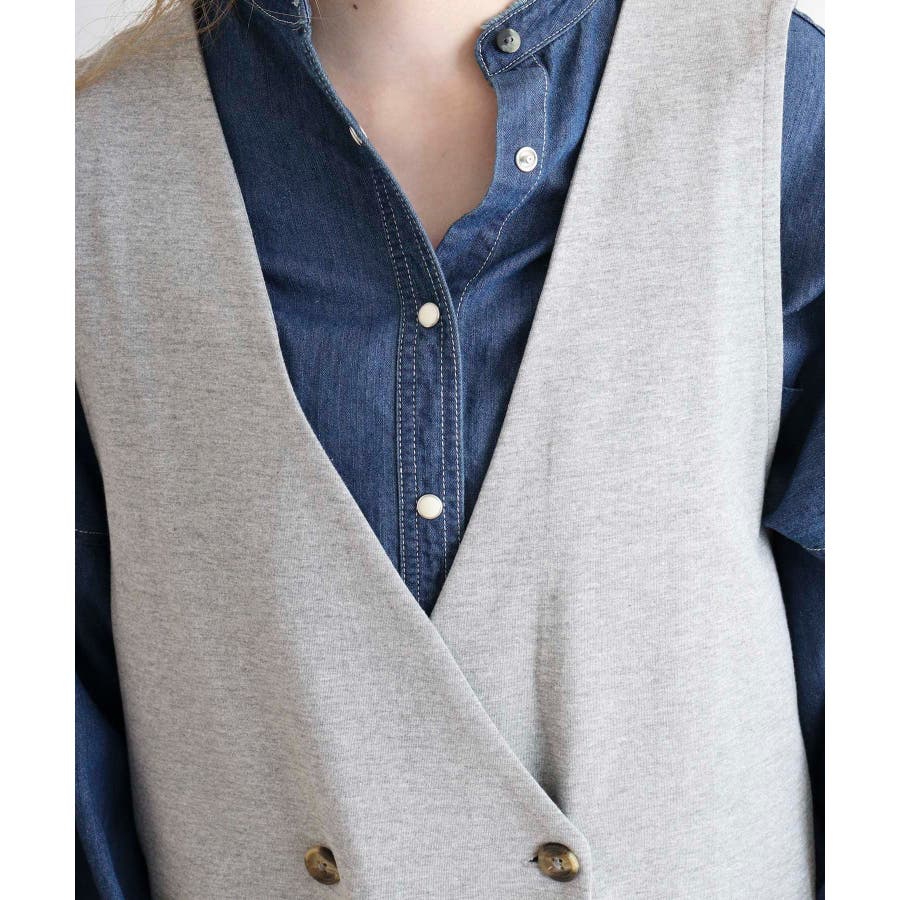 ノーカラーのデザインが、シンプルでありながらも洗練された印象を与え、リラックスしたシルエットが快適な着心地を提供します。