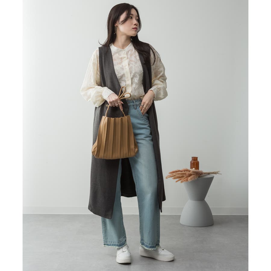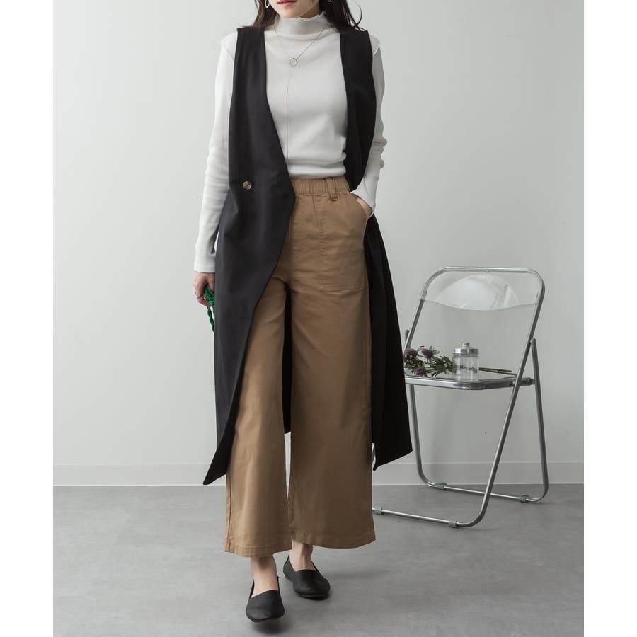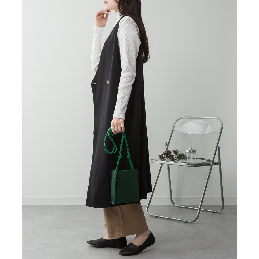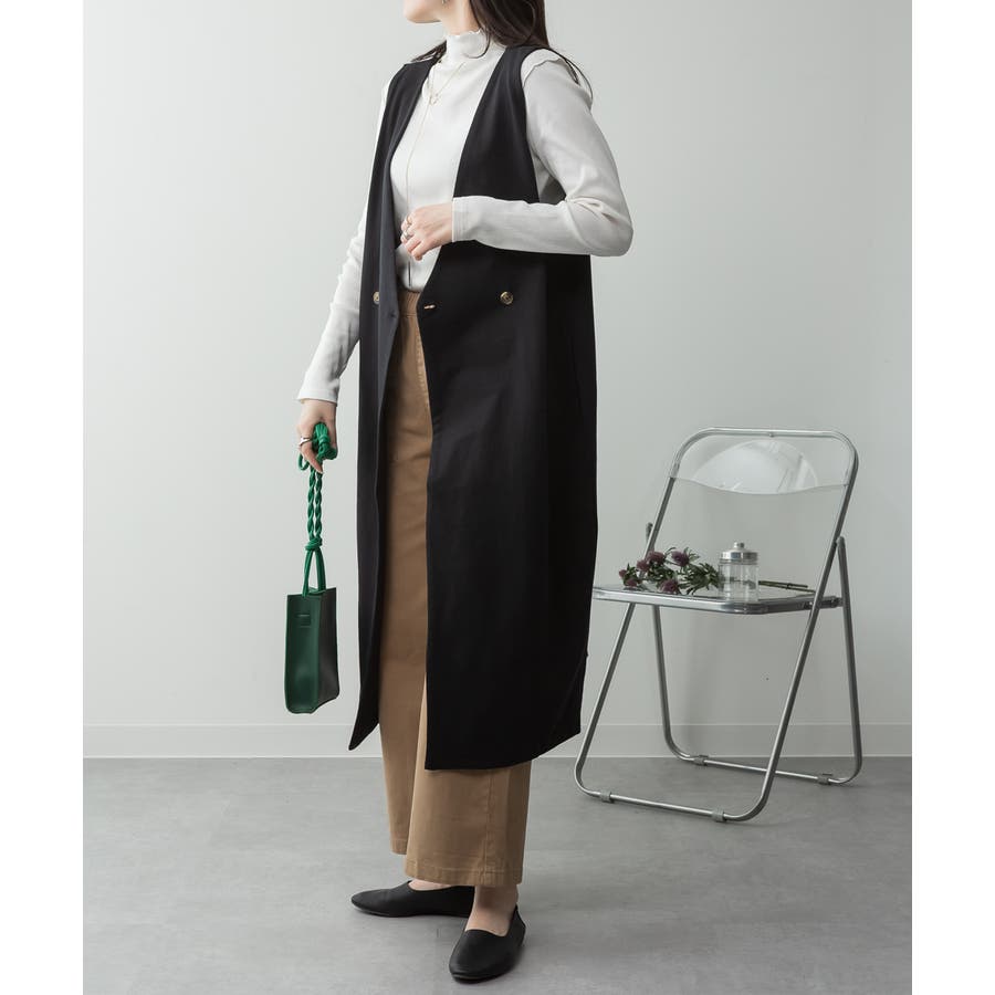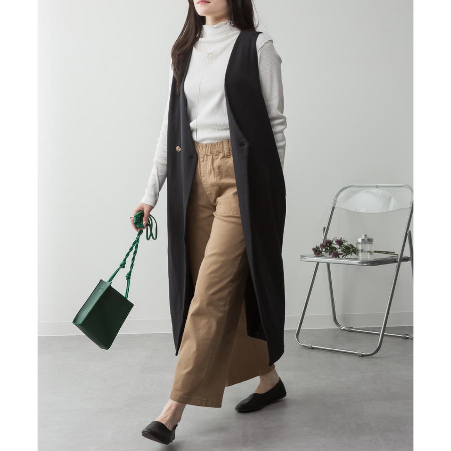 モックネックニットやラッフルブラウス、リブニット、と合わせたフェミニンスタイルにも◎