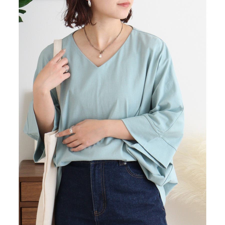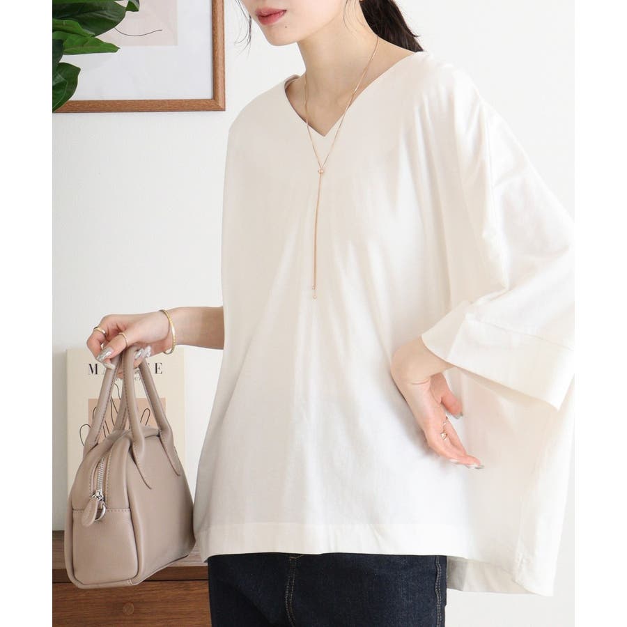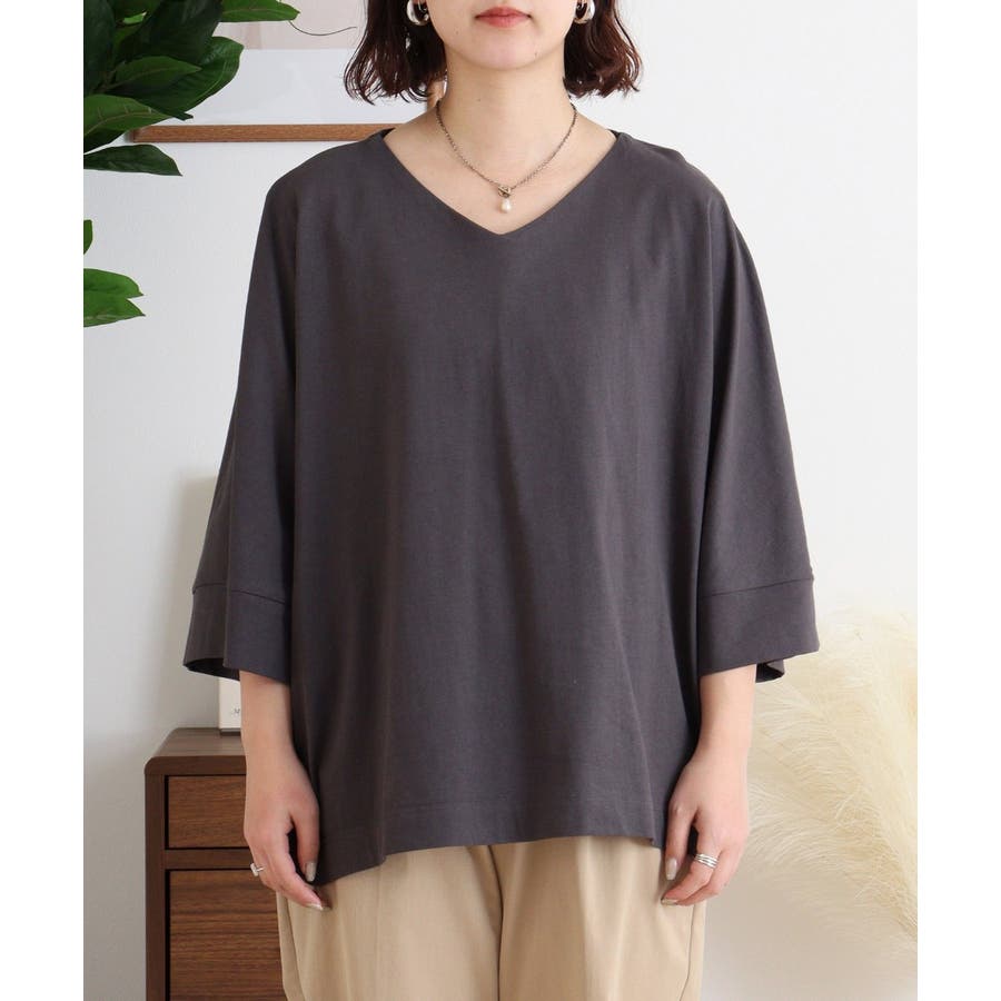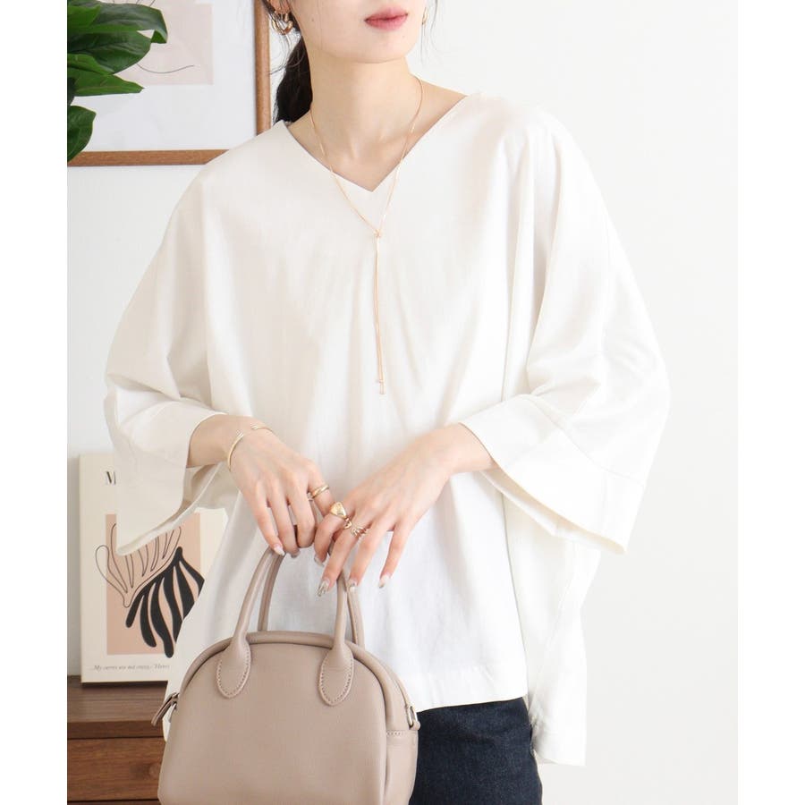 Vネックデザインがデコルテラインを美しく見せ、7分袖のスタイルが季節の変わり目にもぴったりです。