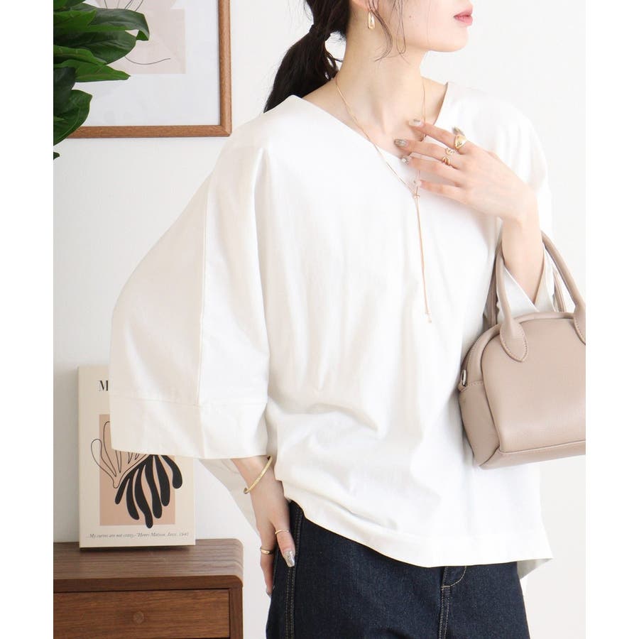 ドルマンシルエットがリラックス感と動きやすさを加え、シンプルでありながらもトレンド感のある一枚です。