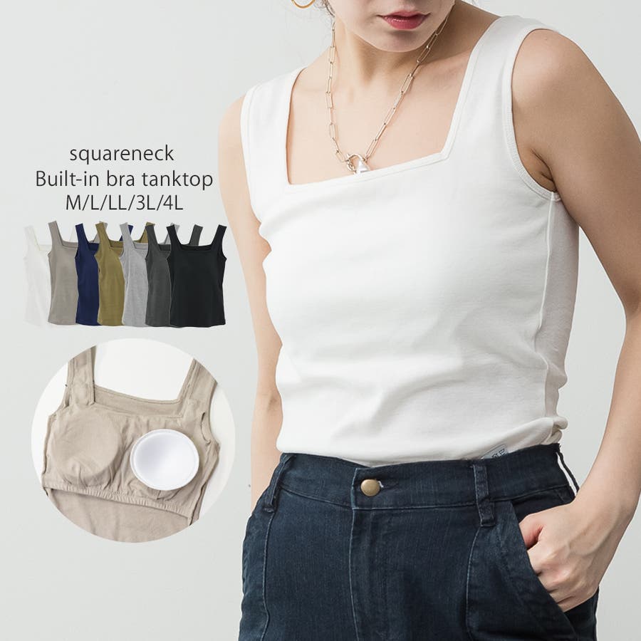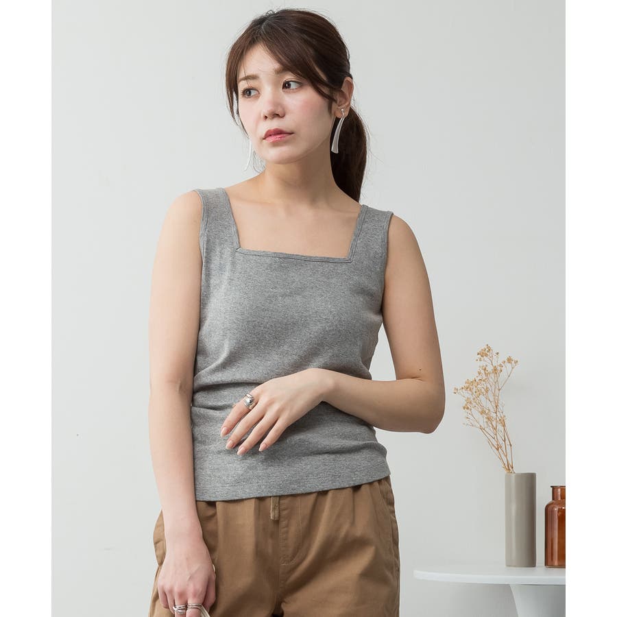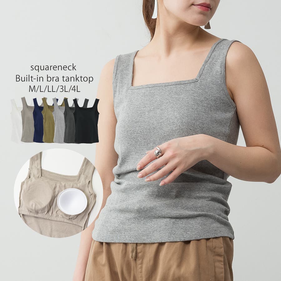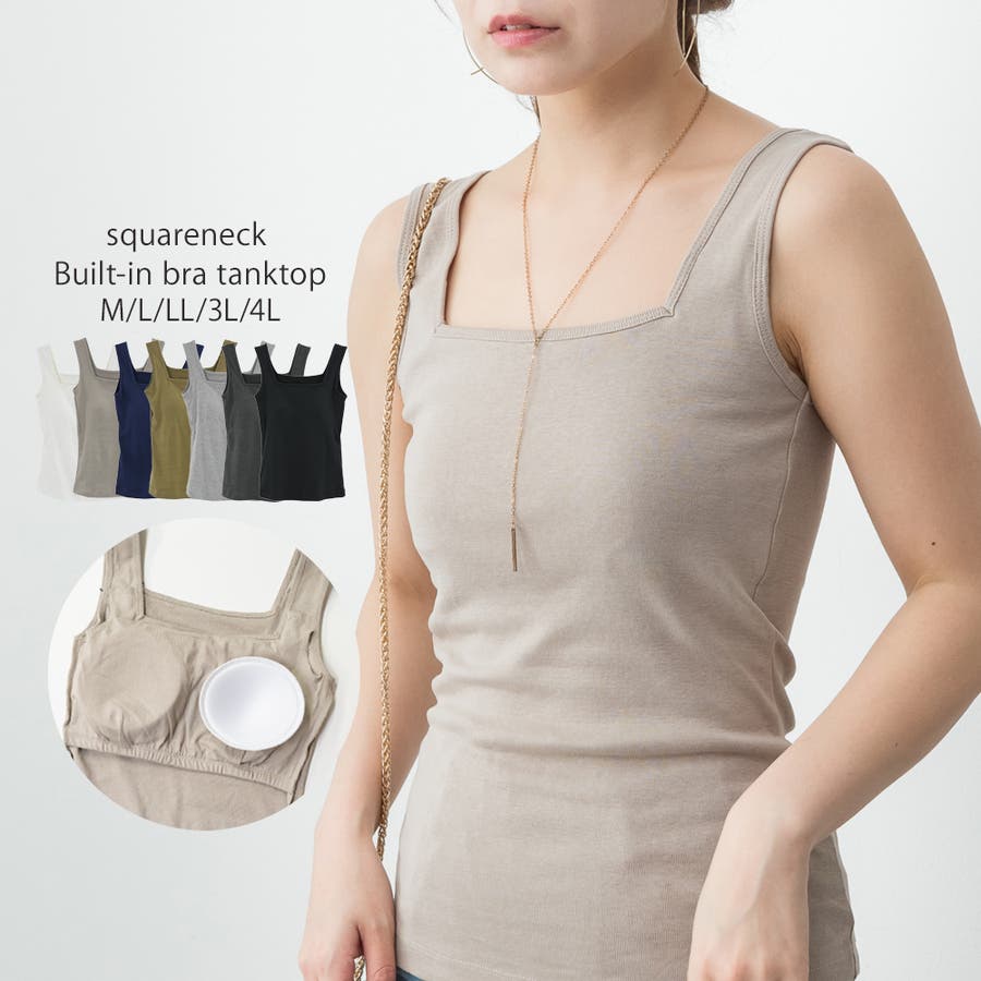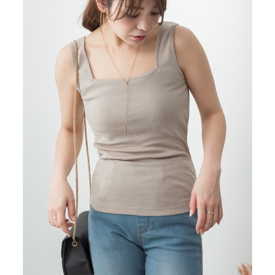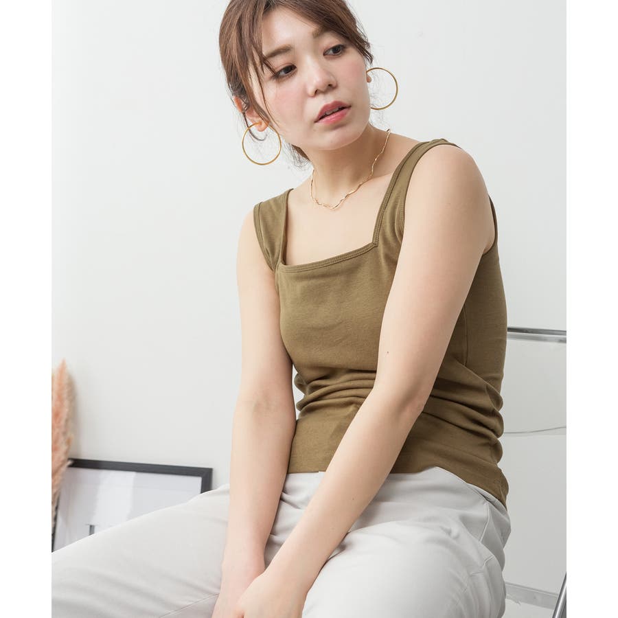 カップ付きスクエアーネックタンクトップ