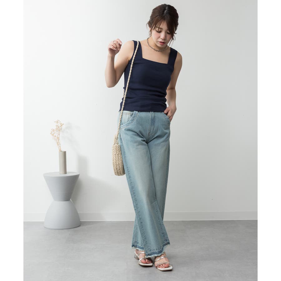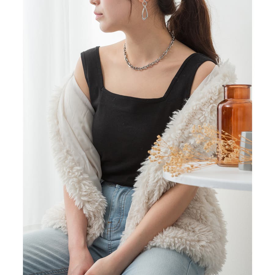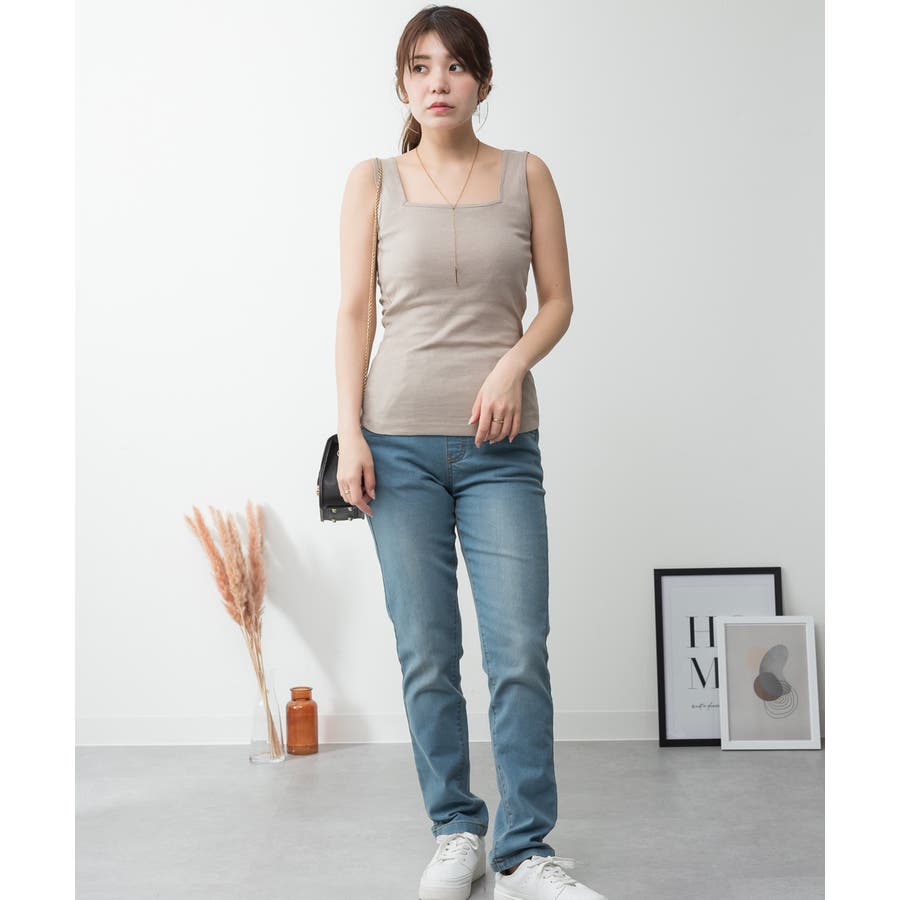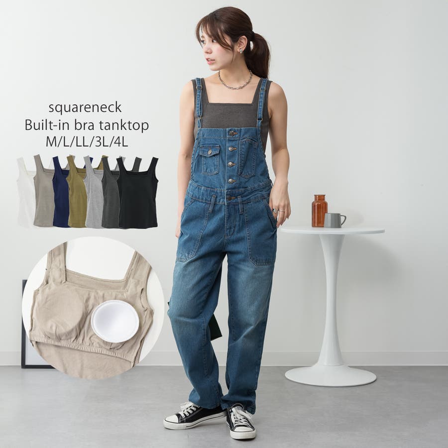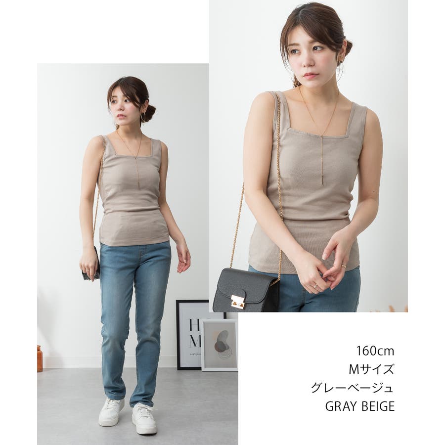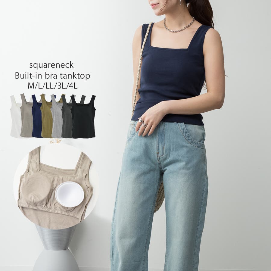 カップ付きスクエアーネックタンクトップ