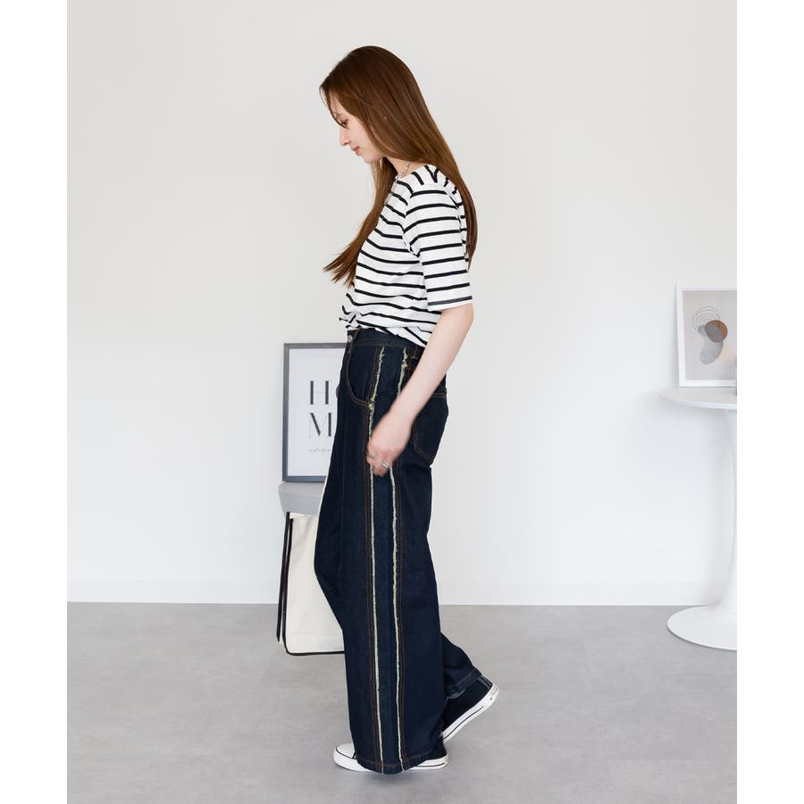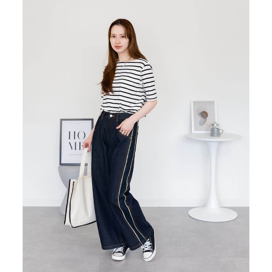 デニムパンツ(ジーンズ)やワイドパンツ、フレアパンツなど合わせたカジュアルな装いに◎