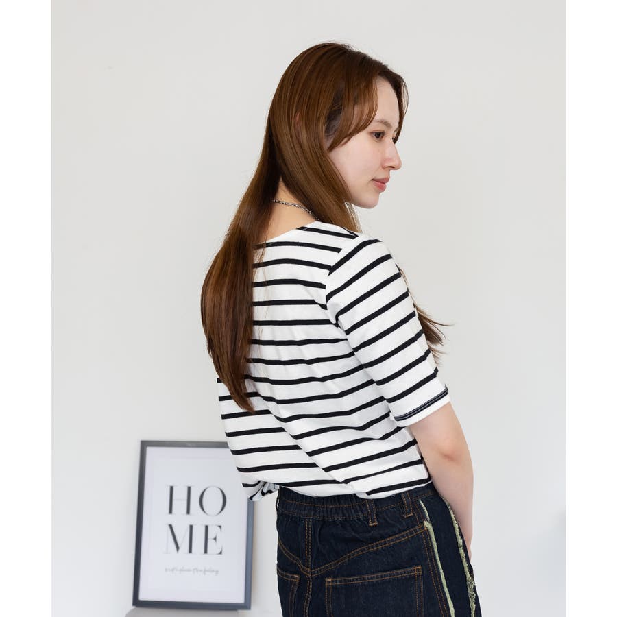 程よい厚みの天竺生地がシーズンを問わず活躍し、ボーダーデザインがコーディネートに爽やかな印象をプラスします。