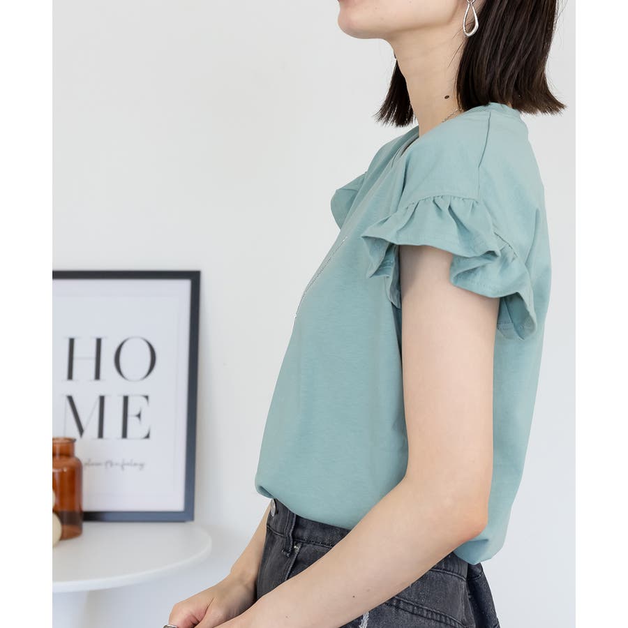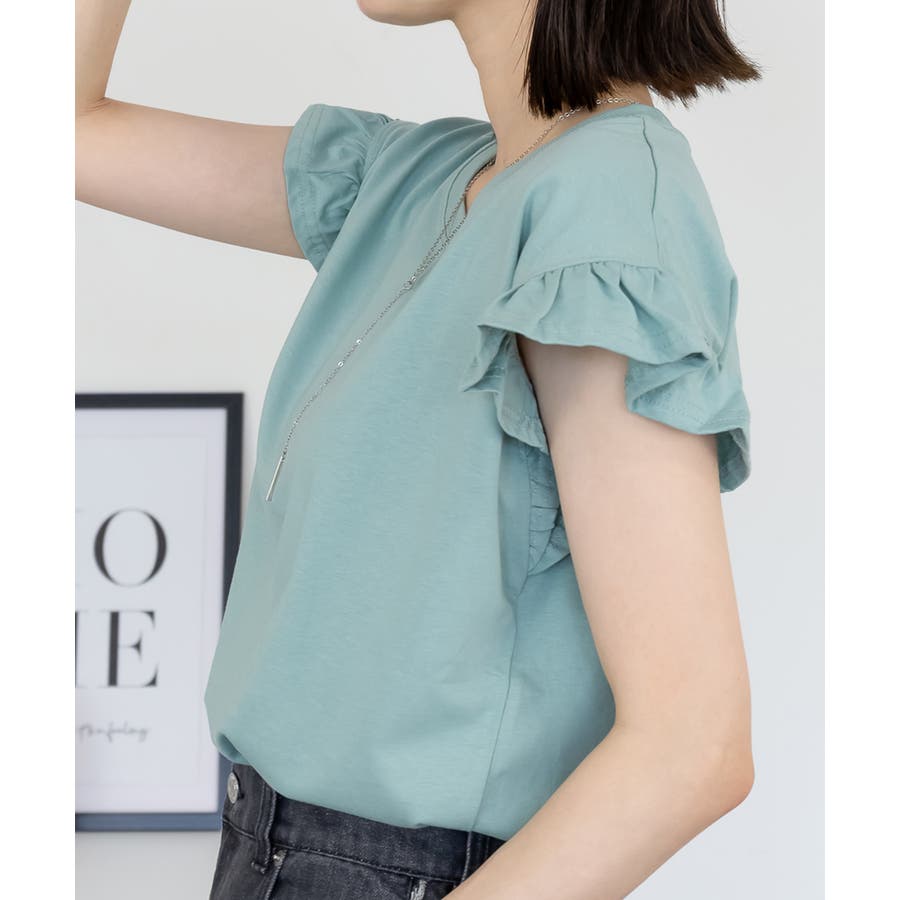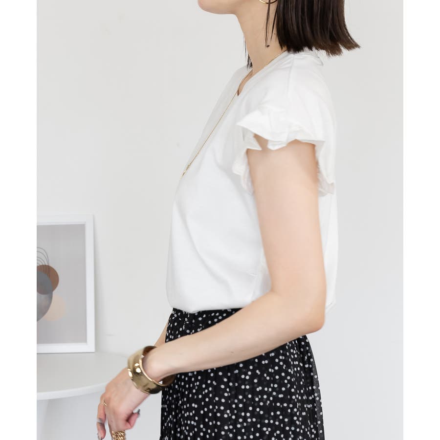 袖部分に施されたフレアデザインが、女性らしい柔らかな印象をプラスし、動きに軽やかさを与えます。