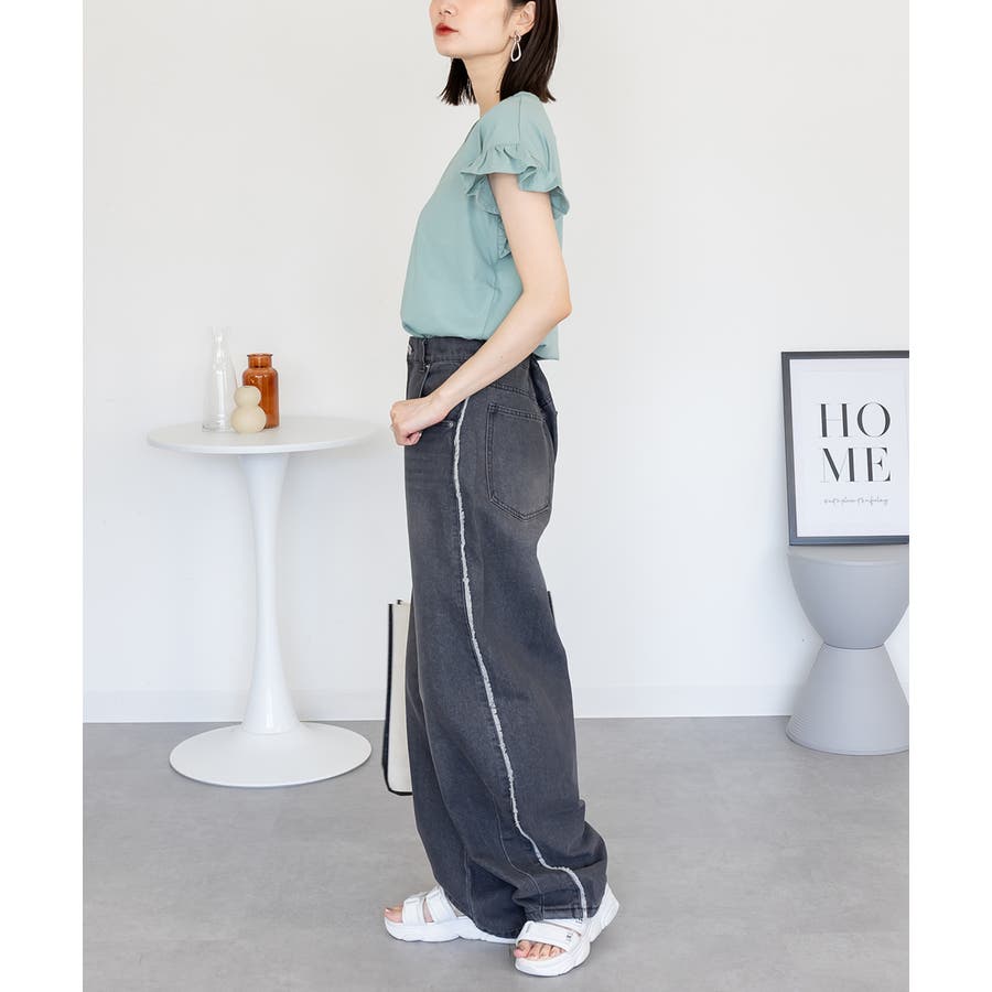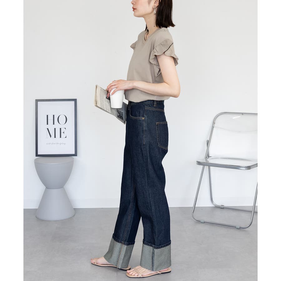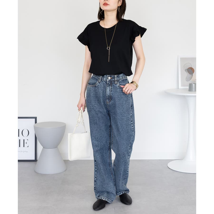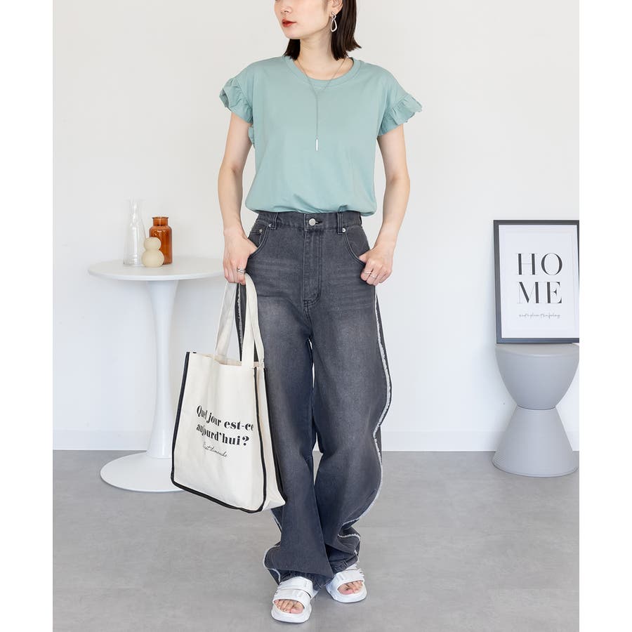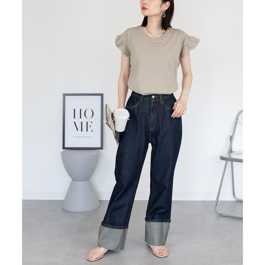 シンプルにデニムパンツ(ジーンズ)やスキニーパンツ、ワイドパンツに合わせるカジュアルスタイルも◎