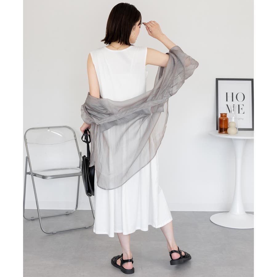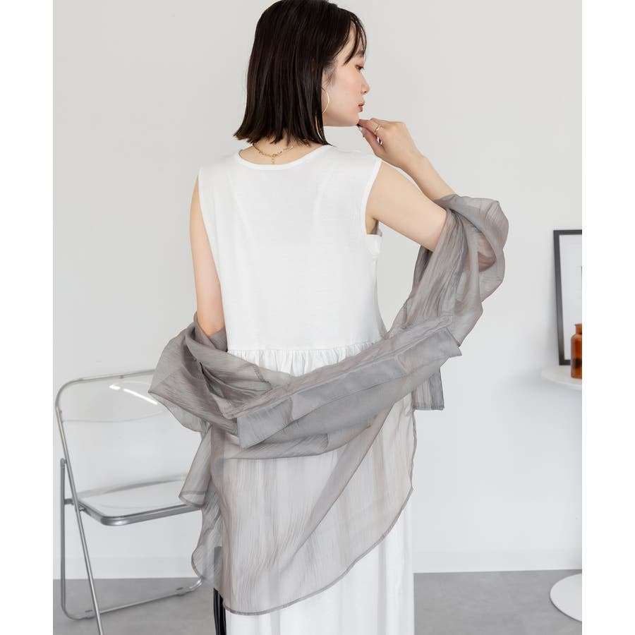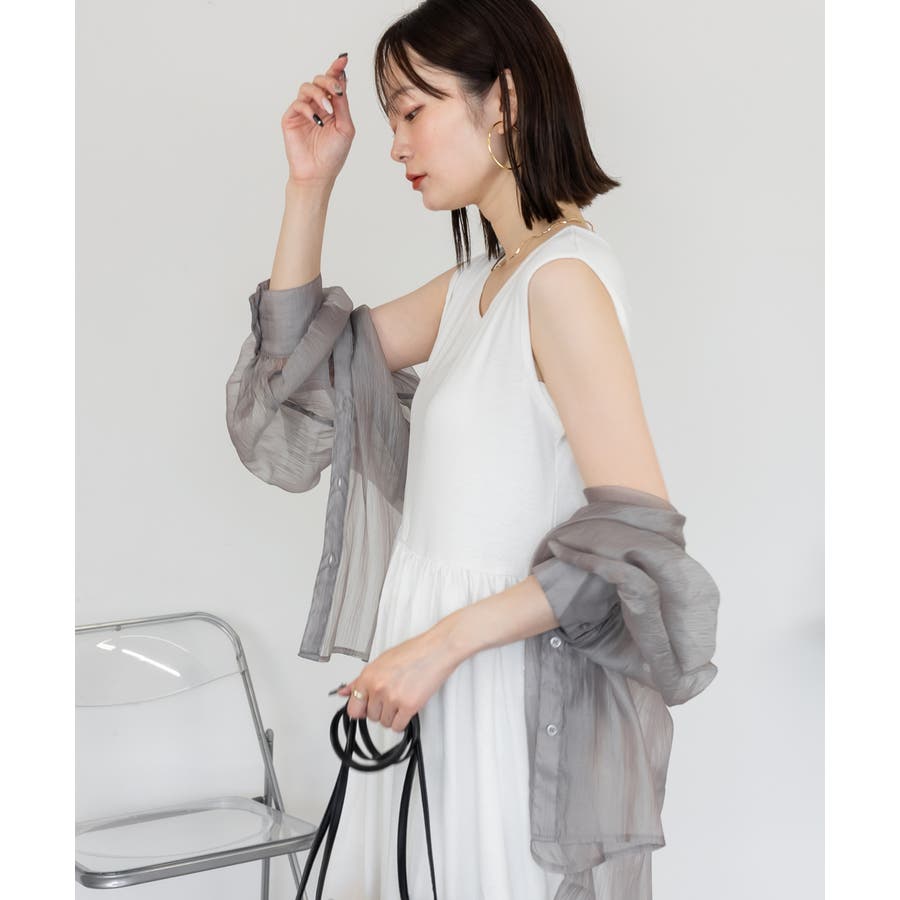 ノースリーブデザインが涼しげな印象を与え、季節を問わず幅広いコーディネートに対応可能。