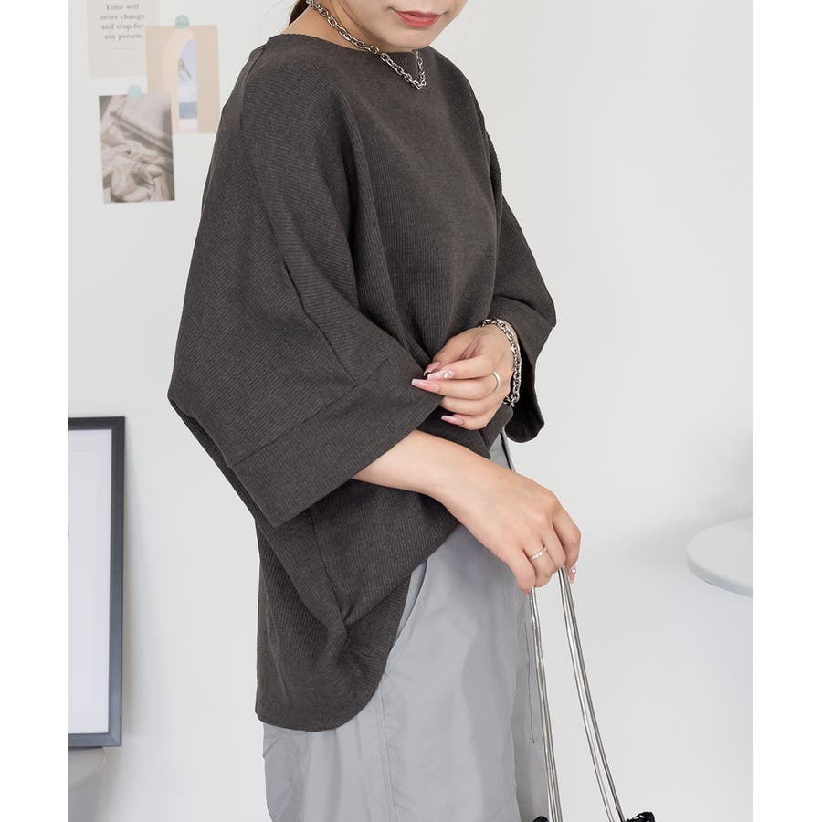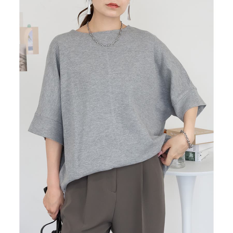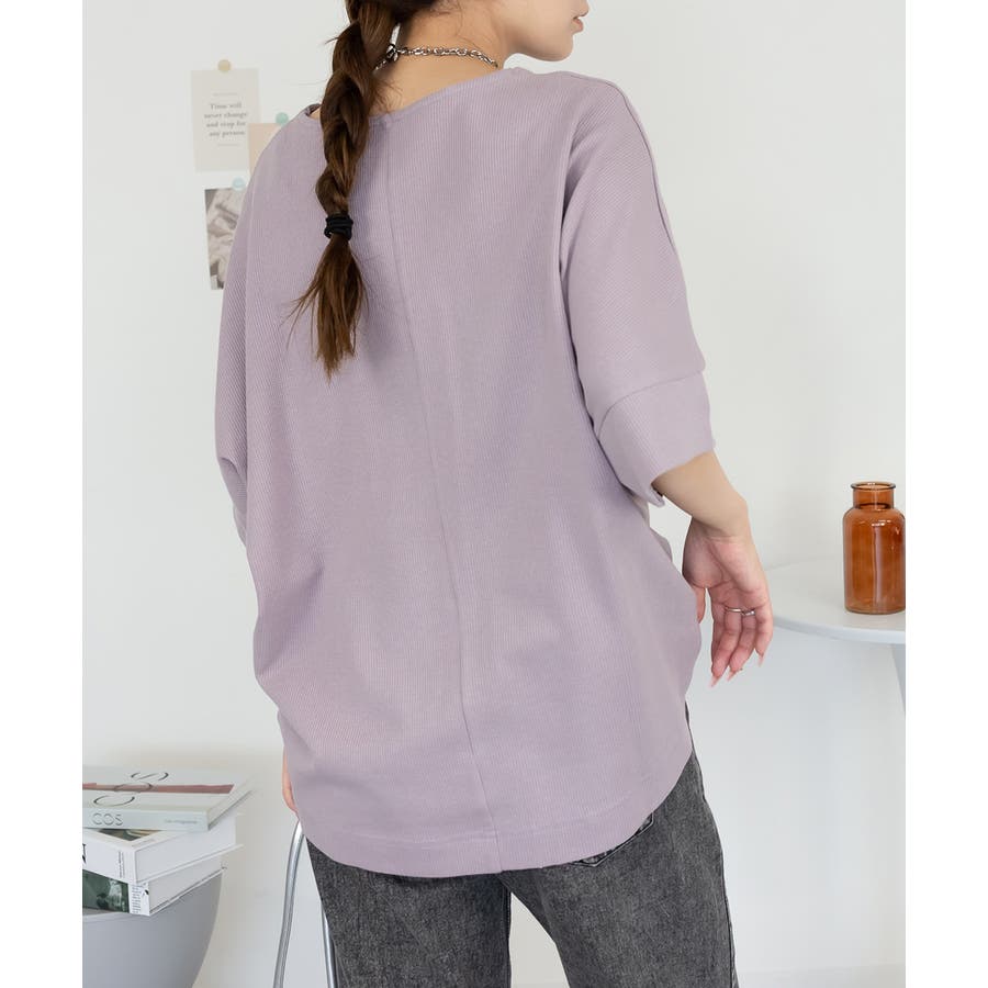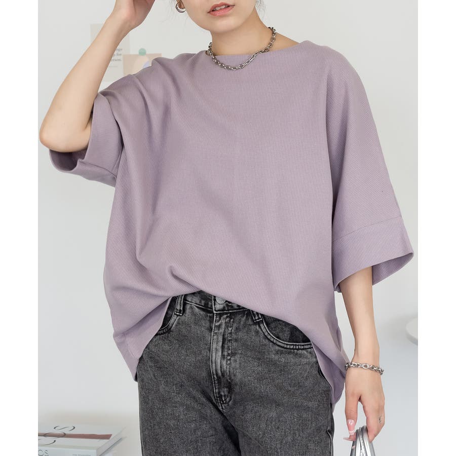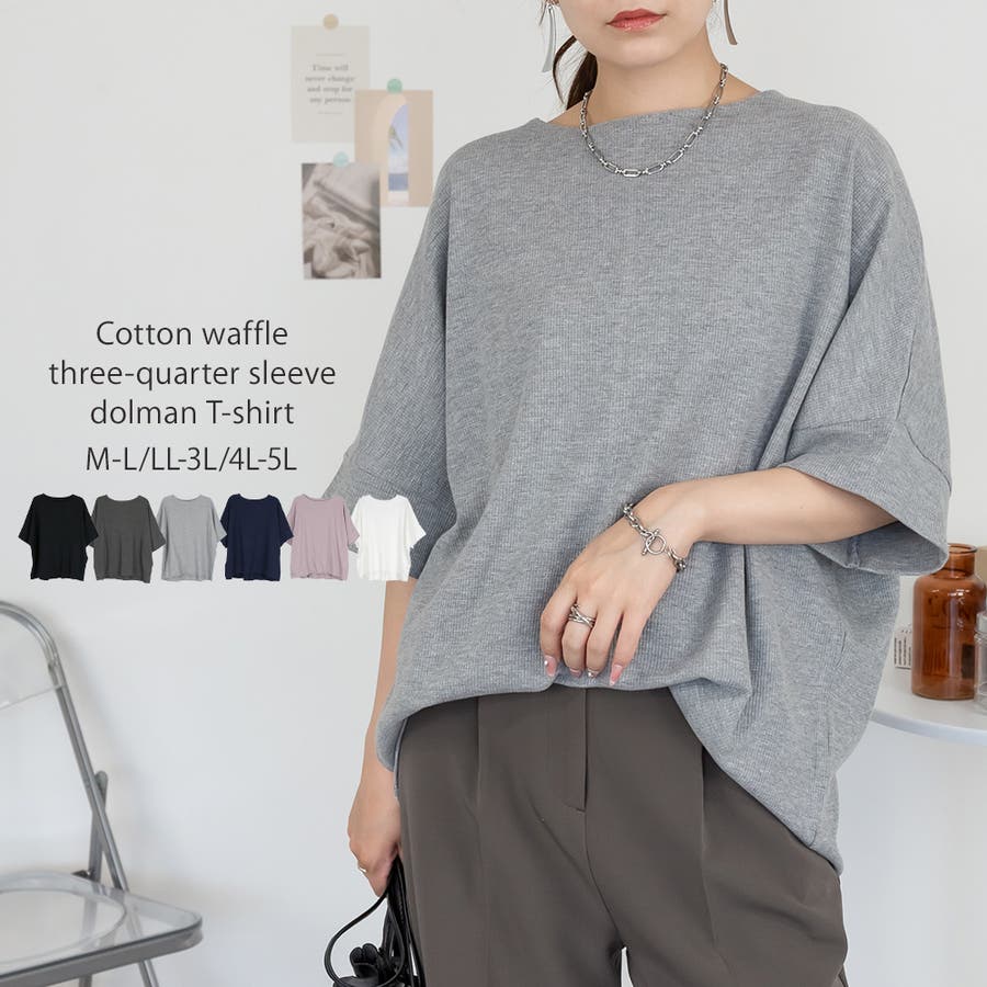 ゆるっとラフなシルエットのコットンワッフル7分袖ドルマンTシャツ。
