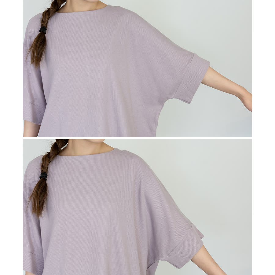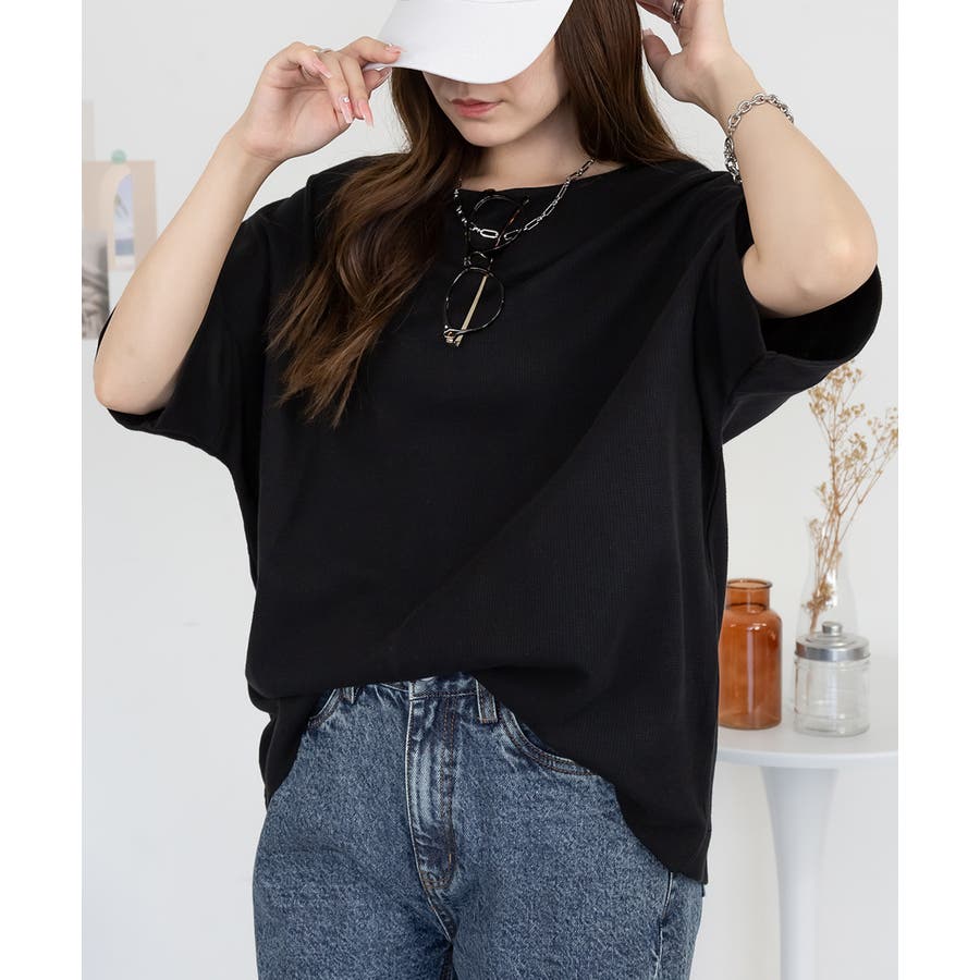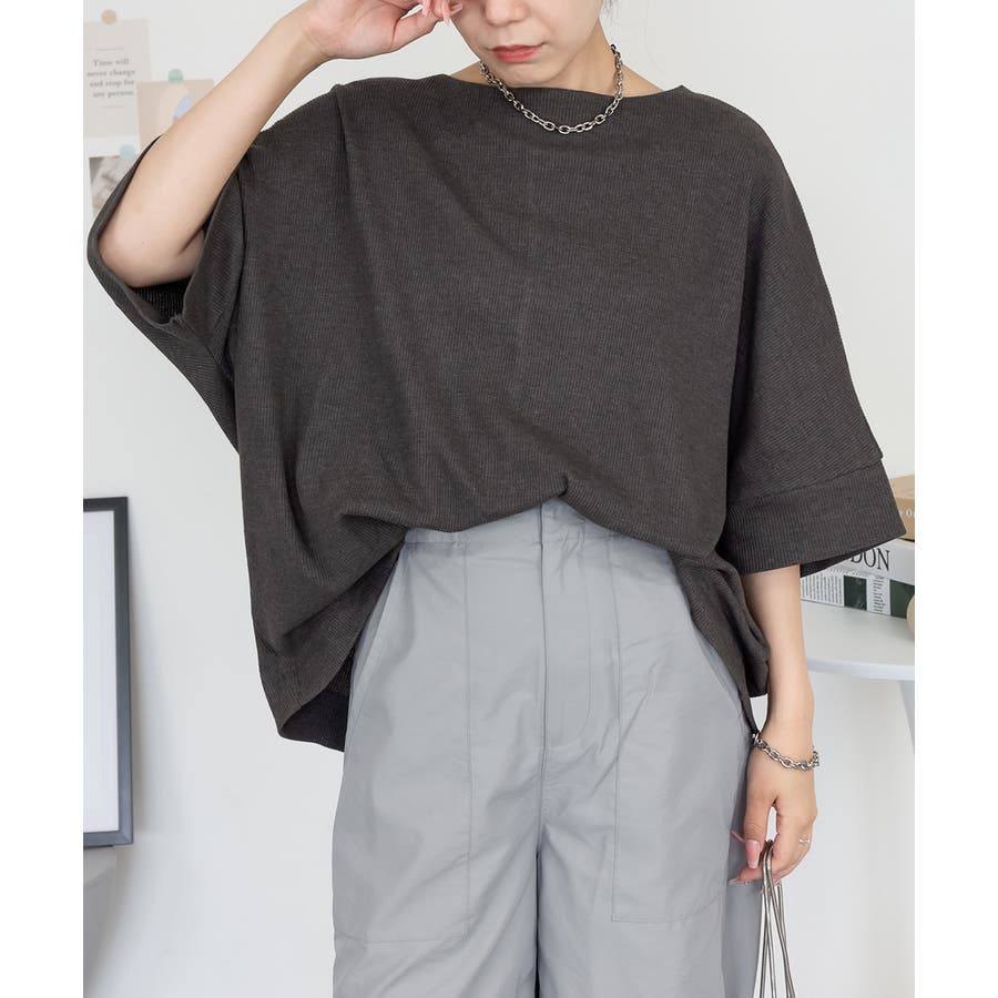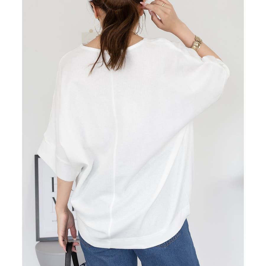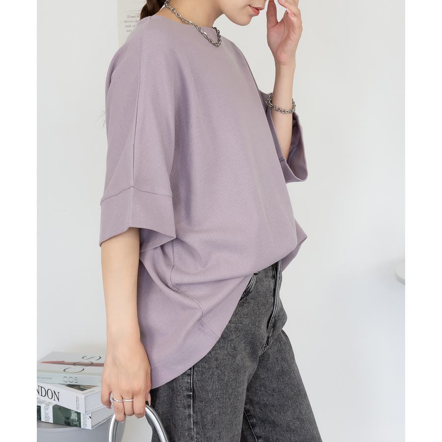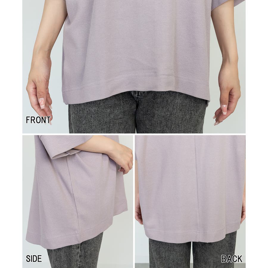 ゆるっとラフなシルエットのコットンワッフル7分袖ドルマンTシャツ。