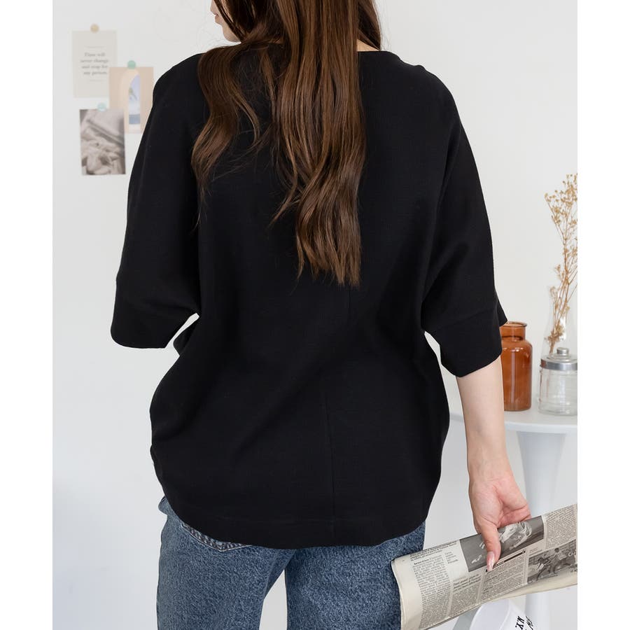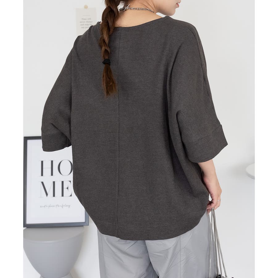 コットンワッフル7分袖ドルマンTシャツ