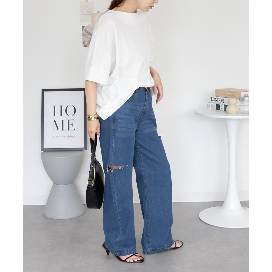 デニムパンツ(ジーンズ)やワイドパンツ、フレアパンツなど合わせたカジュアルな装いに◎